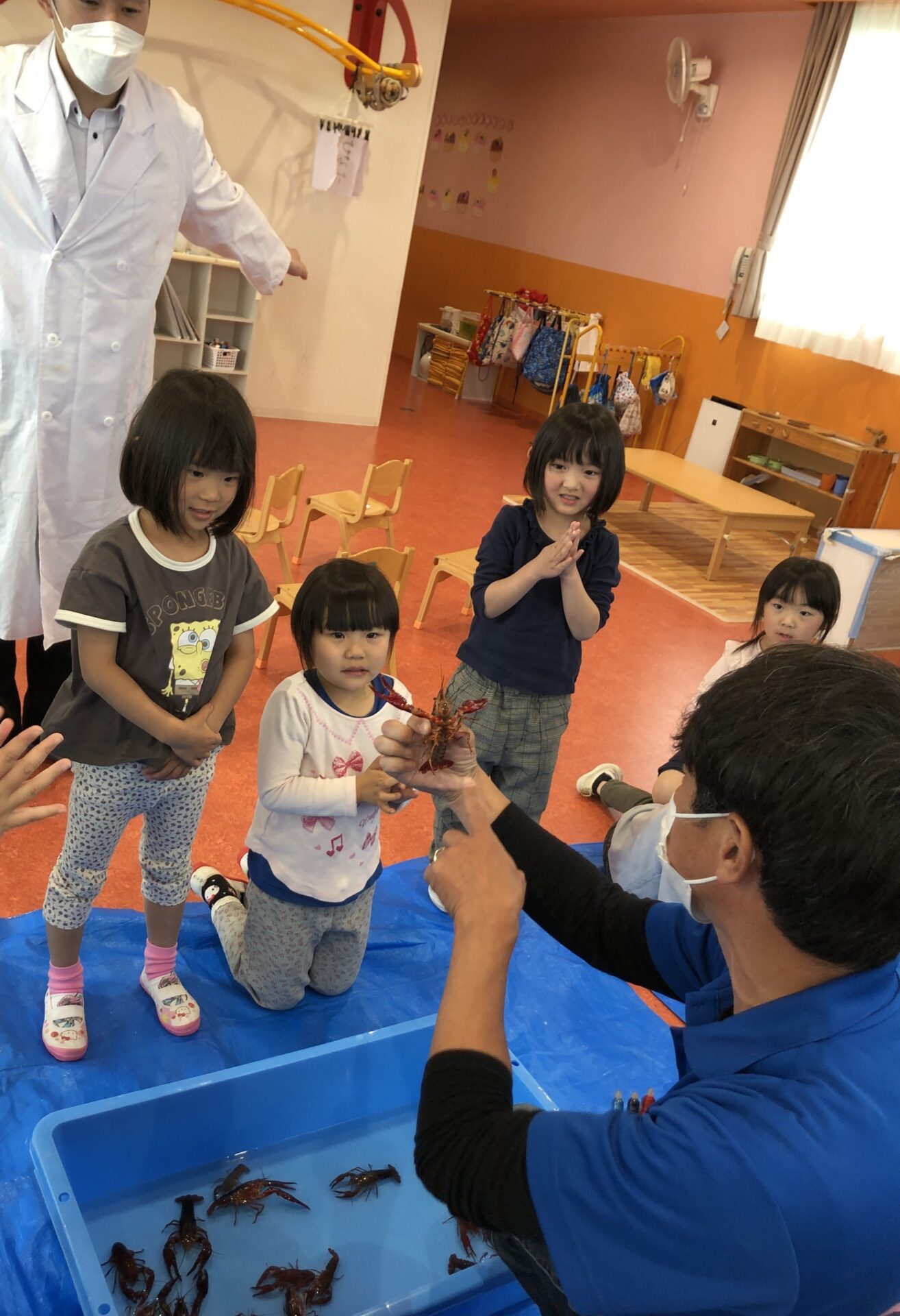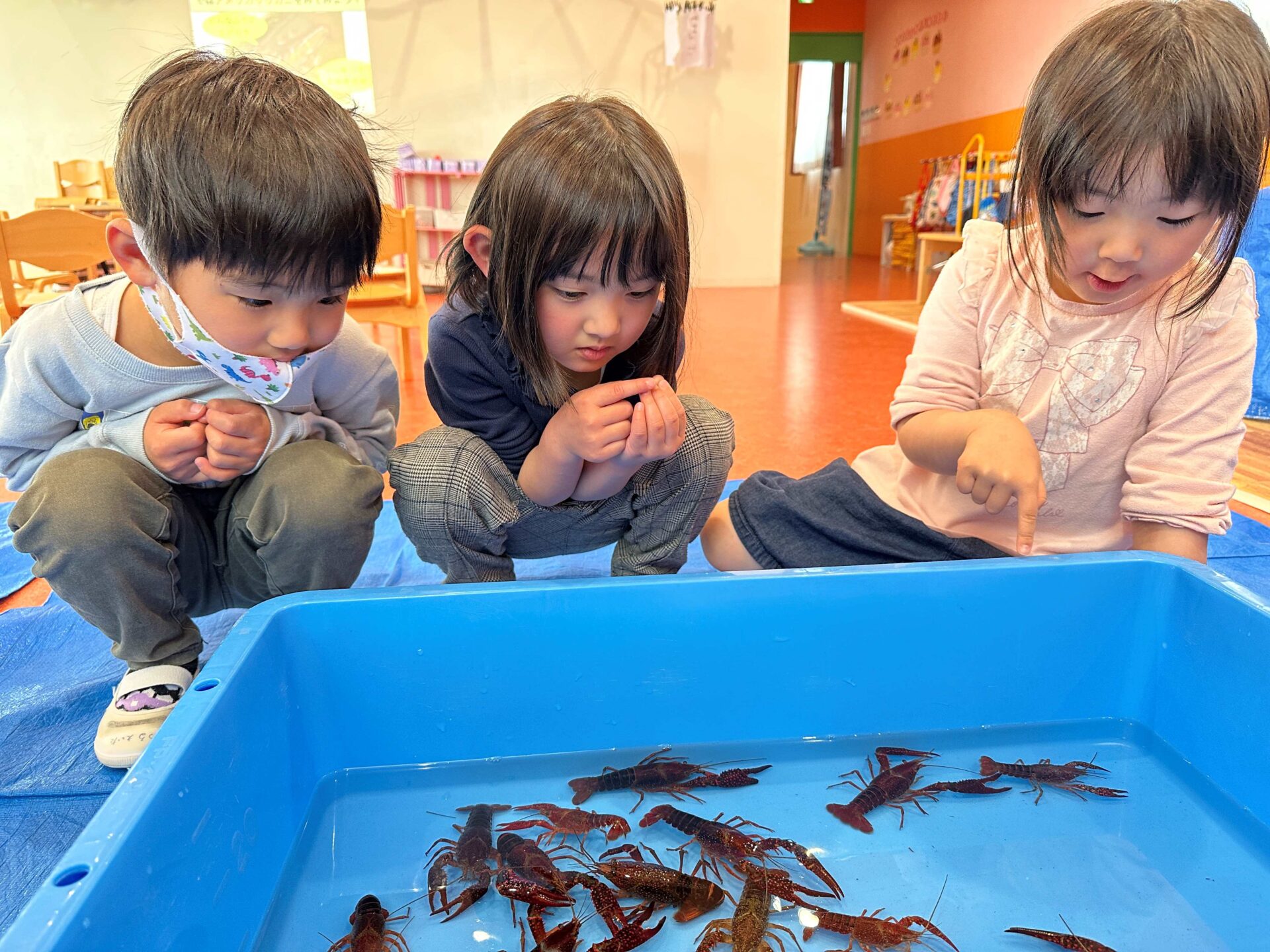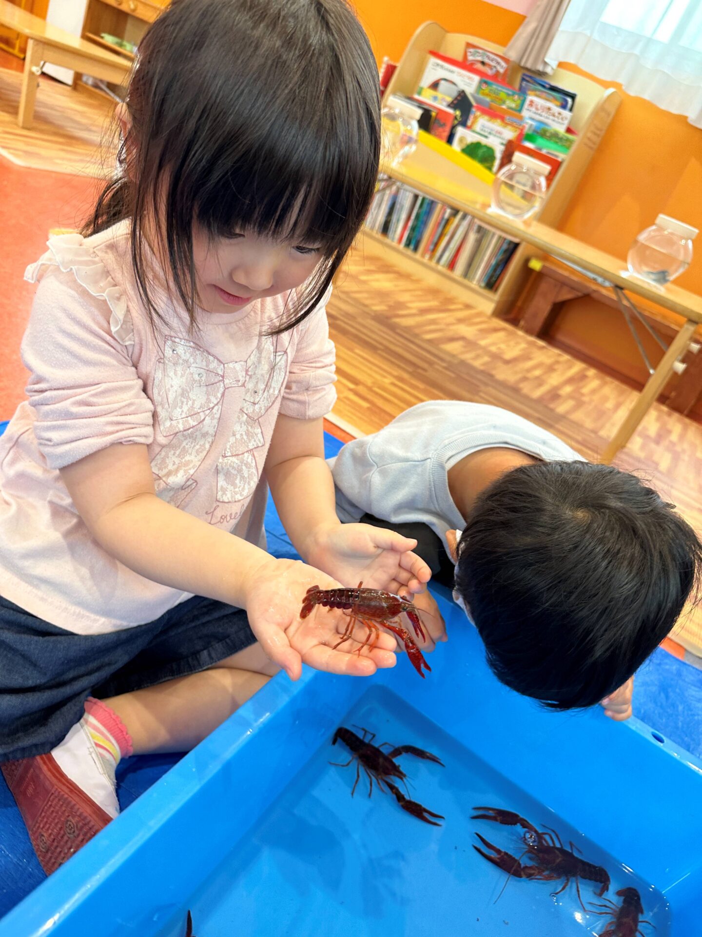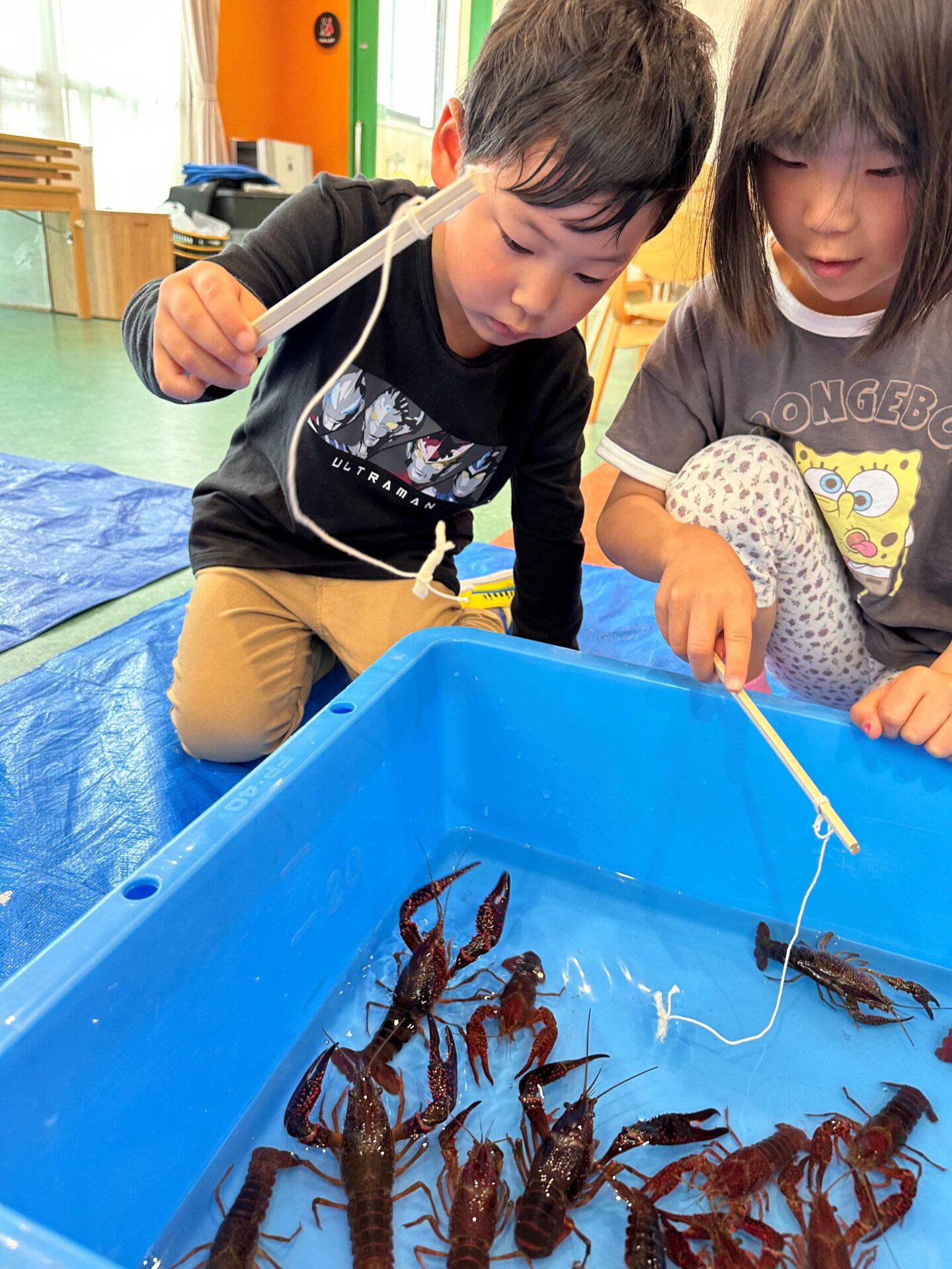 ドキドキしながらもほとんどの子がザリガニを持つことができました!
