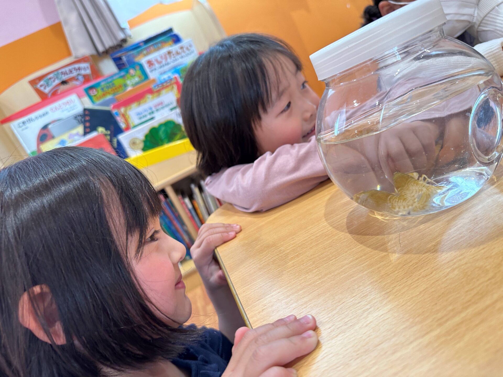 「大きのもいるし、小さいのもいる!」「ひげが長いよ!」と気付いたことを友だちや保育者に伝えていました。