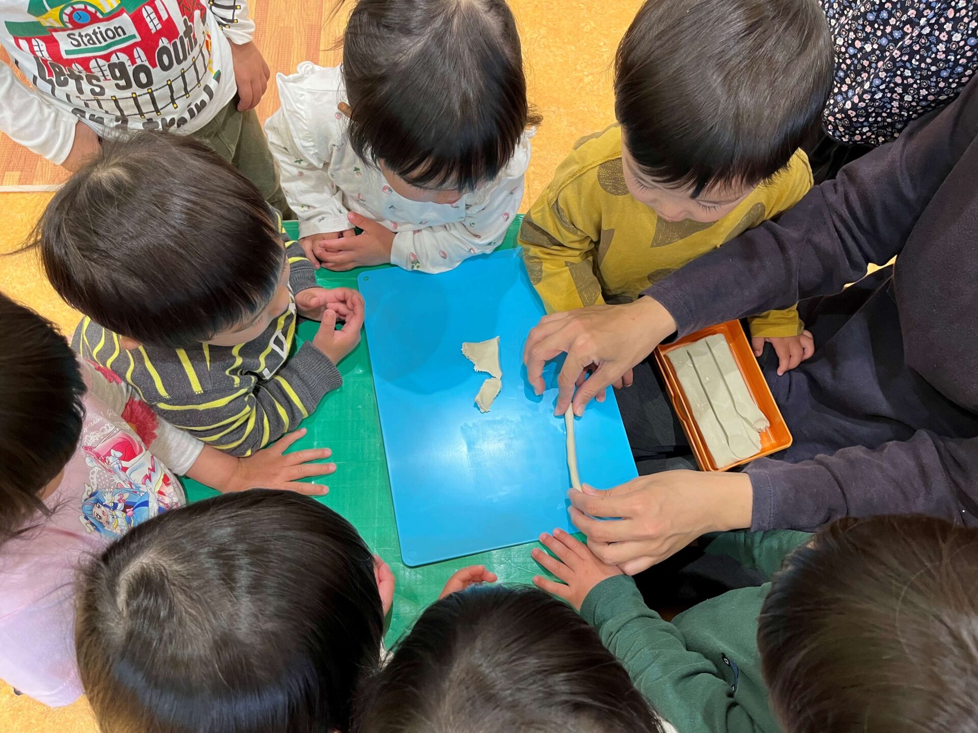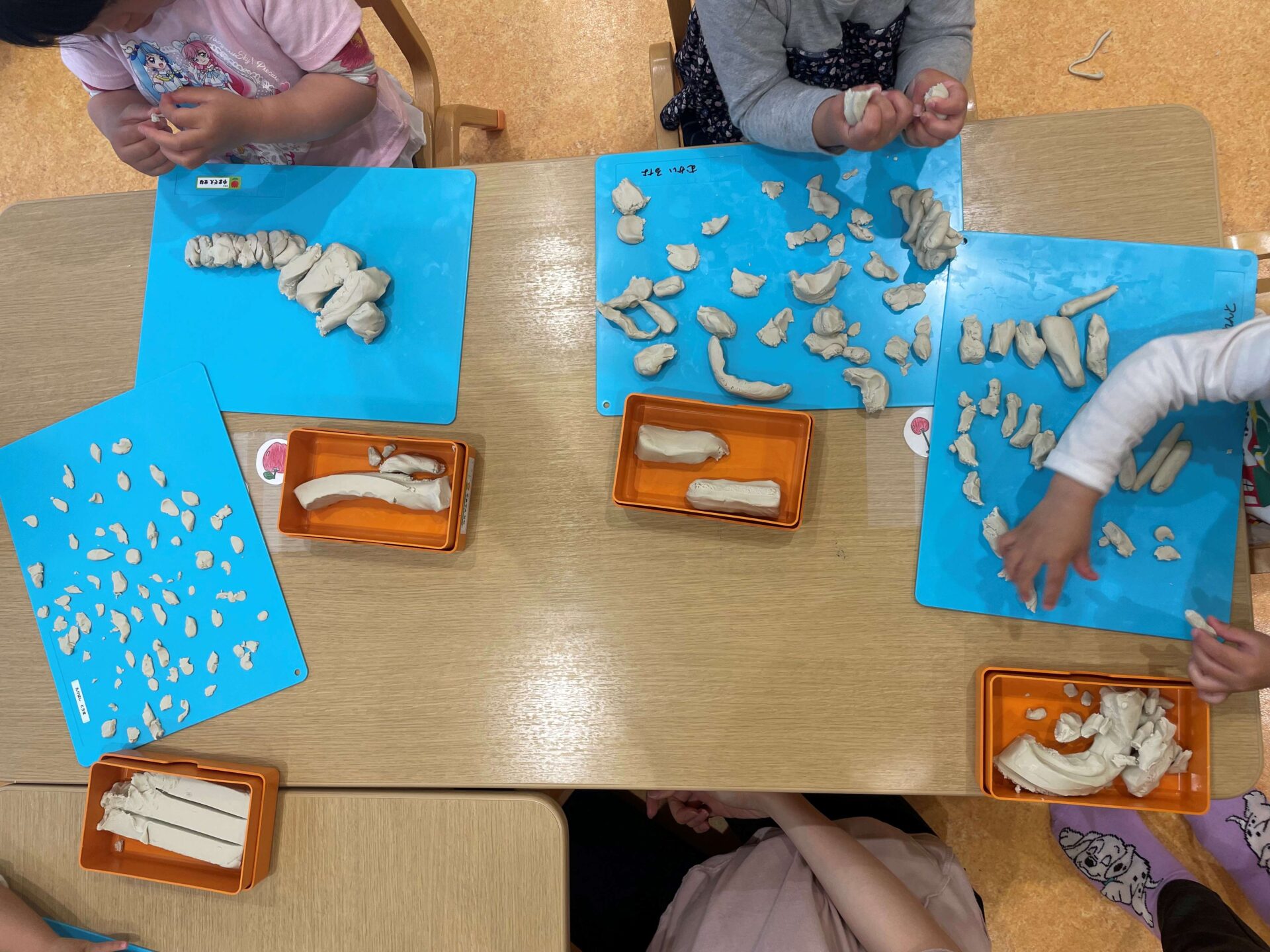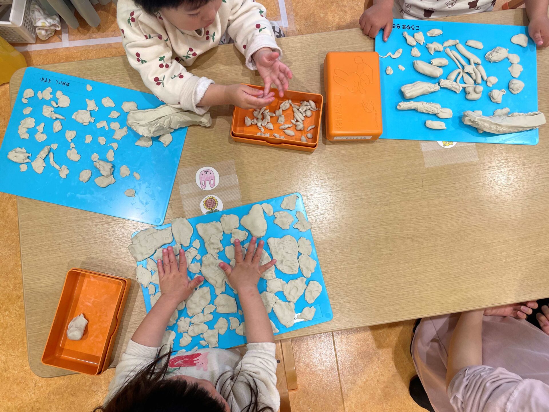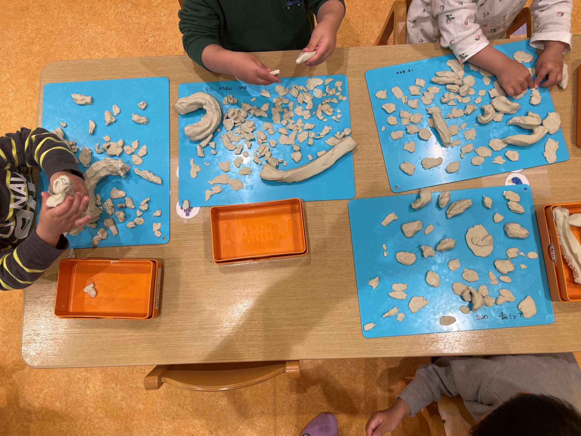 さっそく子どもたちも粘土に触れてみると、、、