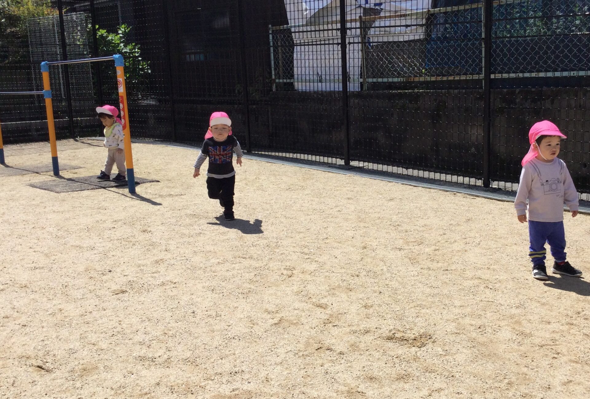 うみチームとだいちチームで一緒に散歩車に乗って公園まで行きました。