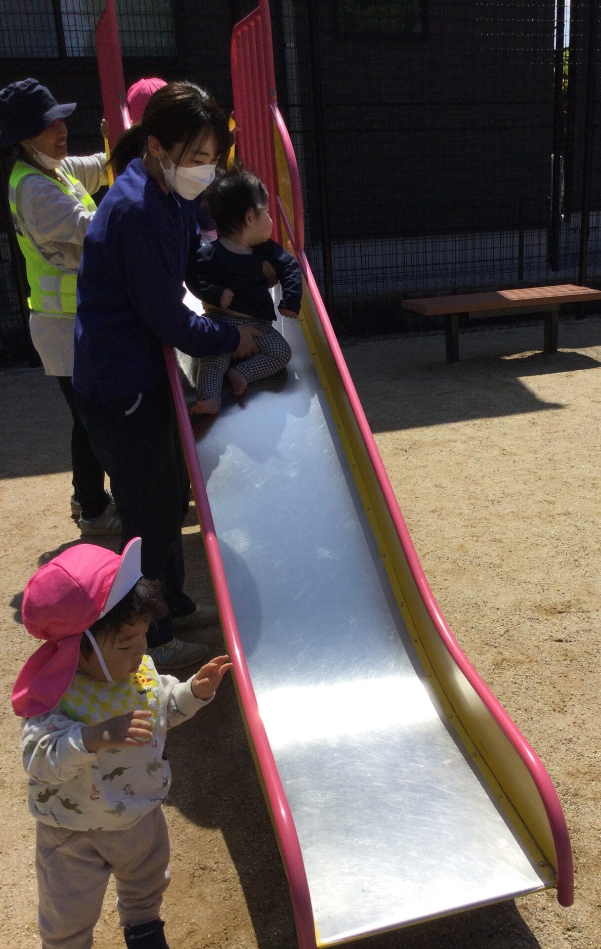 よいしょっ!よいしょっ!と階段を登り、シュ~っと滑ってにっこり。