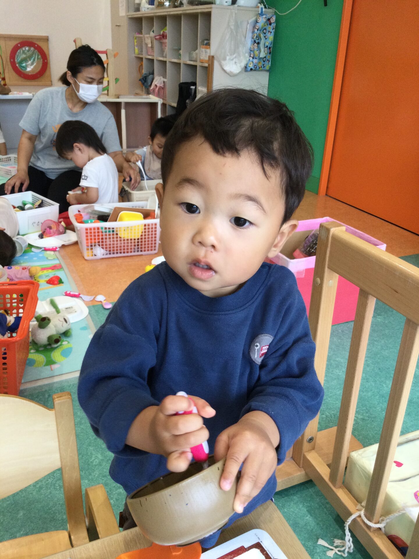 混ぜ混ぜするお友だちの姿が見られました🍀