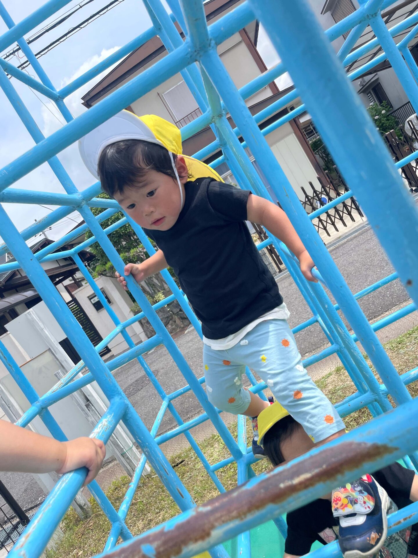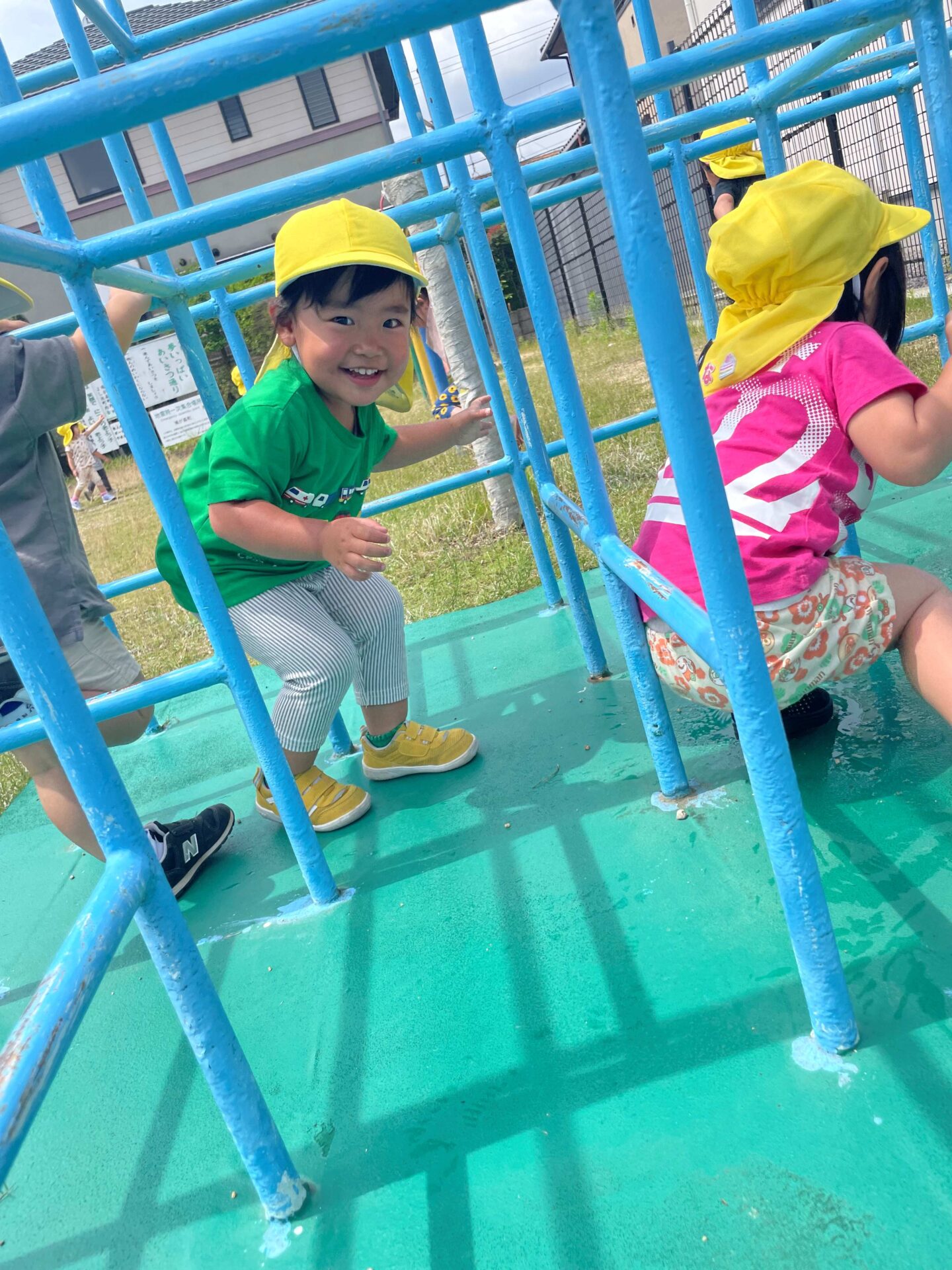 子どもたちにとってジャングルジムは登るだけの遊具ではありません✋