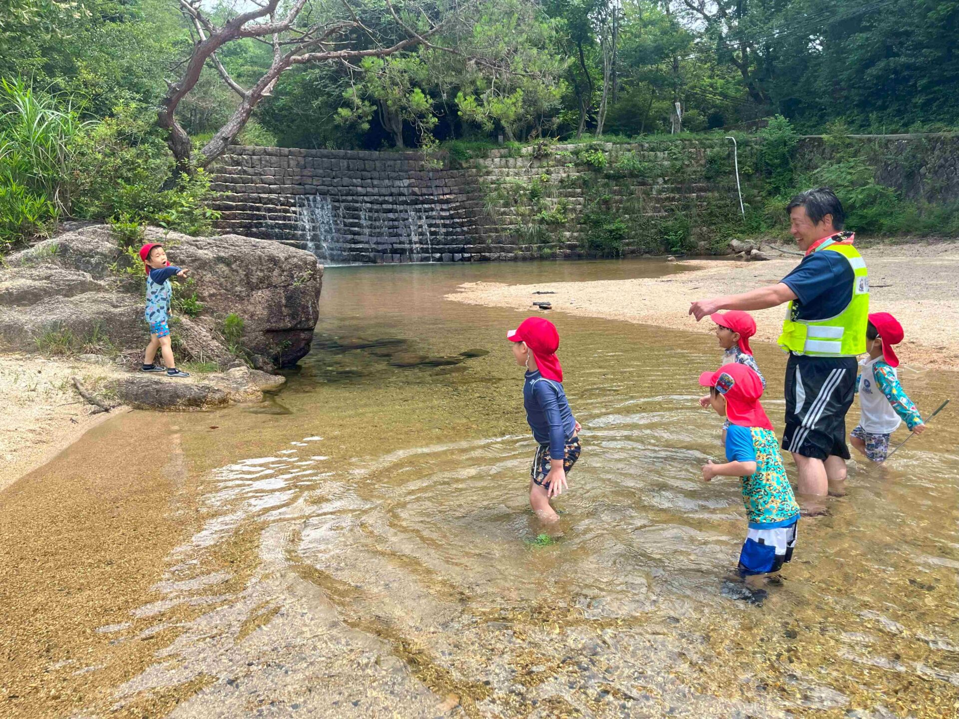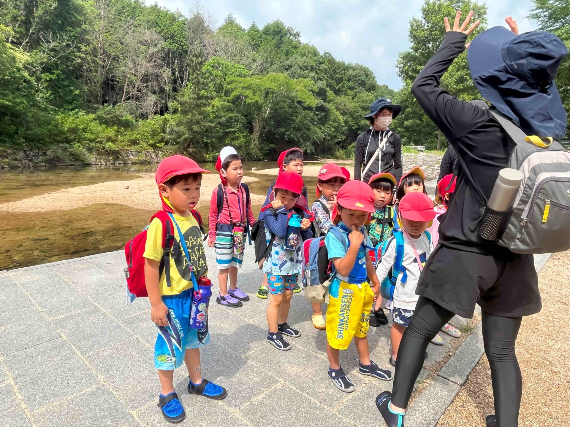 川に入る前に『お約束』を確認します。行ってはいけない場所、してはいけないことを守ることは、安全に遊ぶためには大切です。しっかり話を聞いて、きちんと守りながら遊ぶことができました😊