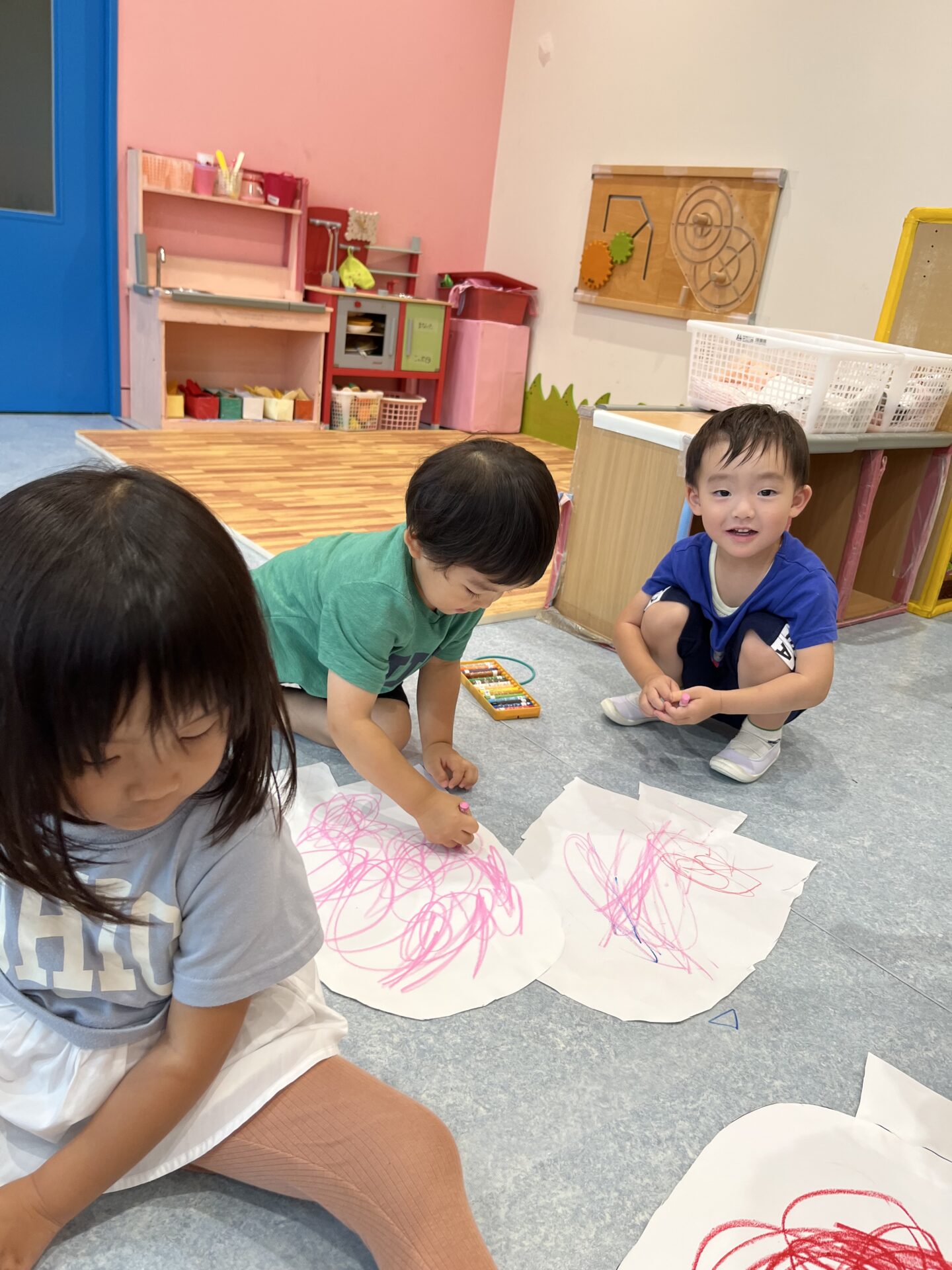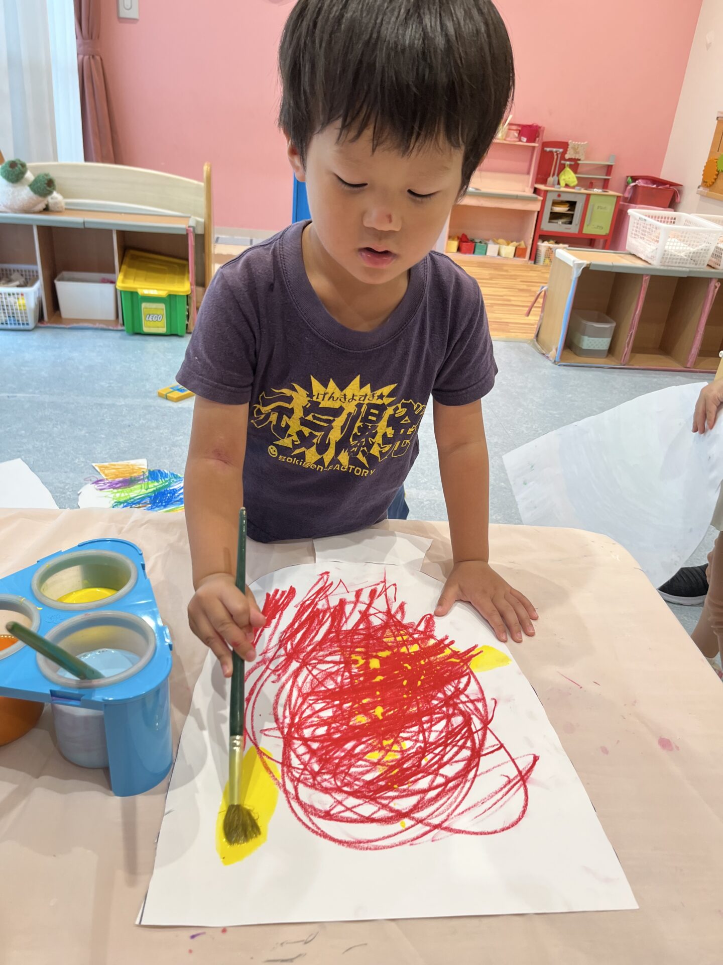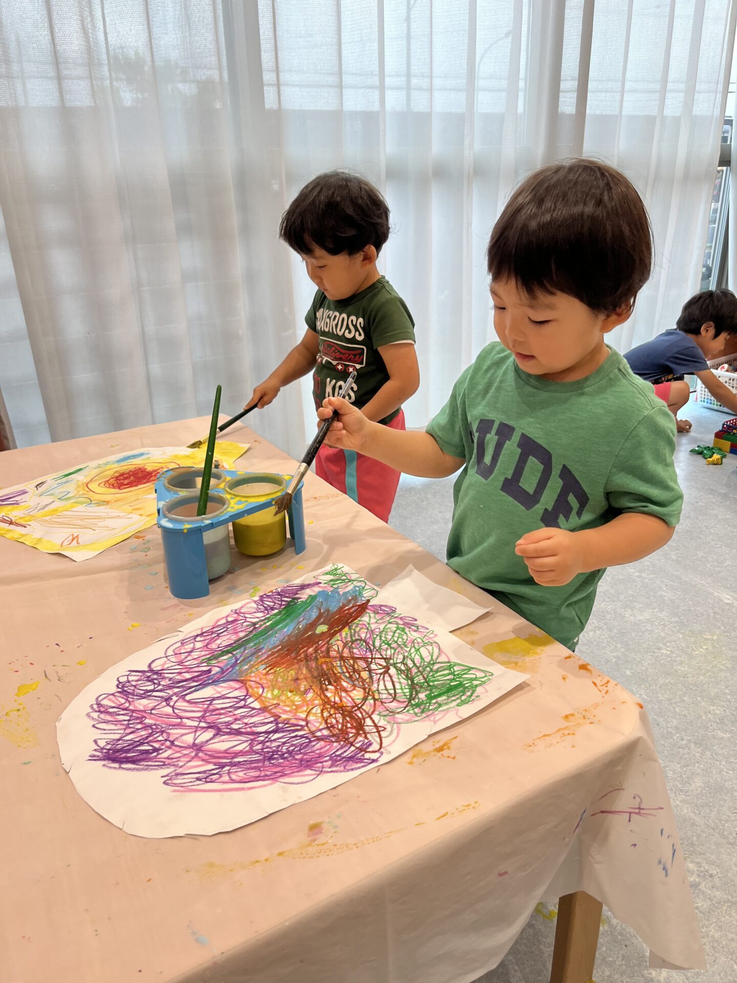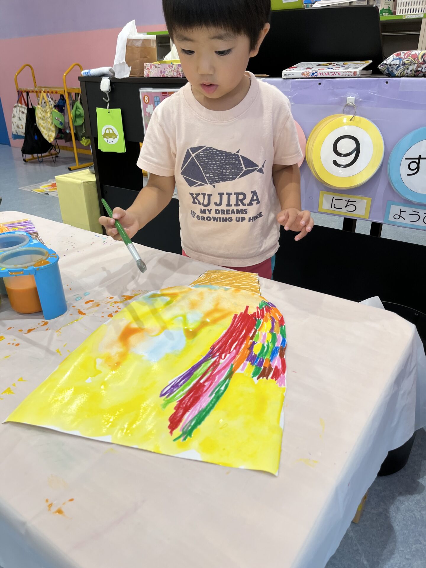 クレヨンの上から絵の具を塗ると弾けますΣ(・□・;)