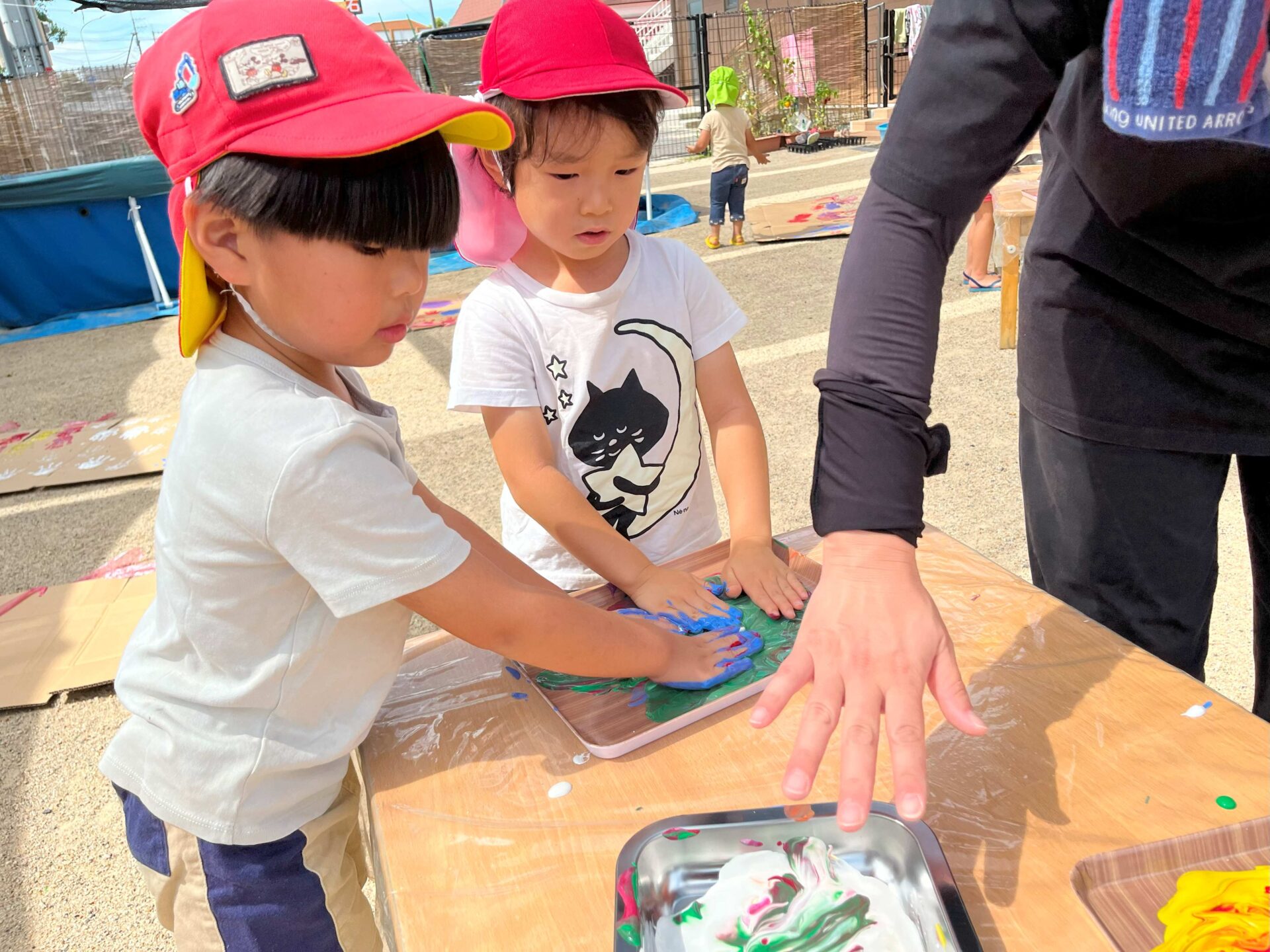 「気持ちいい~。」と絵の具の感触を楽しんでいました。