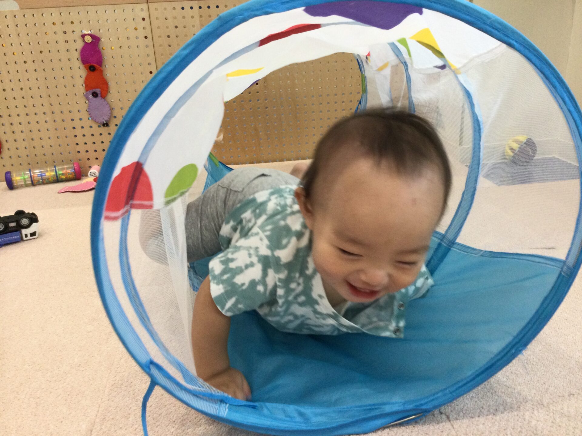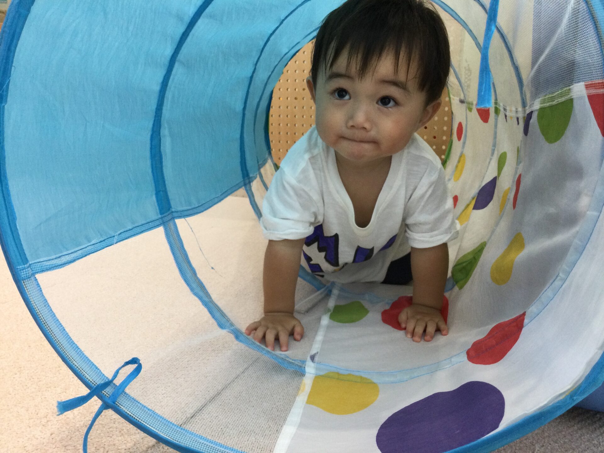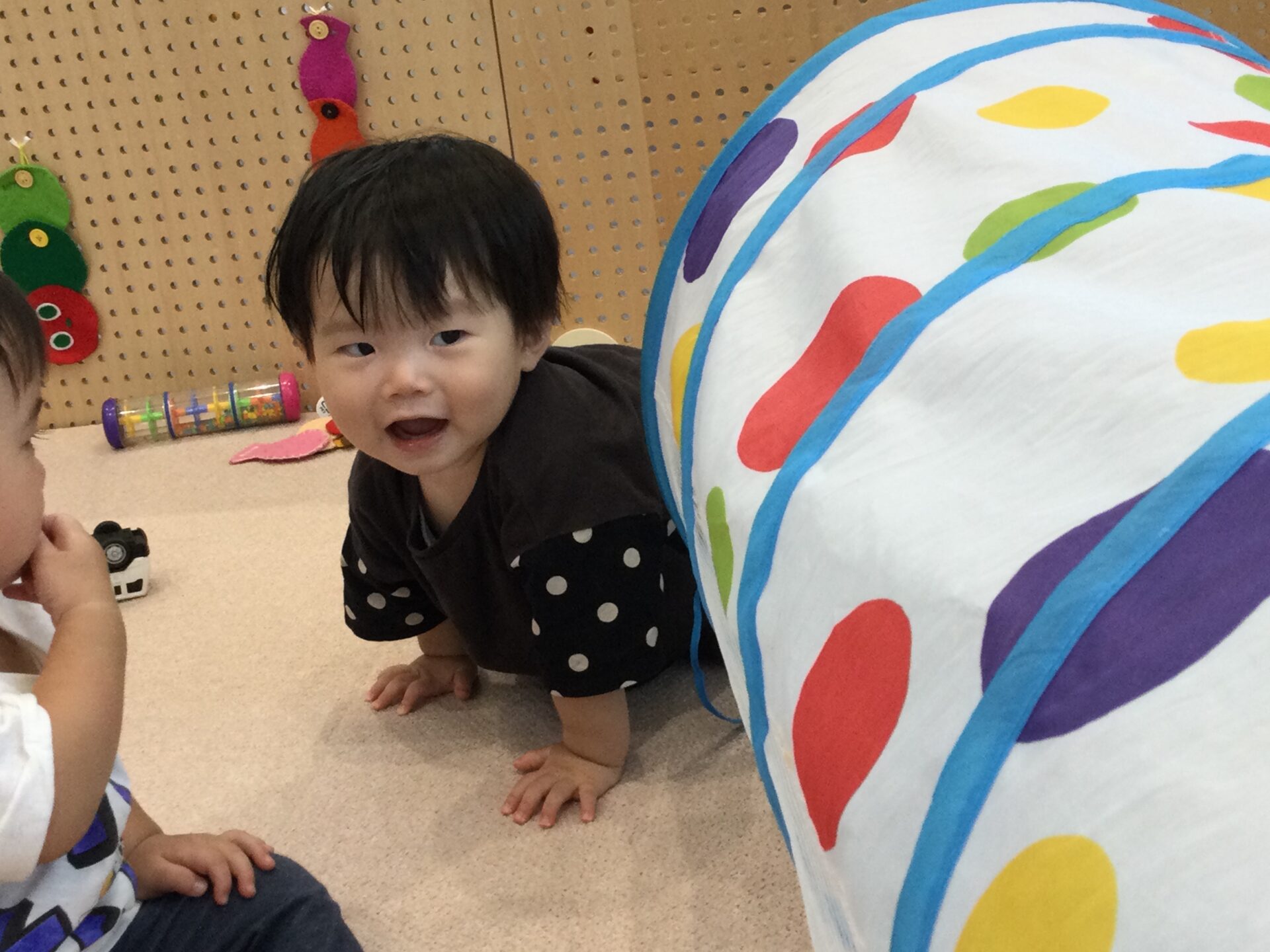 トンネルも大好きな子どもたち。中から外を見て楽しんだり、お友だちが行った後を追いかけて楽しんだりと元気いっぱいに遊んでます。