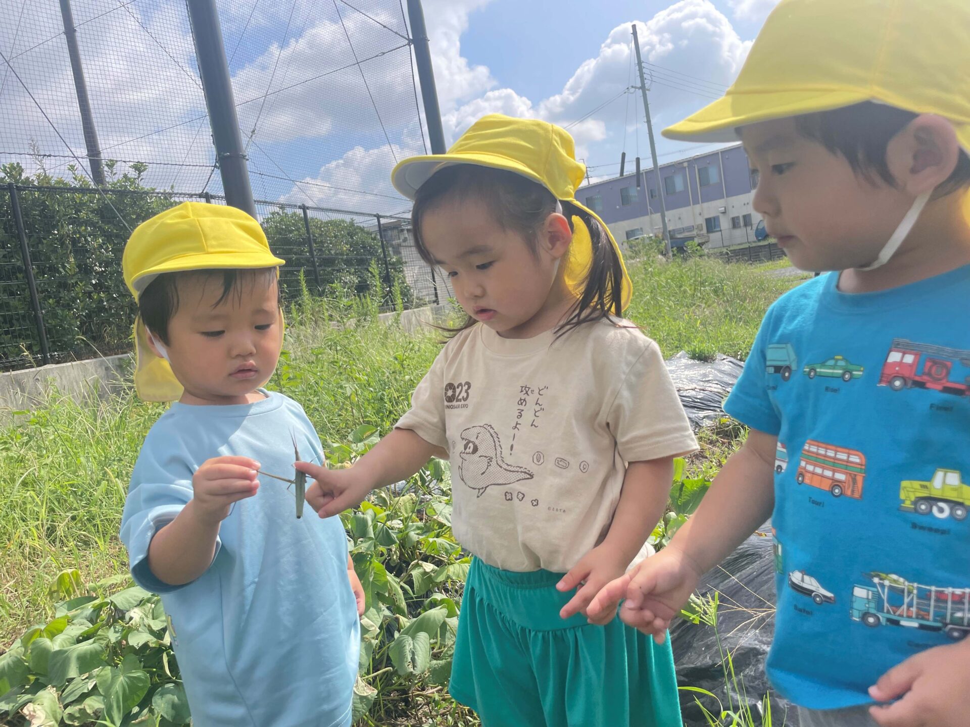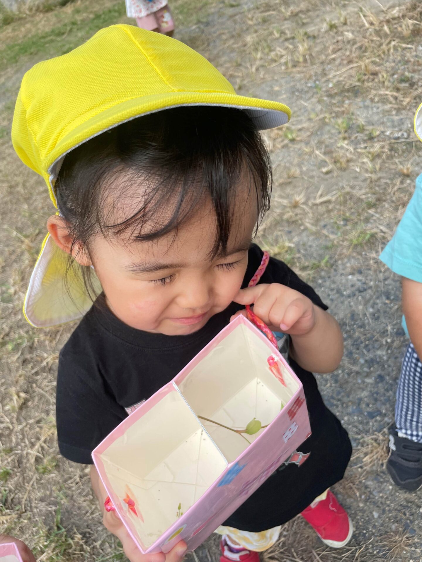 虫探しも大好きで、見つけた虫を捕まえて