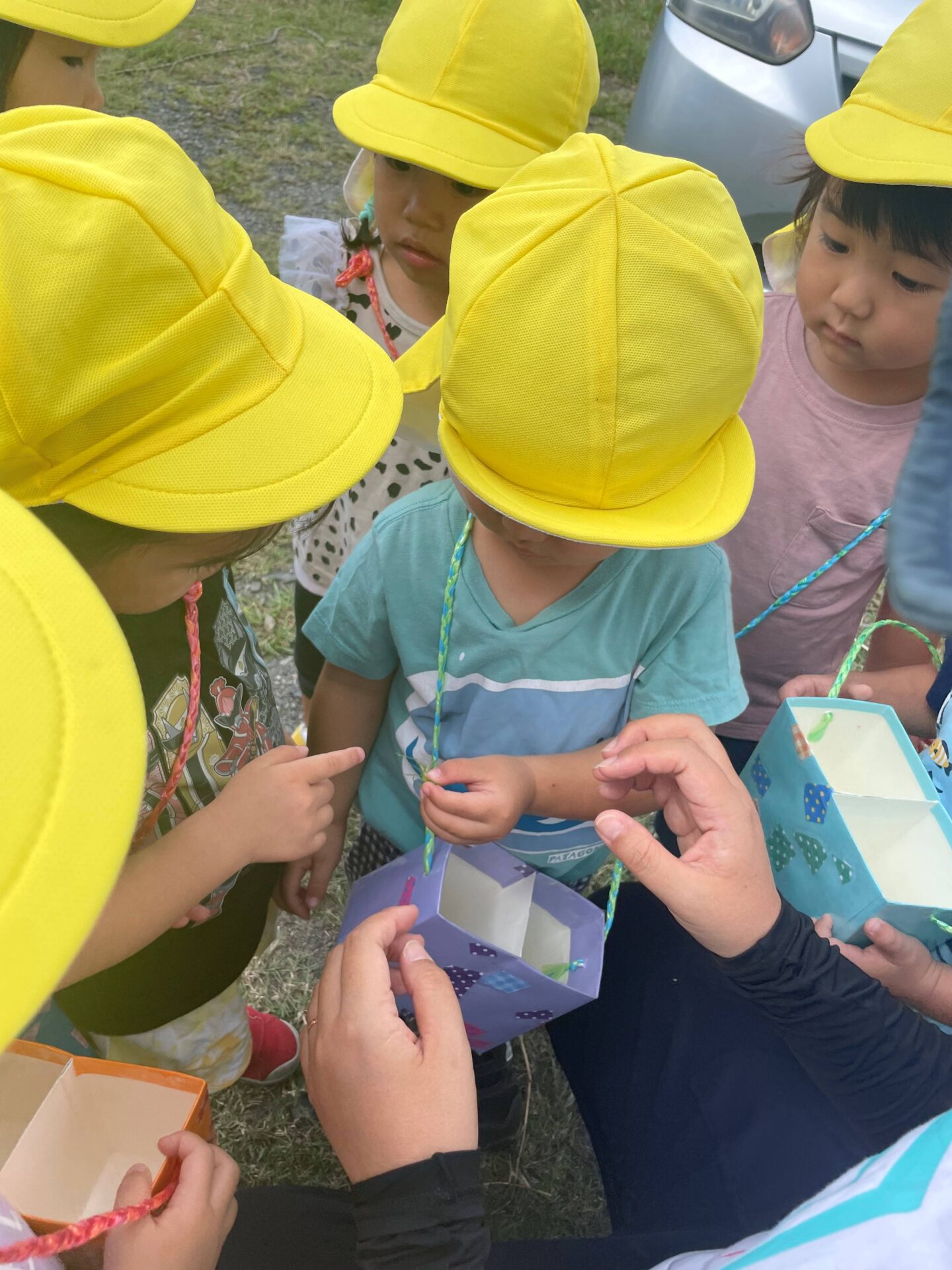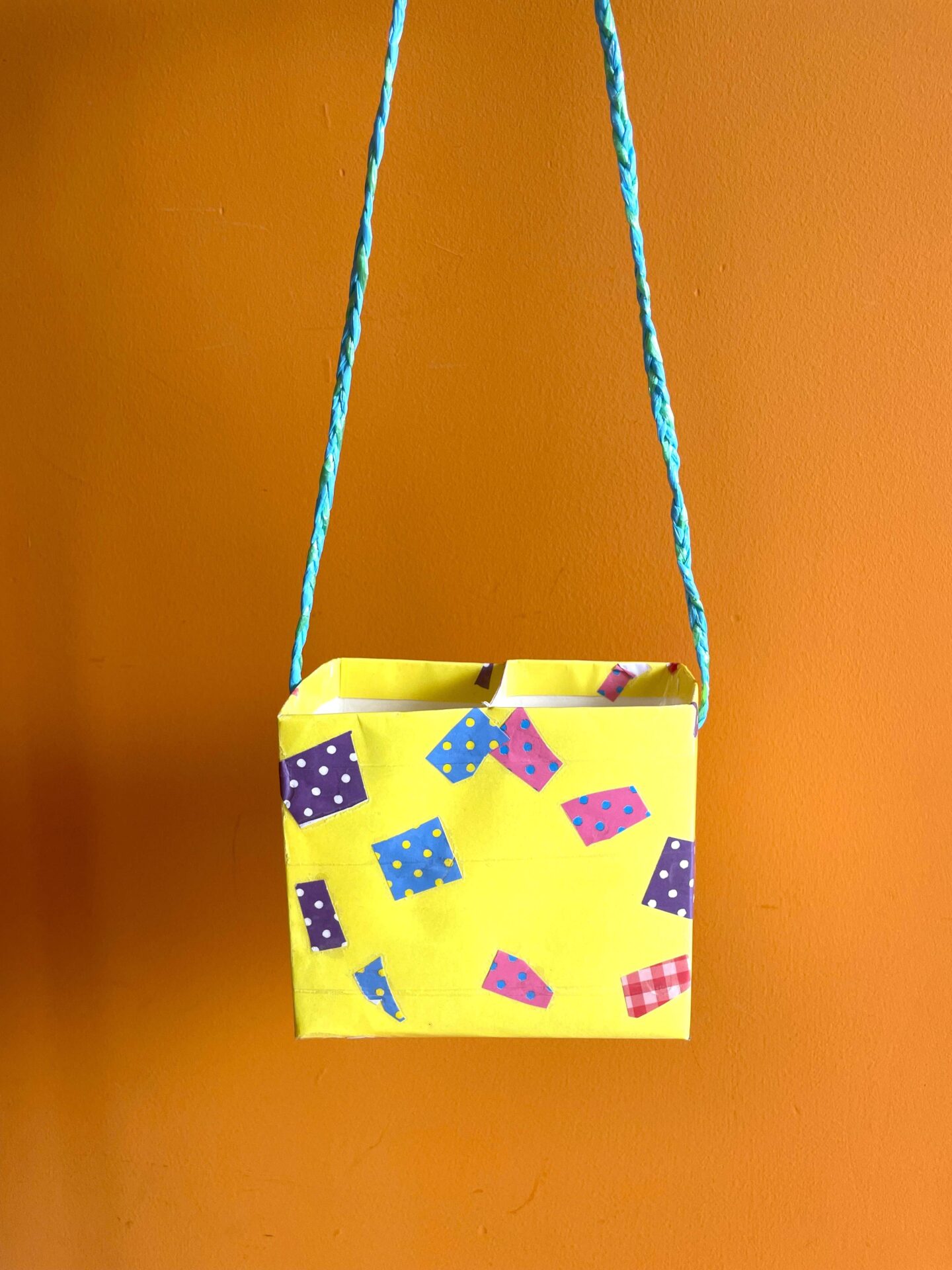 ハサミで切った紙を糊付けして完成したのはお散歩バック👜✨