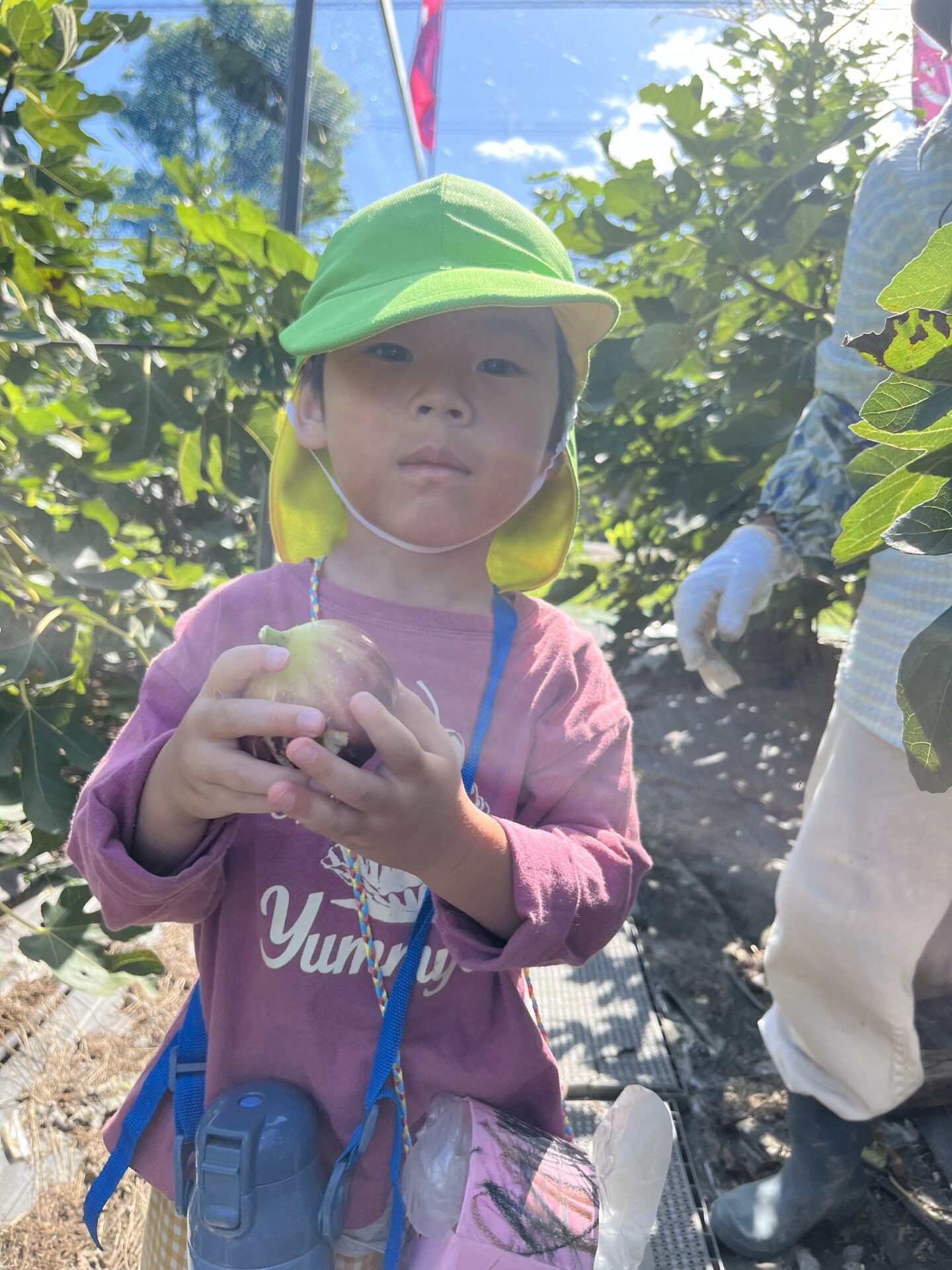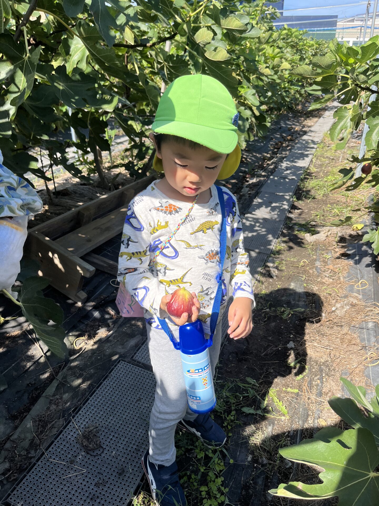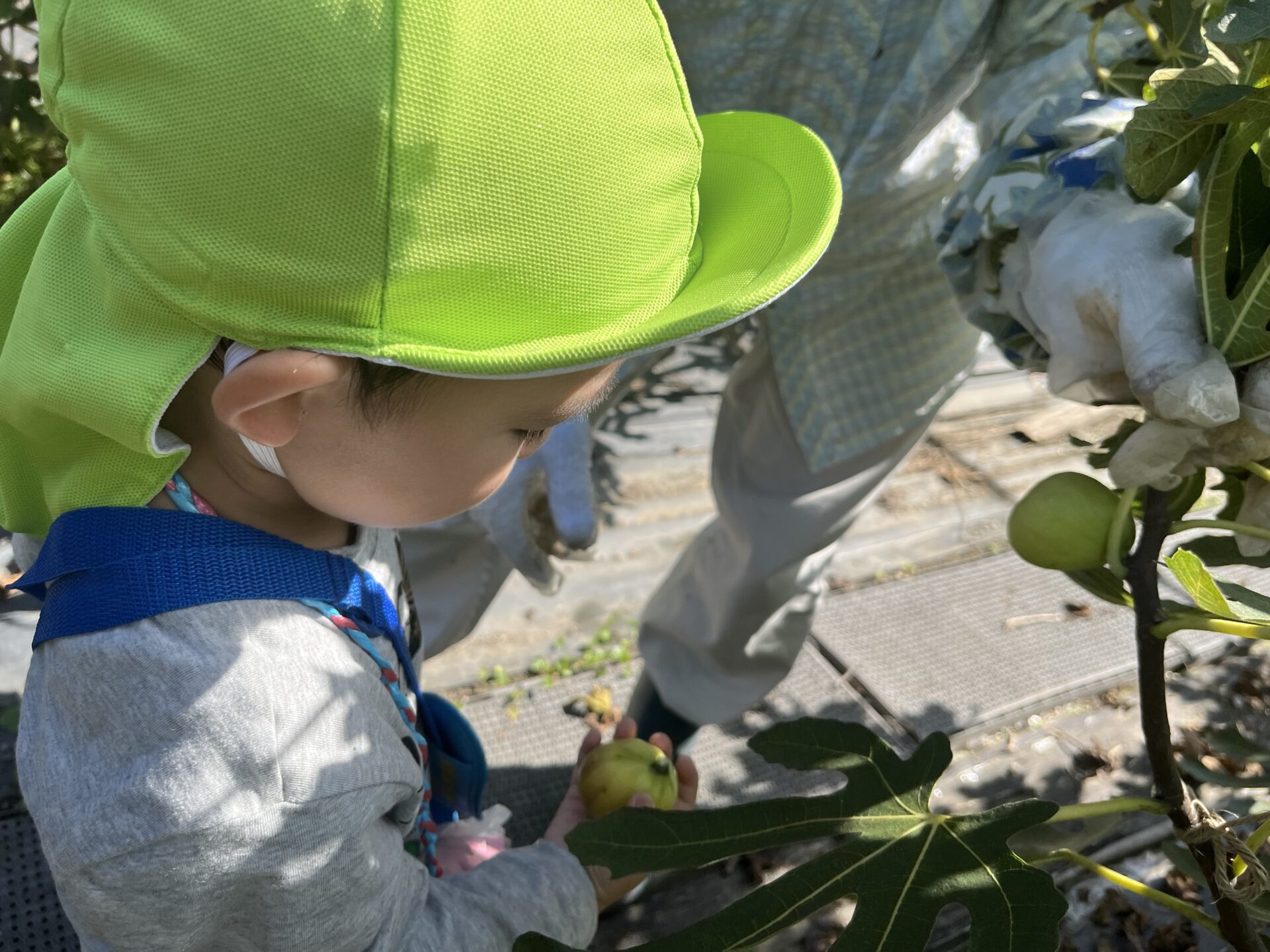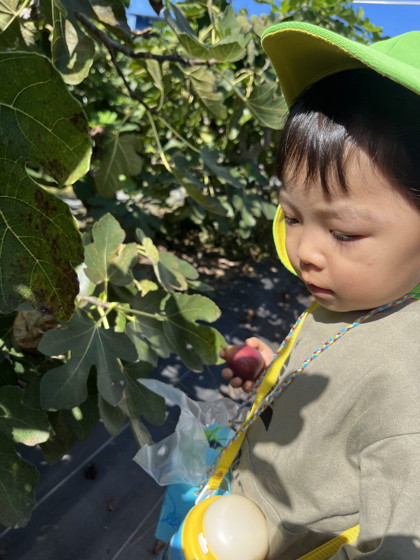 採れたいちじくを大事にそ~っとお散歩バックに入れる子どもたち。