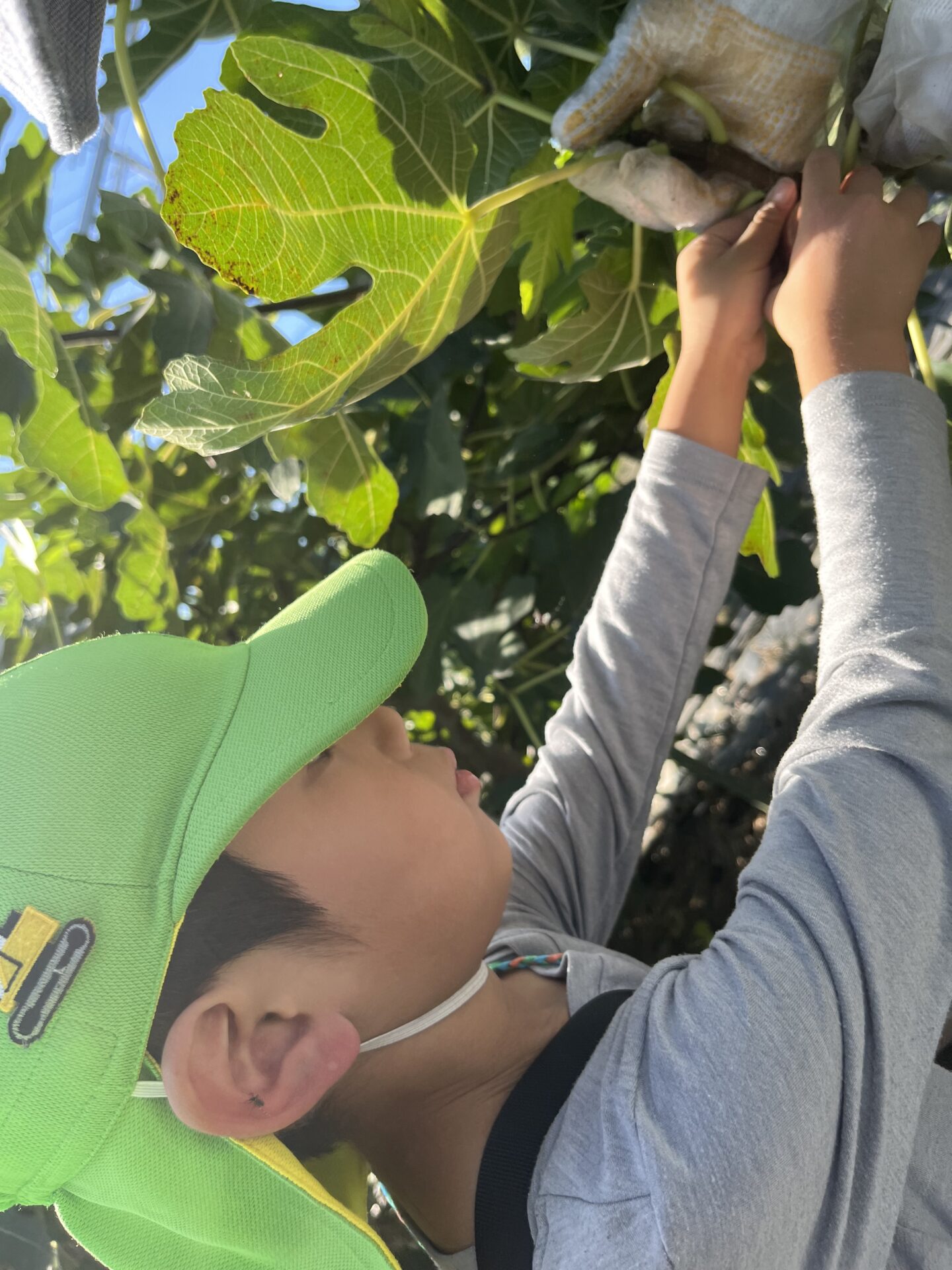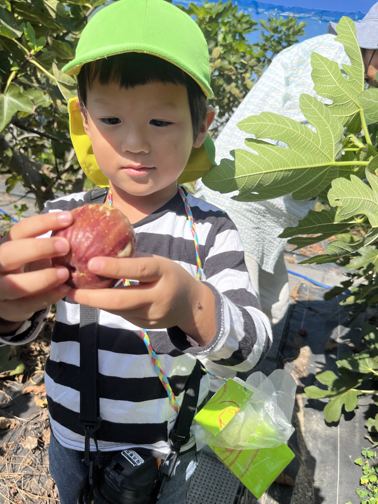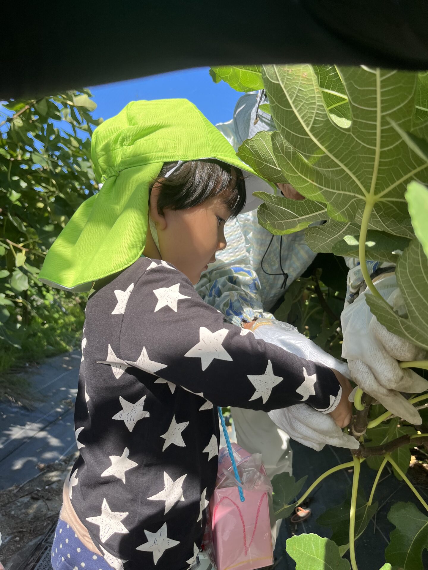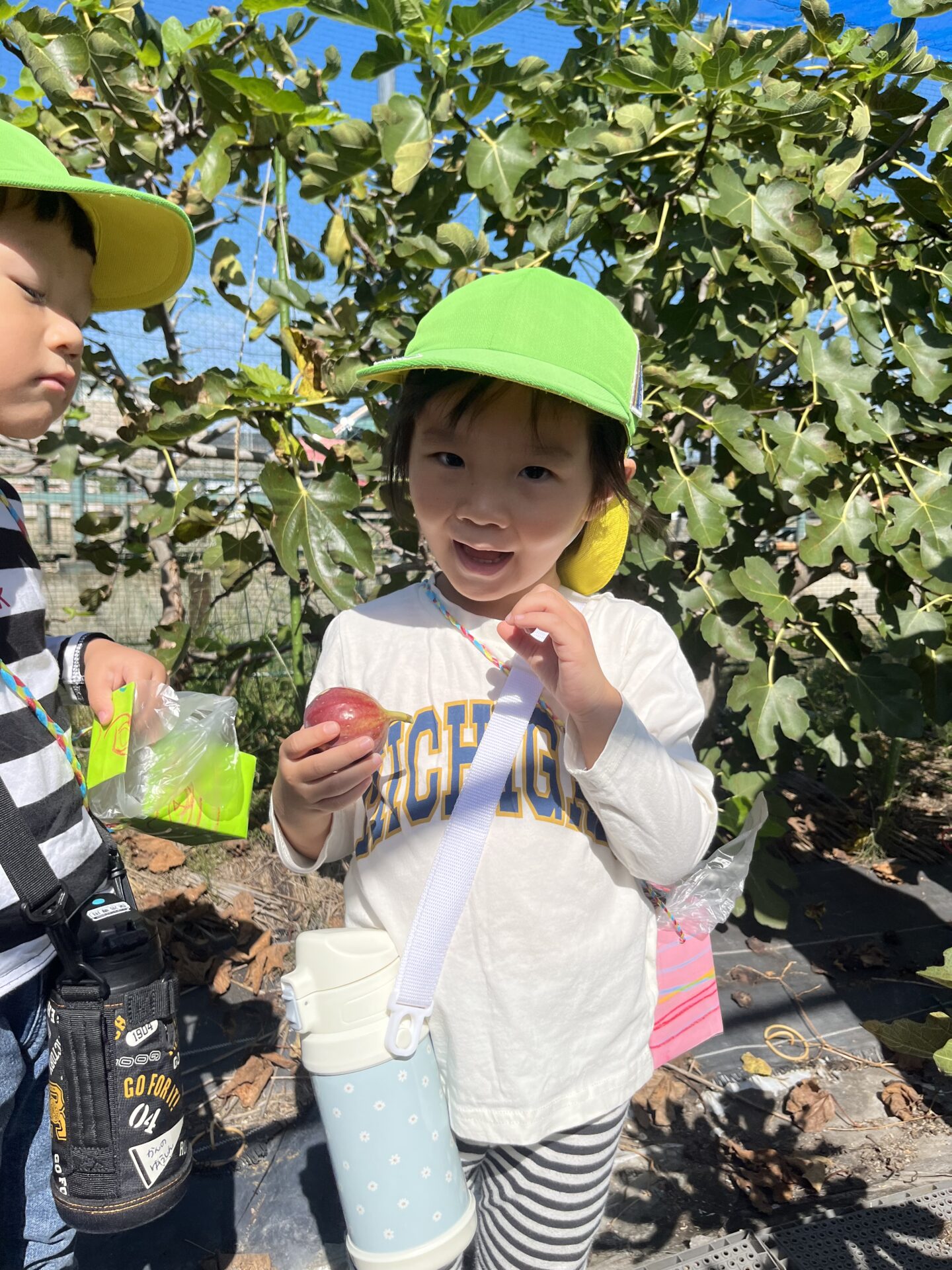 採れたいちじくを大事にそ~っとお散歩バックに入れる子どもたち。
