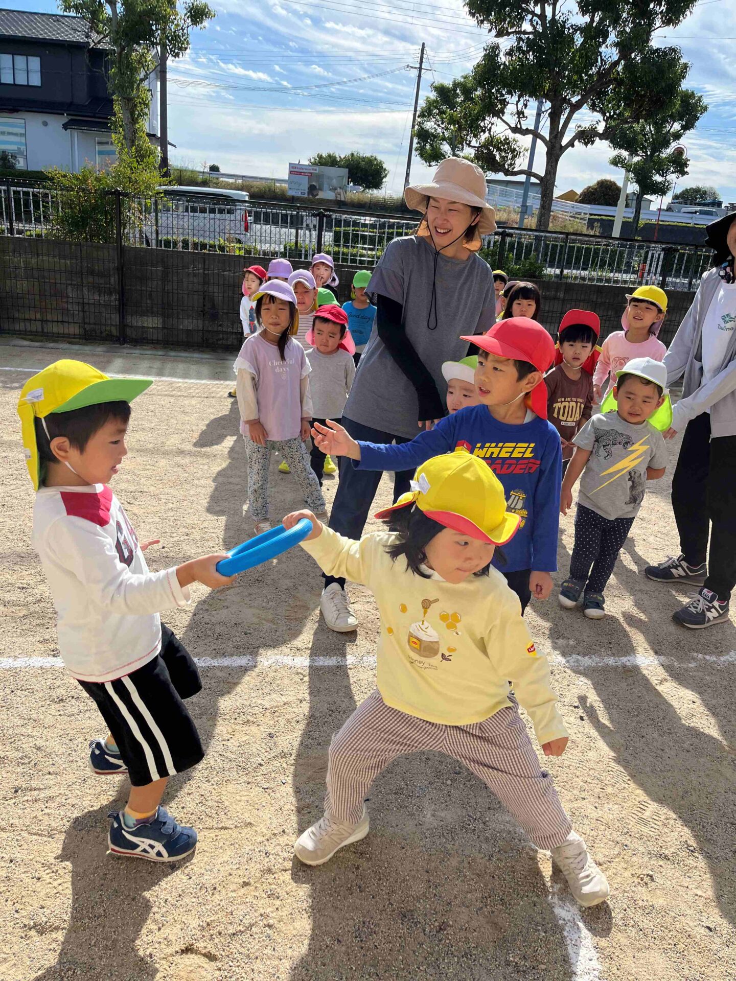 そして後日、3、4、5歳児みんなで運動会ごっこをしました。ずっと憧れていたリレーや和太鼓を一緒に楽しみました✨