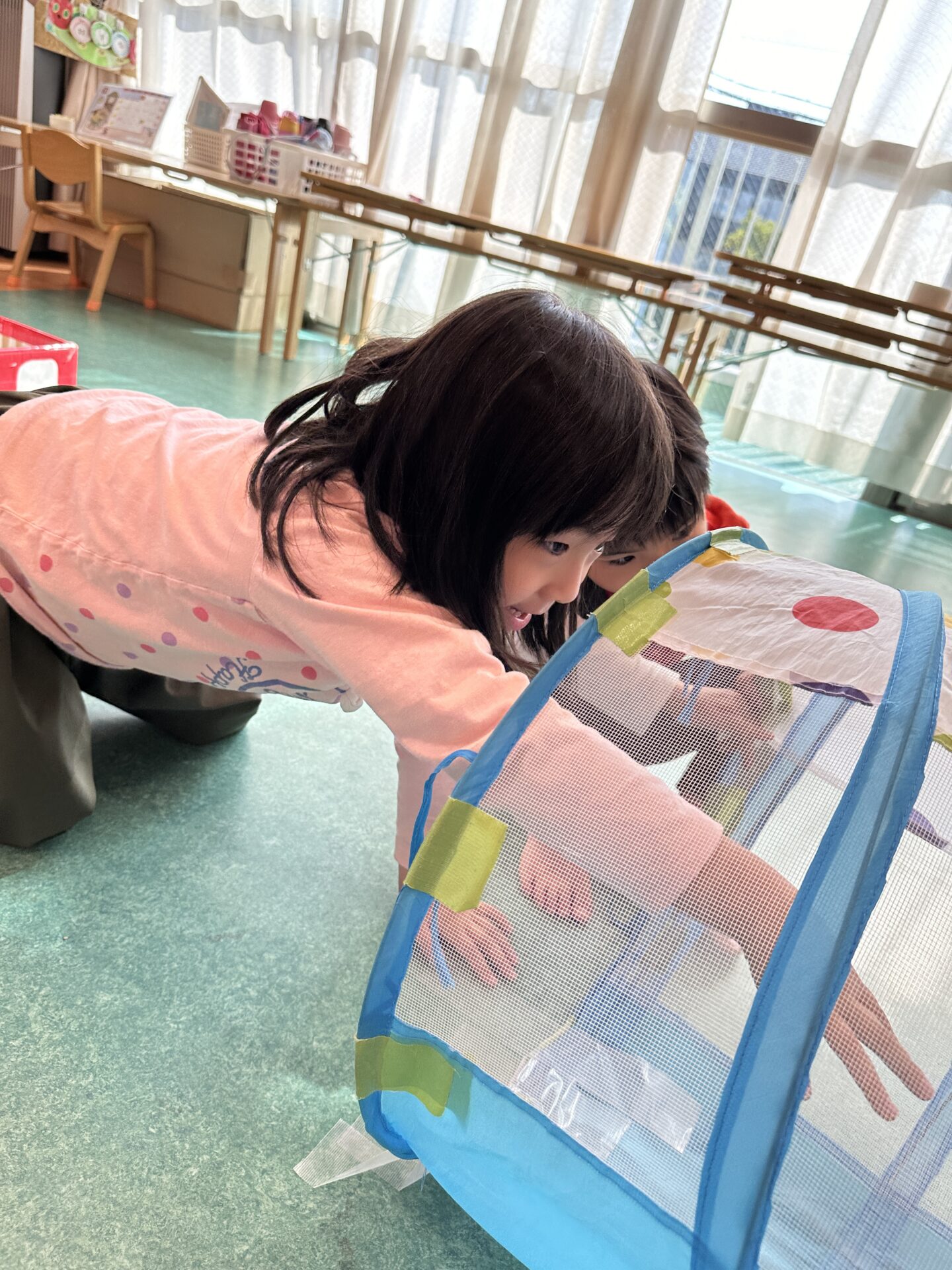 用具を運んだり、動かさないように押さえてあげたり、小さな先生になってくれたくじらチーム!