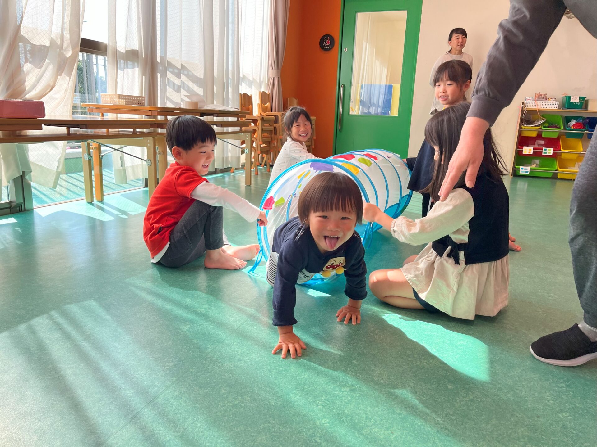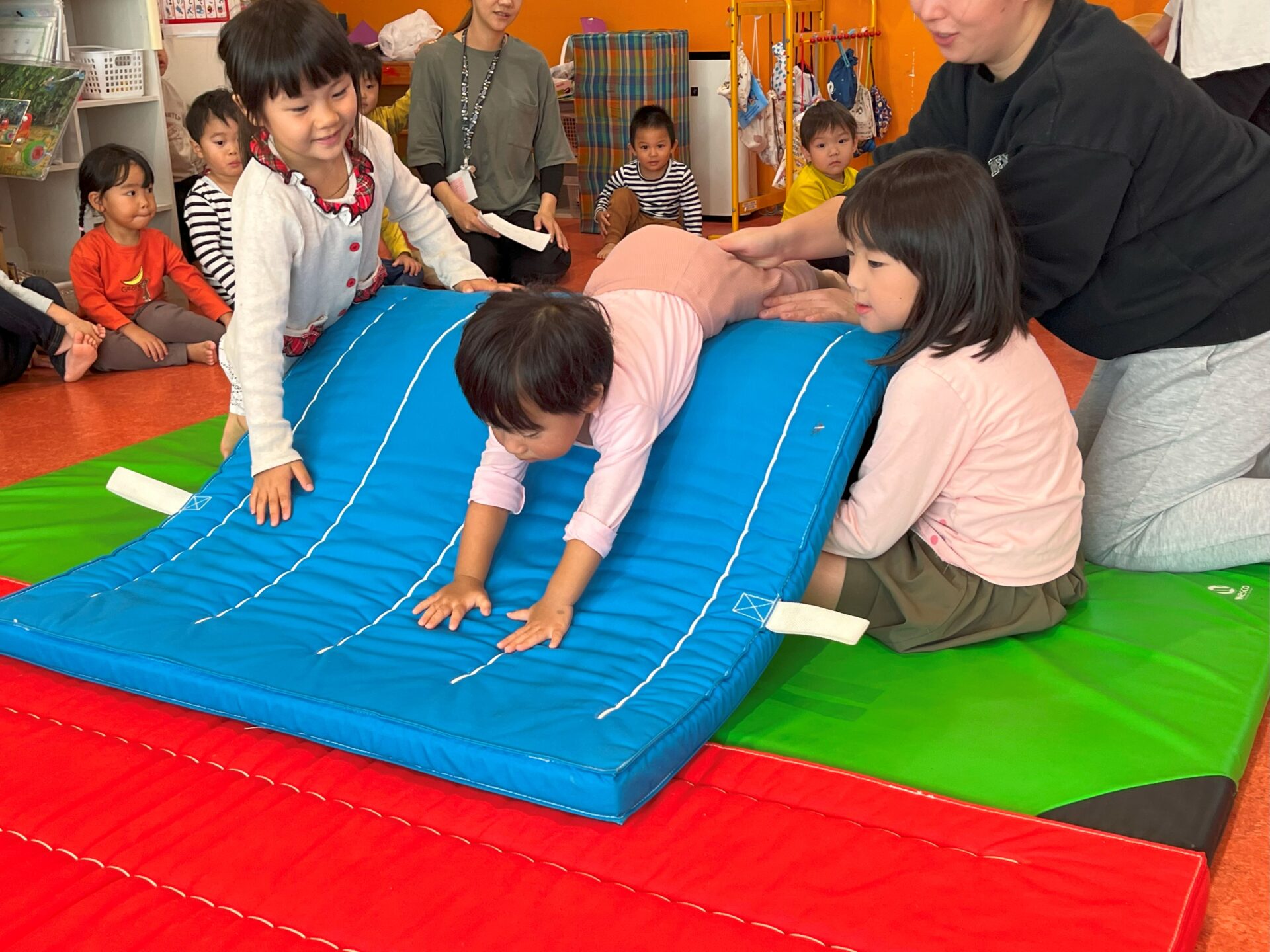 「みんなもあかちゃんの時こんな感じだったんだよ〜」っと話すと、「いやいや、そんなわけないし!」と。運動会を経て自信たっぷりの「カッコいいくじらチームお兄さんお姉さん」には、自分達にこんな時期があったなんて信じられないみたいです!
