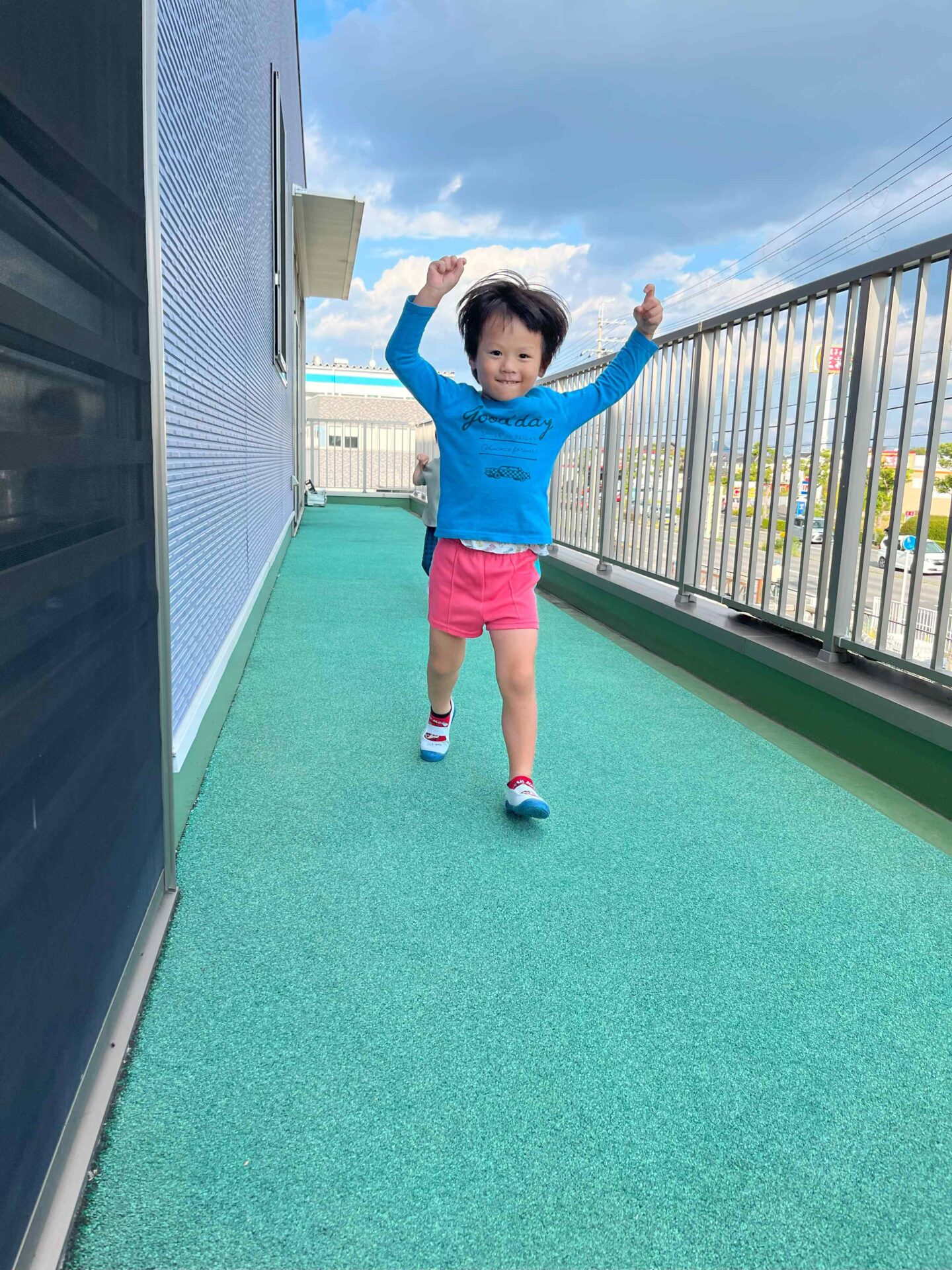 最近はお昼寝の後、テラスに出て走るのが日課になっています。