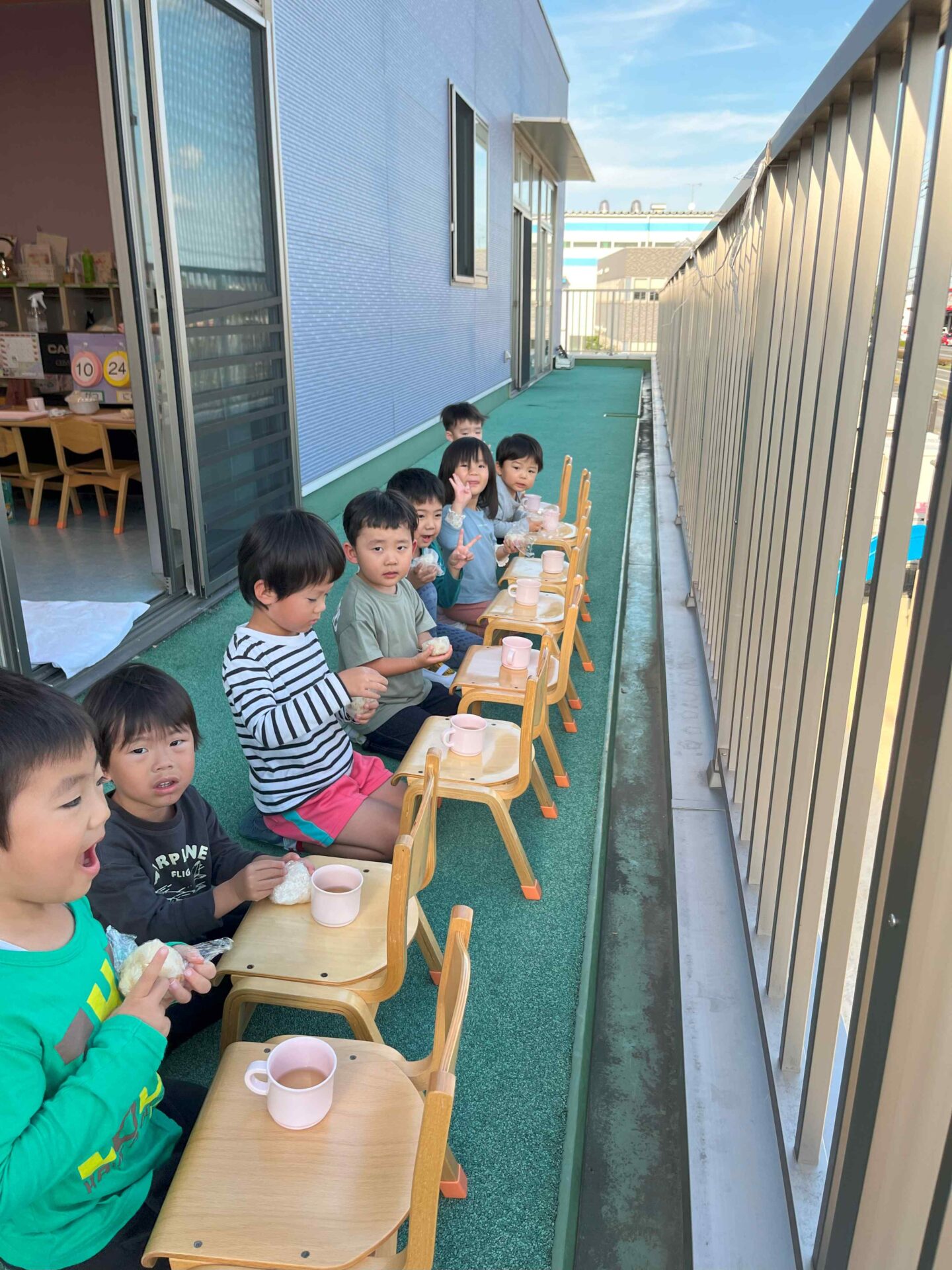 テラスでおやつも食べます。