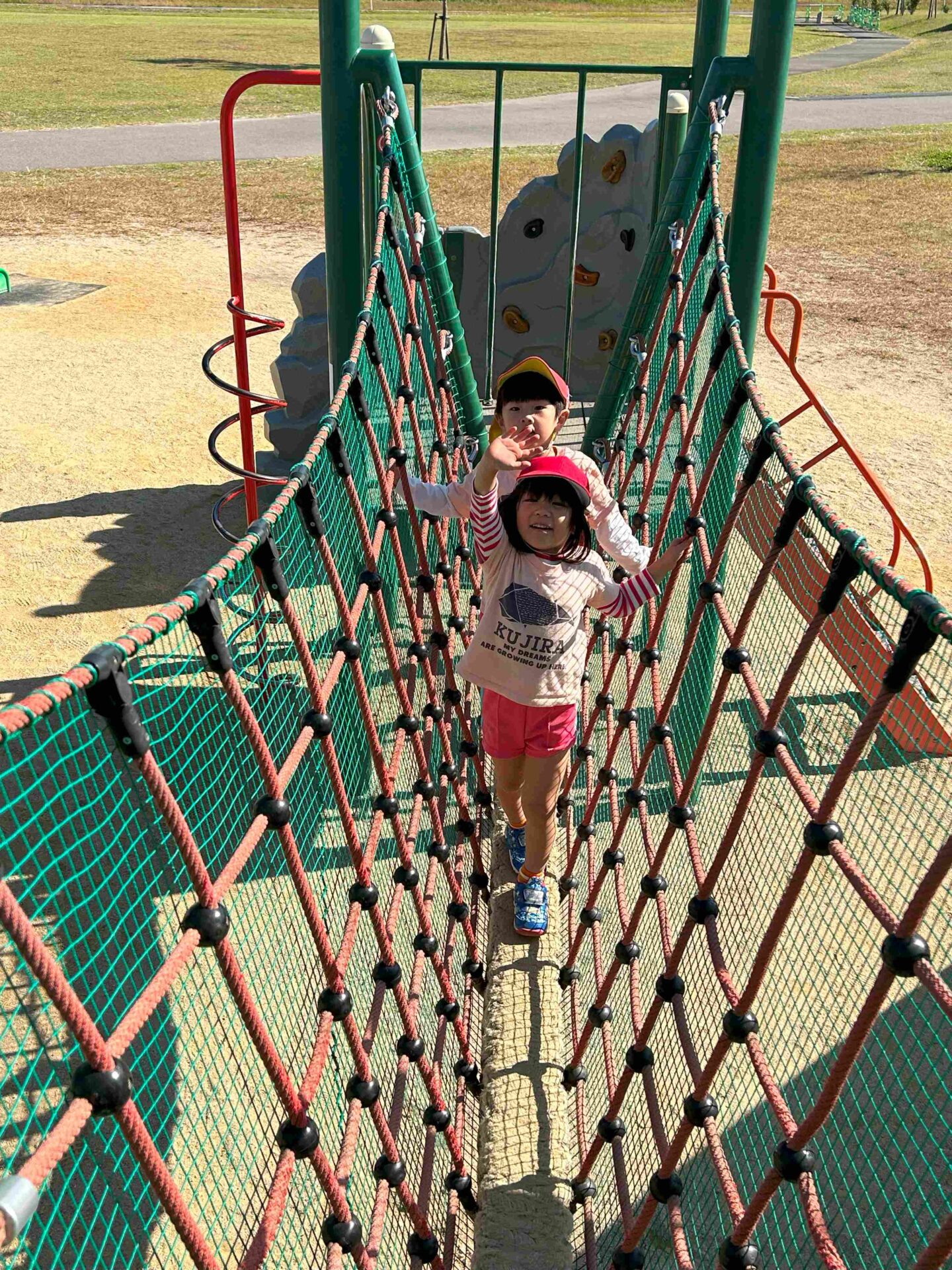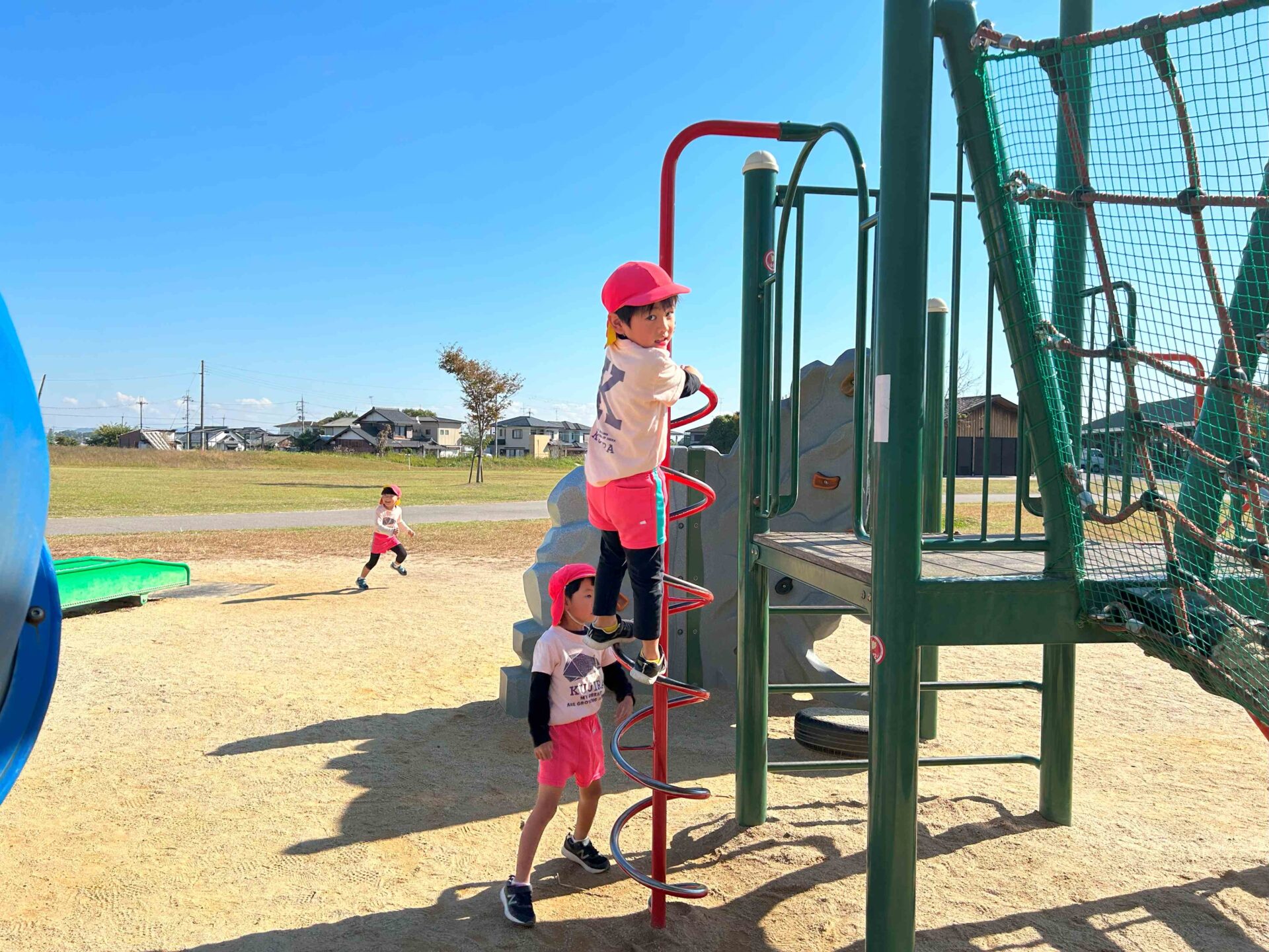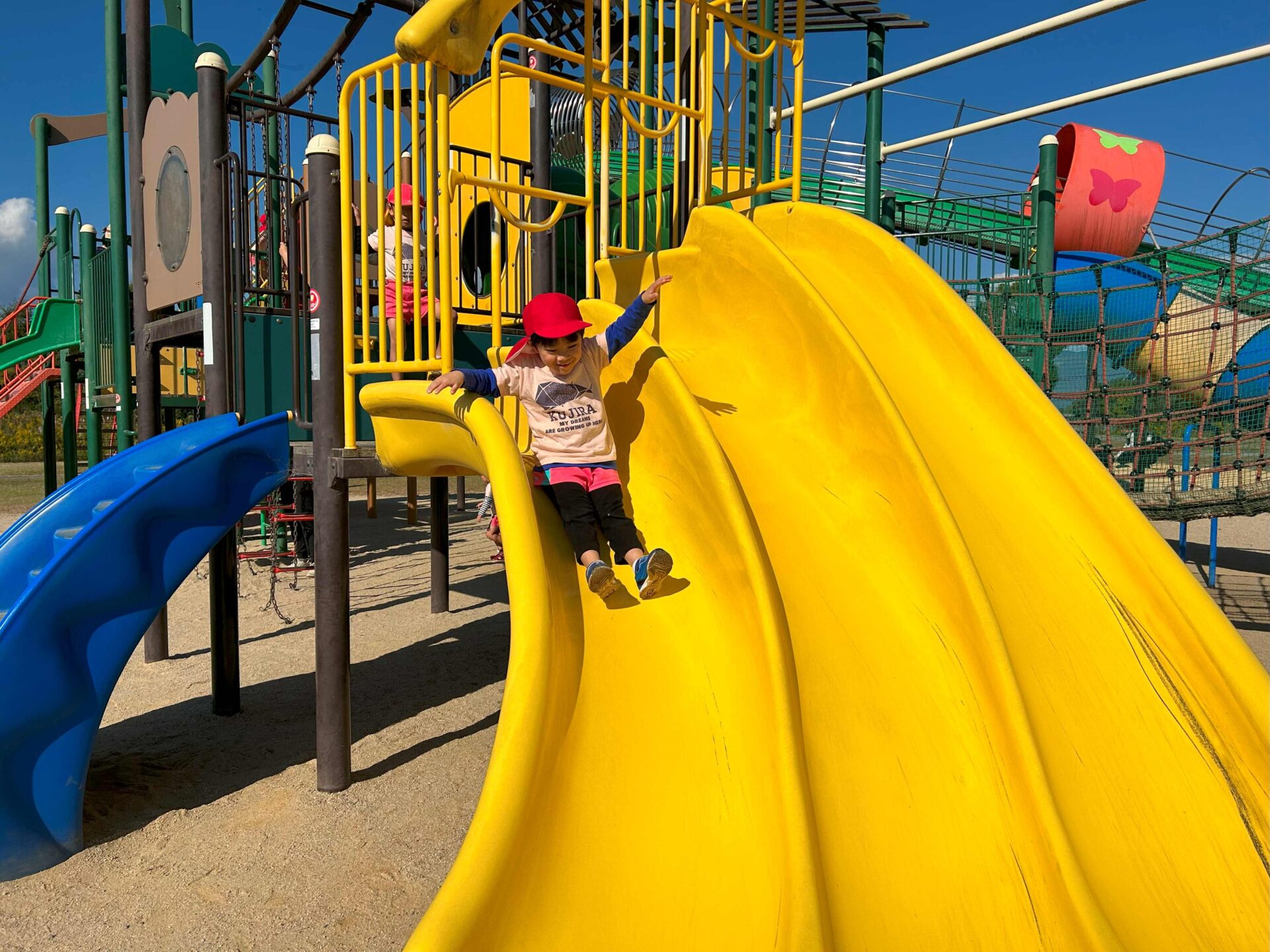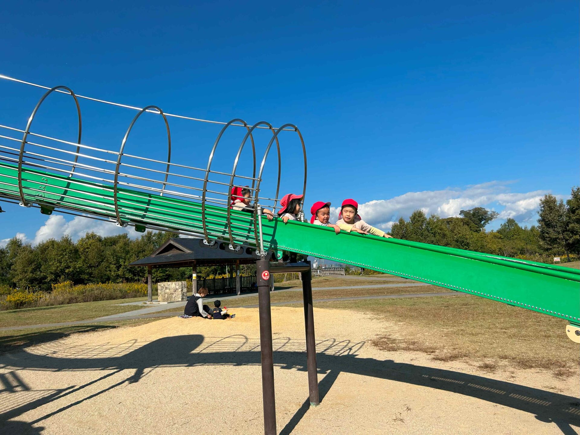 到着すると、大きな滑り台が見えて「見て~!大きな滑り台あるよ~!」と友だちに知らせていました😊