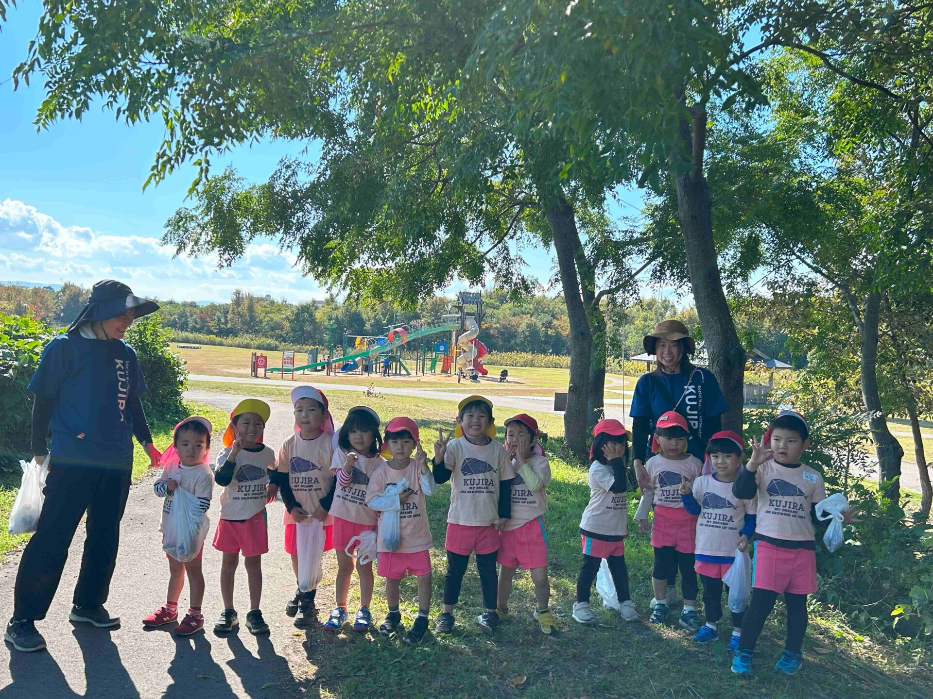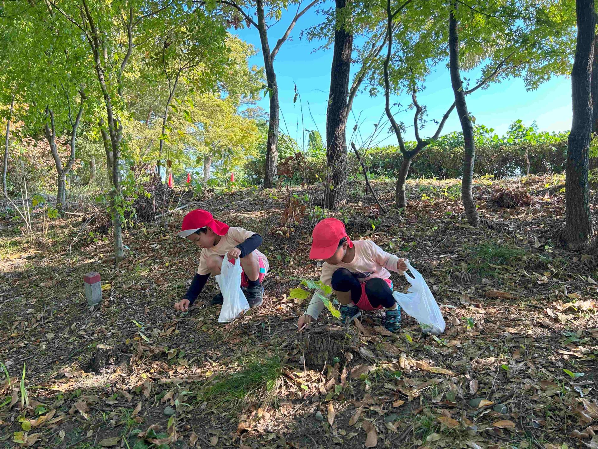 何回も滑り台を滑ったり、走り回ったり、夢中でどんぐり拾いをしたり…思いっきり体を動かして遊んでいた子どもたち。楽しそうな声と笑顔があふれていました😆