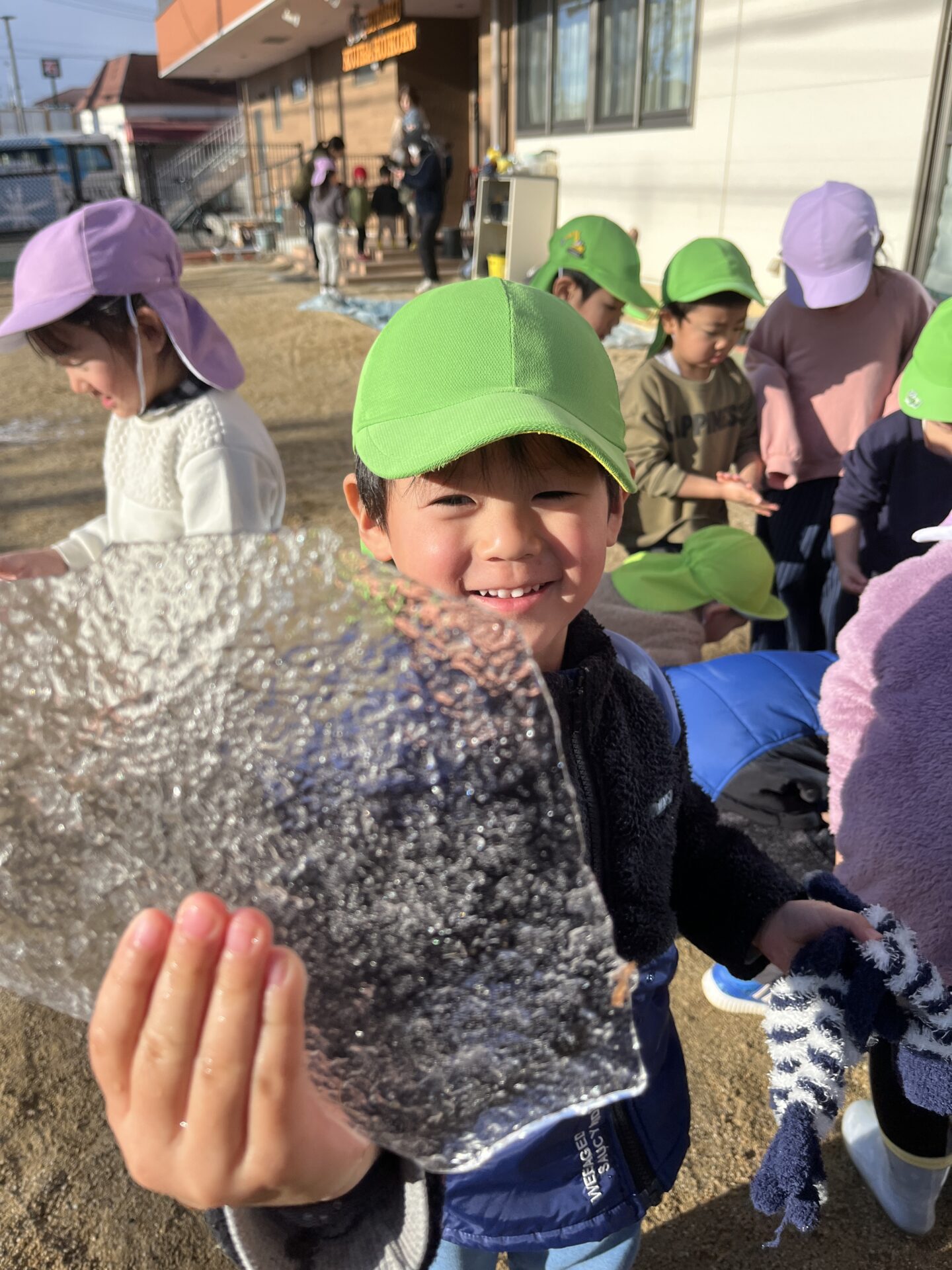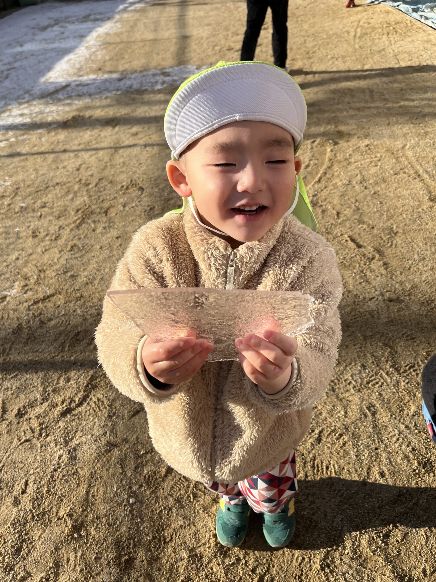 顔よりも大きな氷に大喜び(^^♪