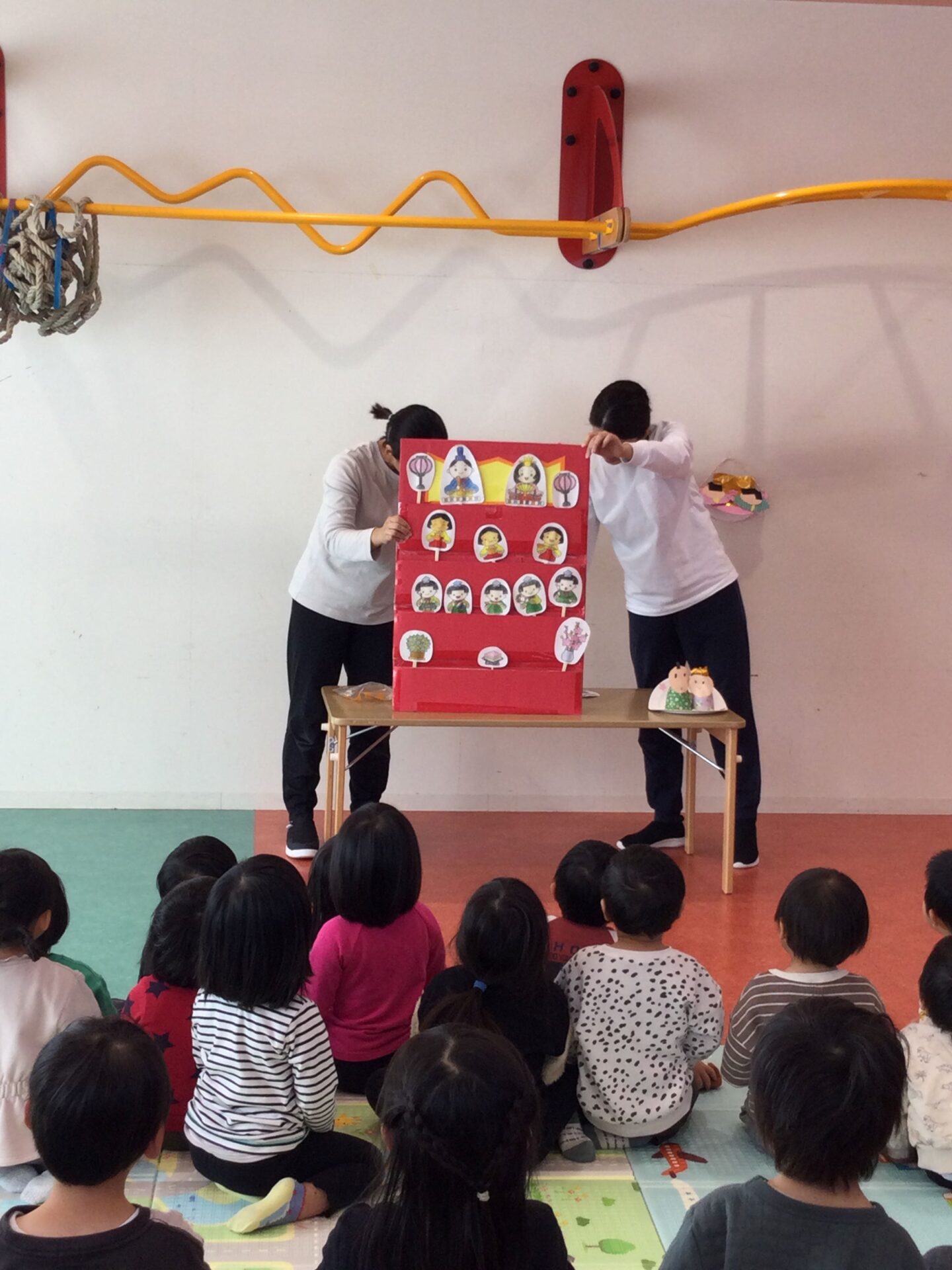 まずは紙芝居でひな祭りの由来を教えてもらいます!