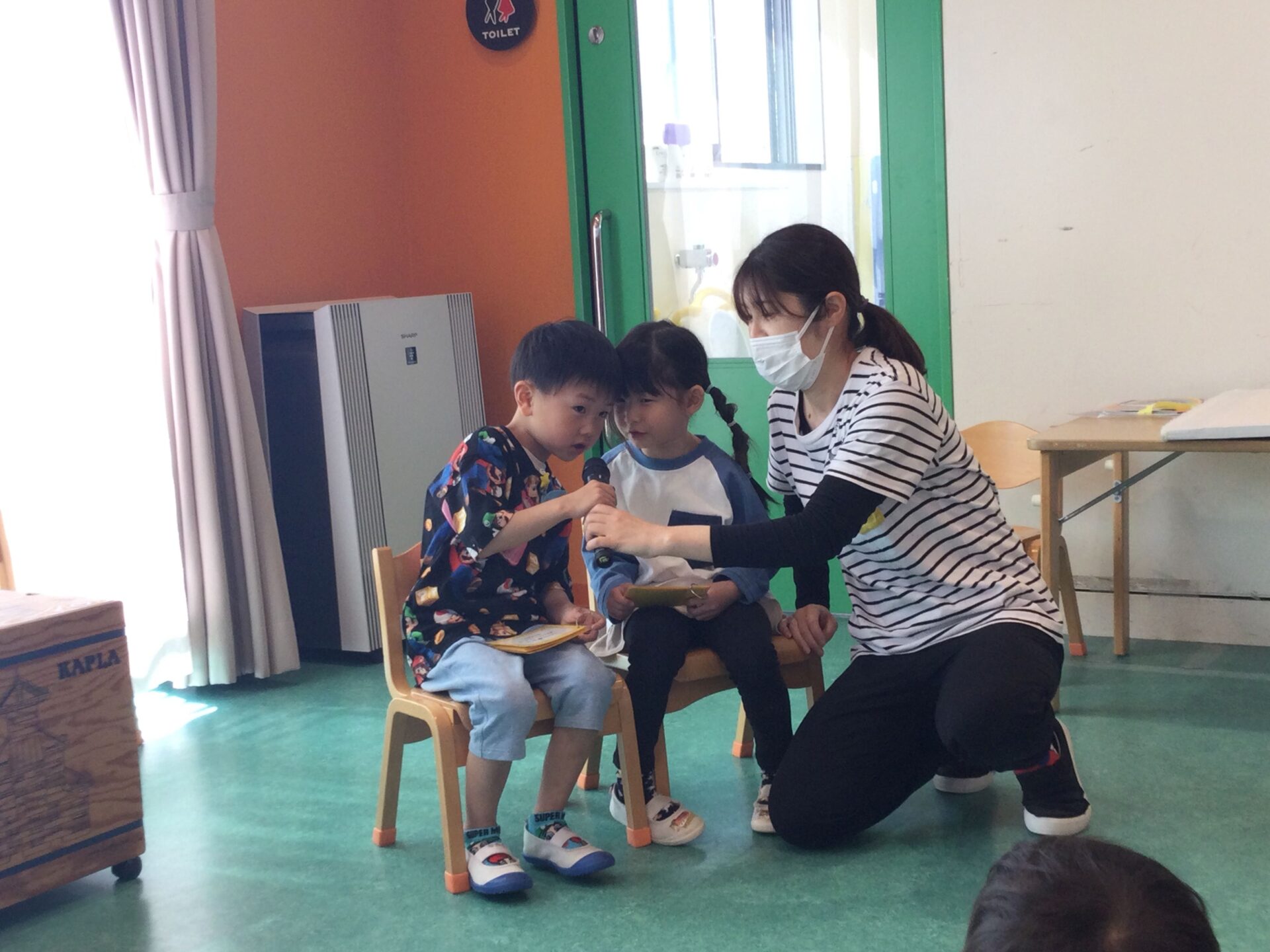 5歳児、くじらチームの子どもたちは憧れの司会に挑戦しました!
