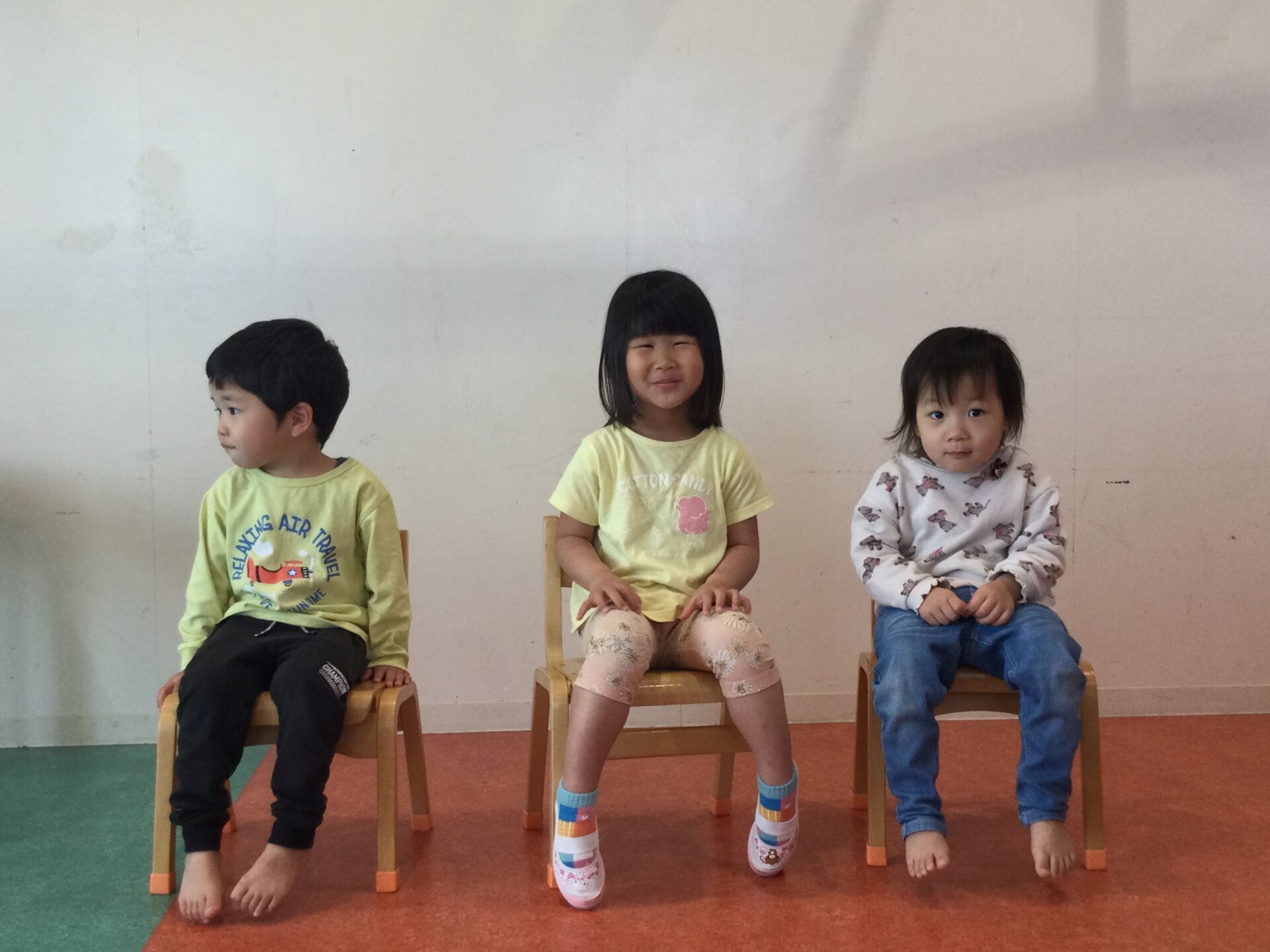 4月生まれのお友だちは、3人! 司会のお兄さん・お姉さんと同じで、ドキドキしています。