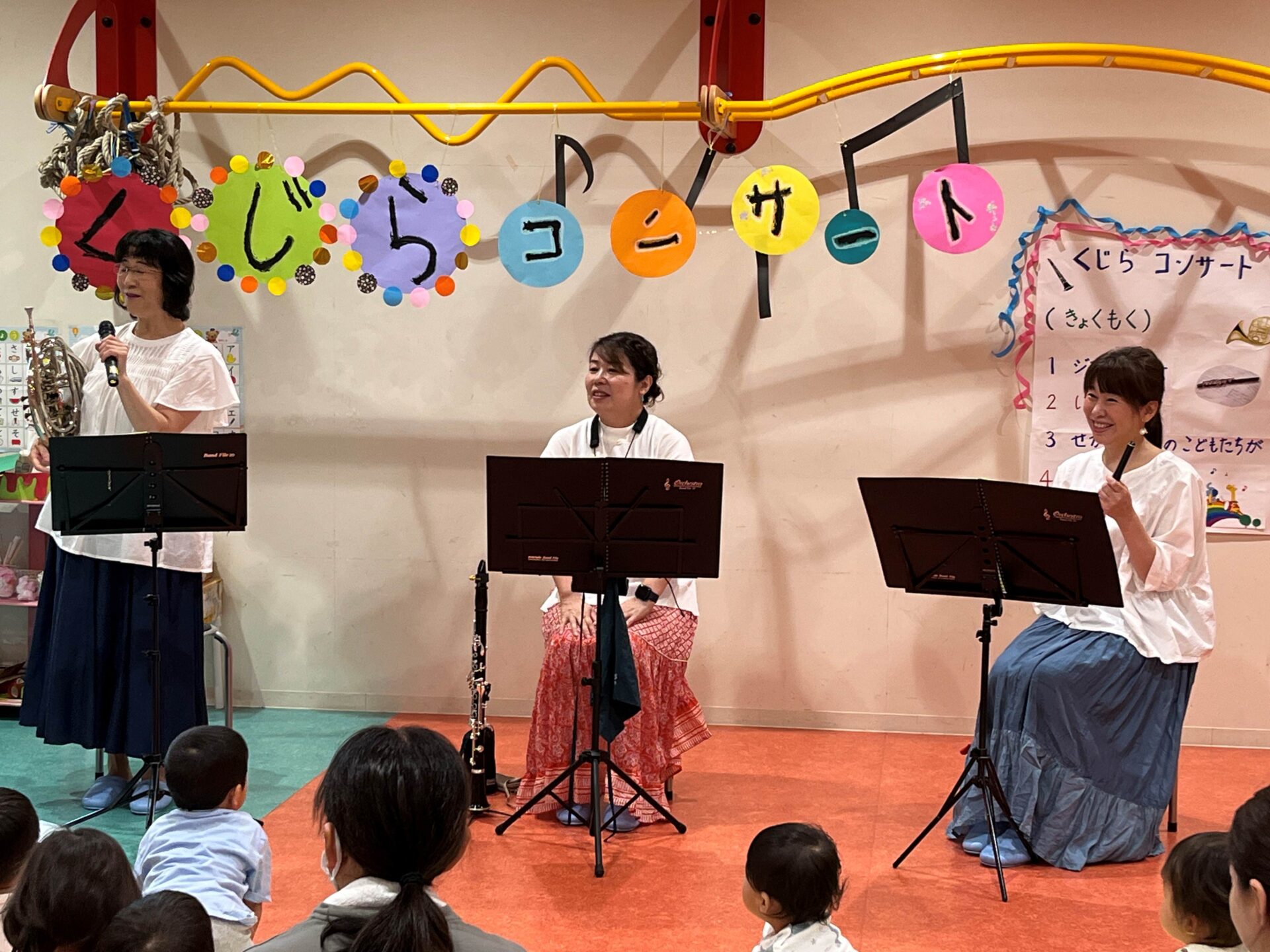 今日は、「Classy☆devel」の三人の方が来園してくださり、演奏会を開いてくださいました。