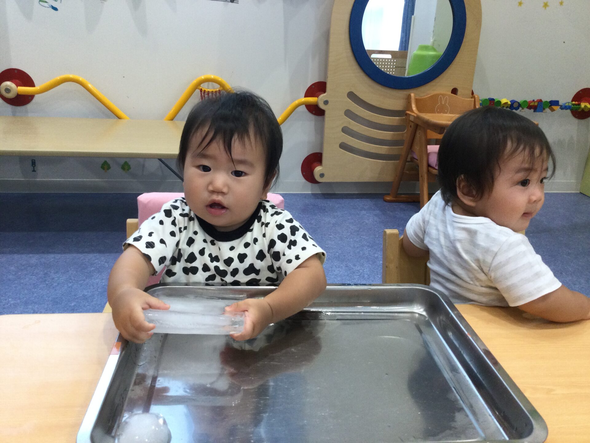 暑い日が続いていますが、うみチームでは、冷た~い遊びをしました。