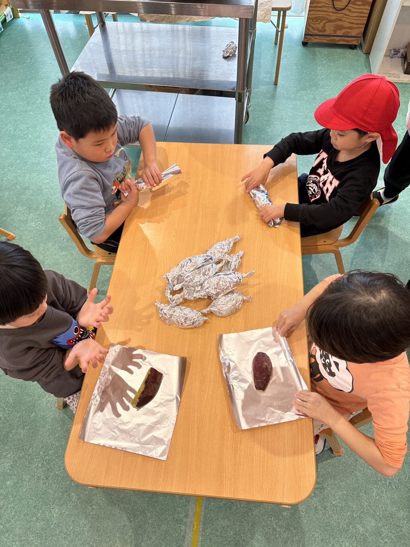 園の畑でとれた「さつまいも」を食べる日がついにやってきました!
