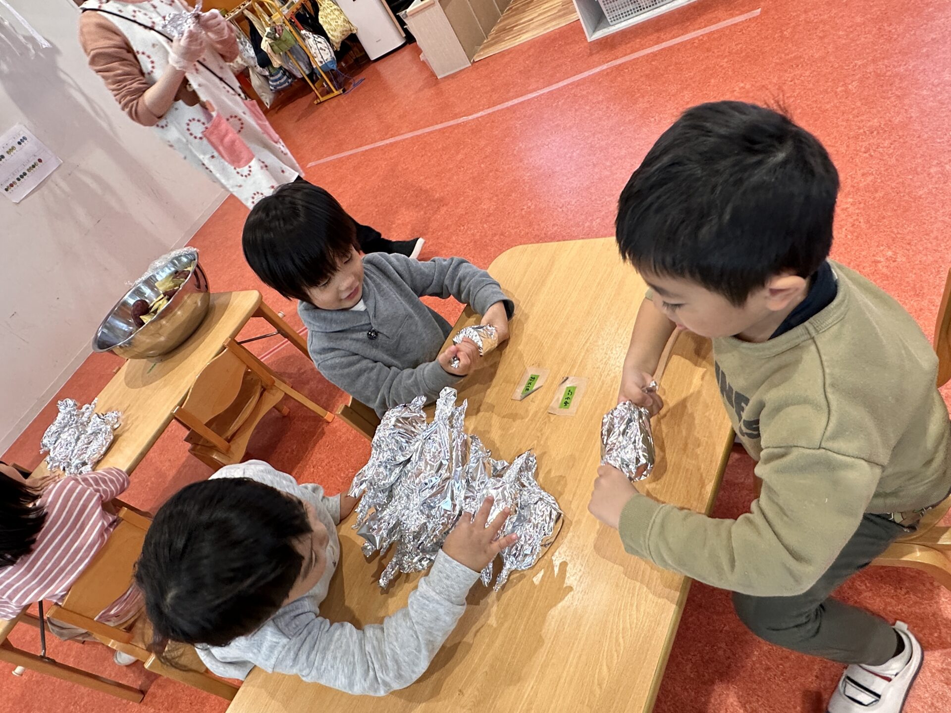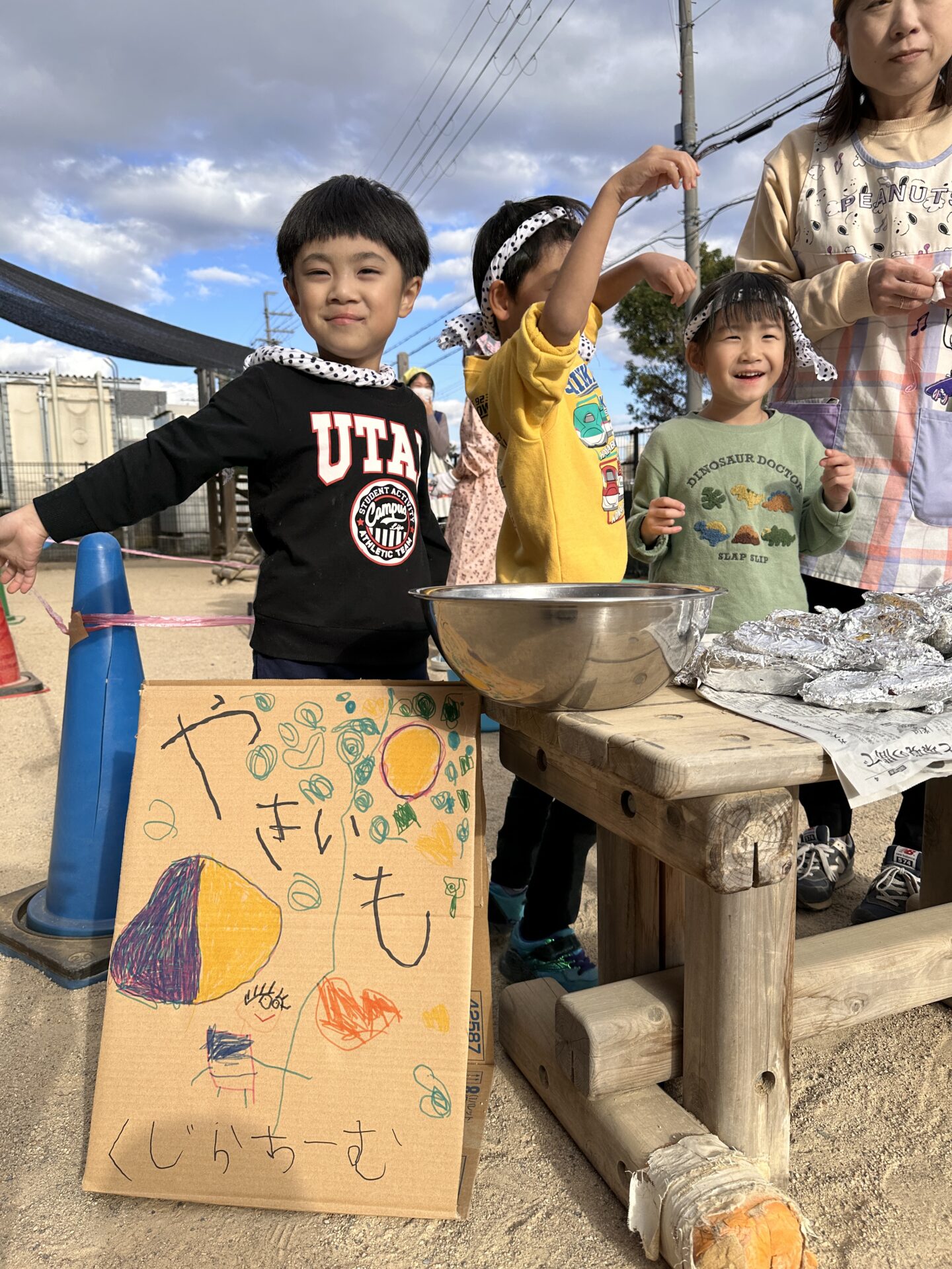 子どもたちと一緒に相談して準備したやきいもやさん!