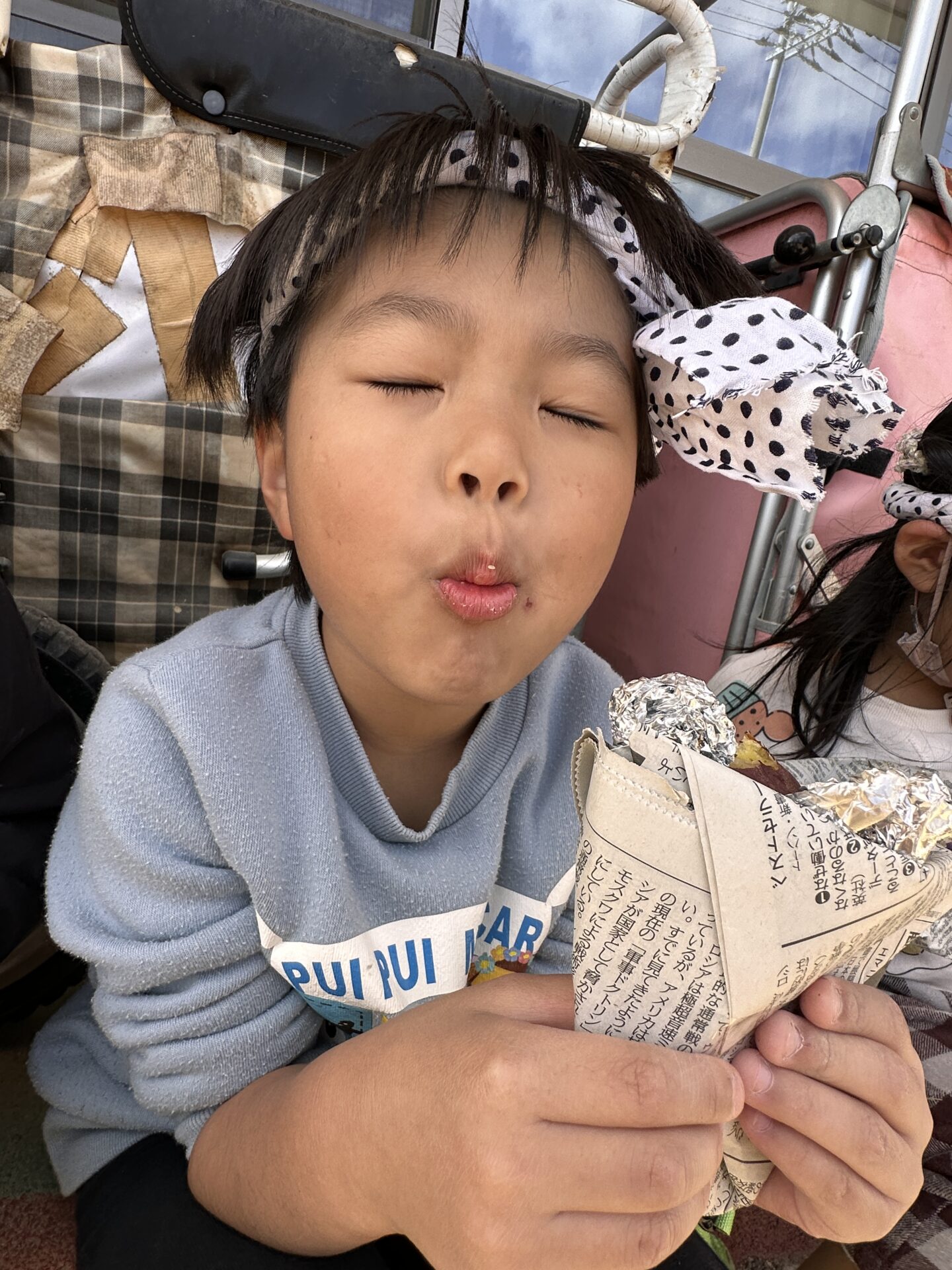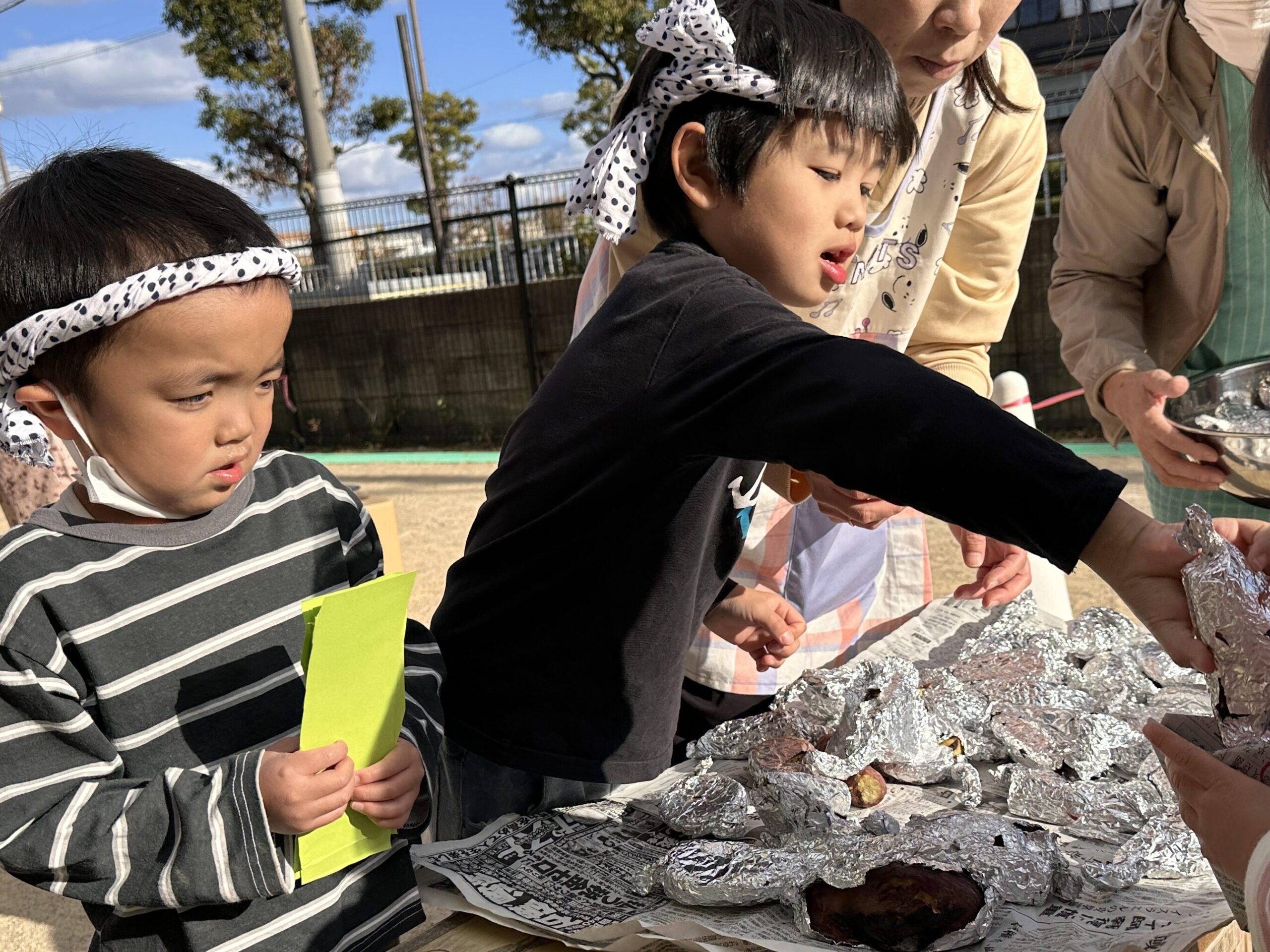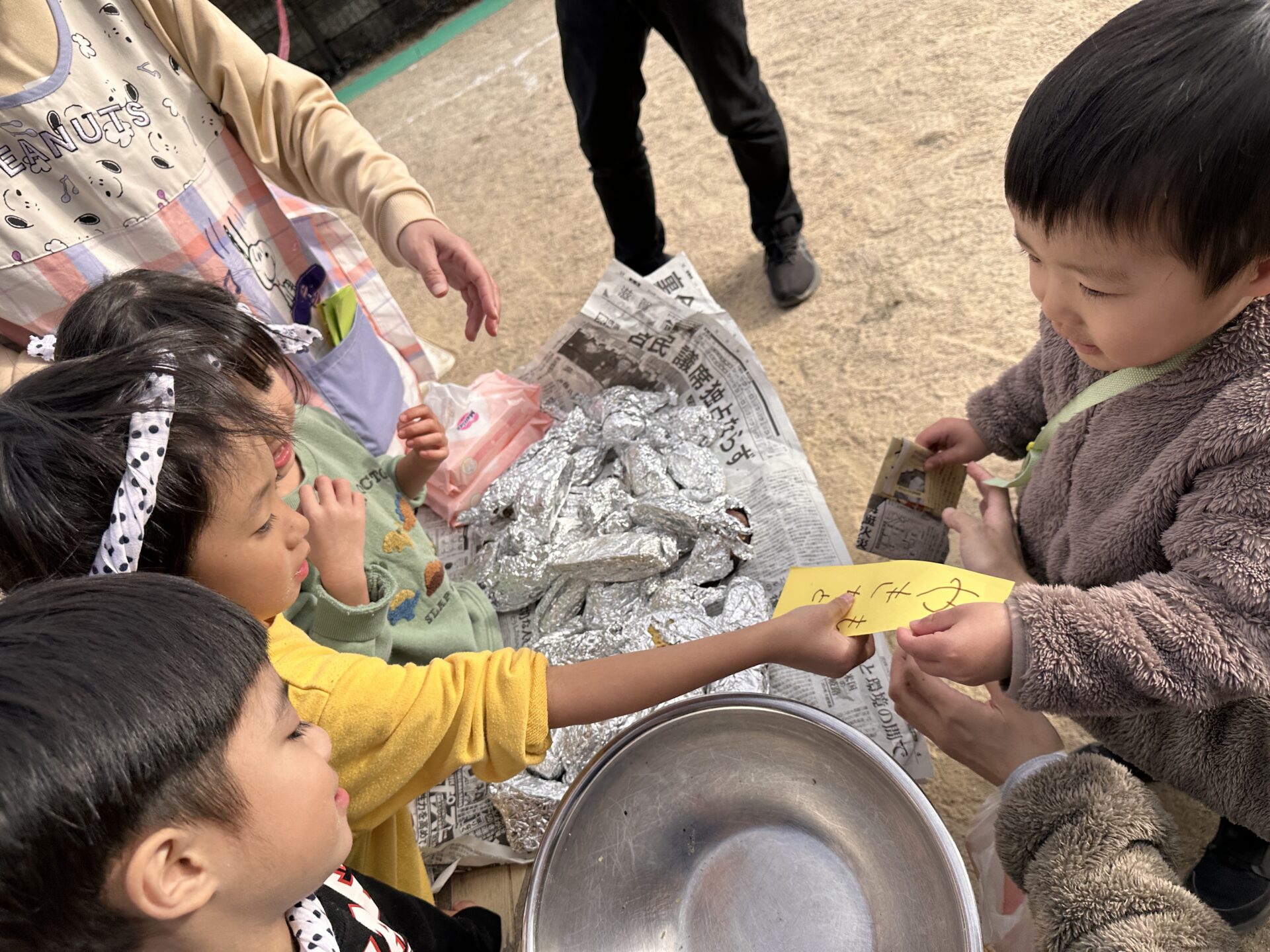 保育園のみんなで食べるやきいもは格別の美味しさだったようです。