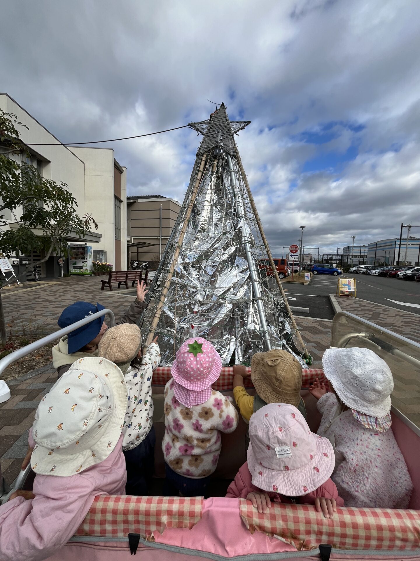 お散歩に行くと、クリスマスツリーを見つけました!!