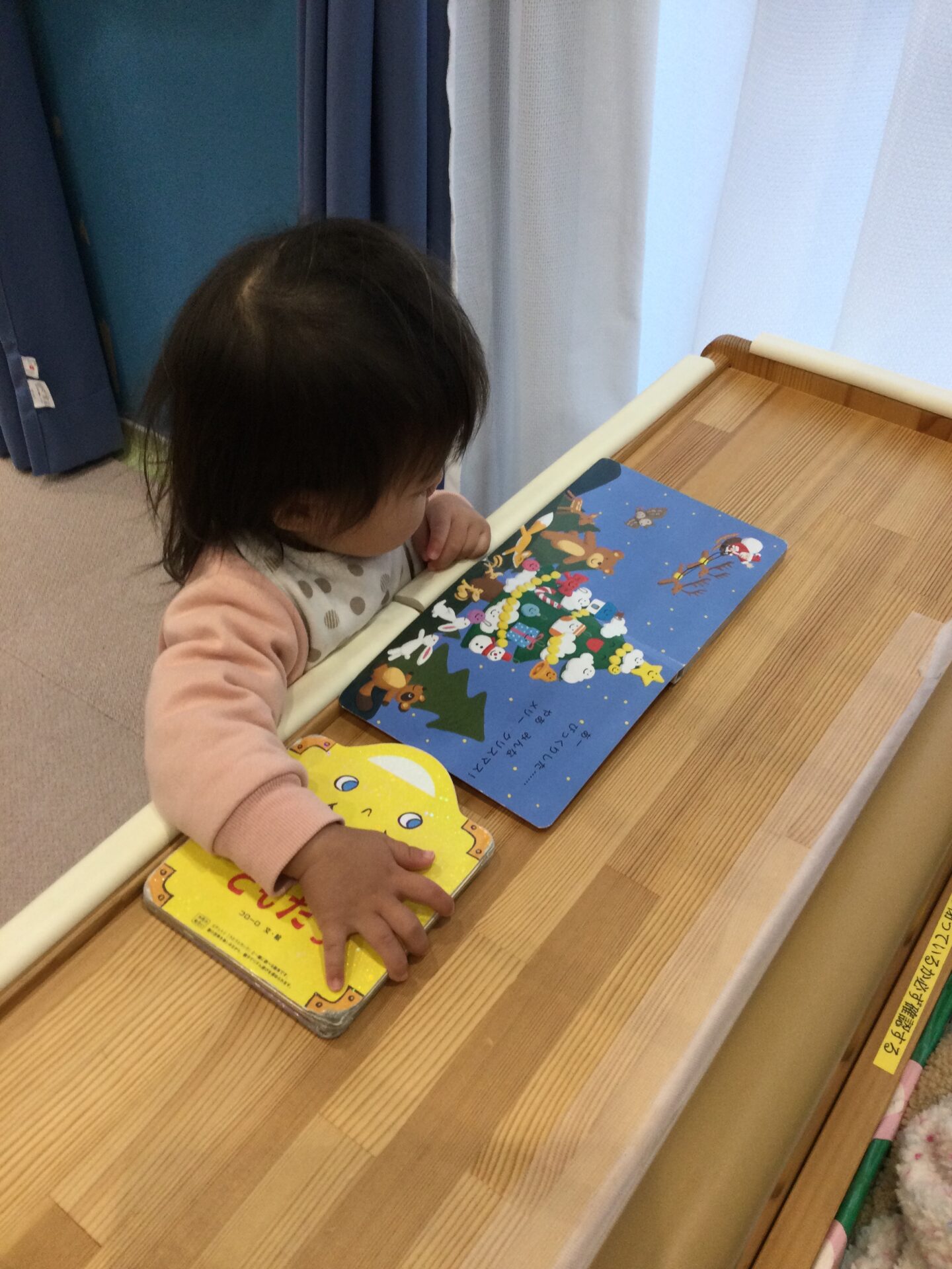 絵本の中のサンタクロースやオーナメントを夢中で見ています🌝