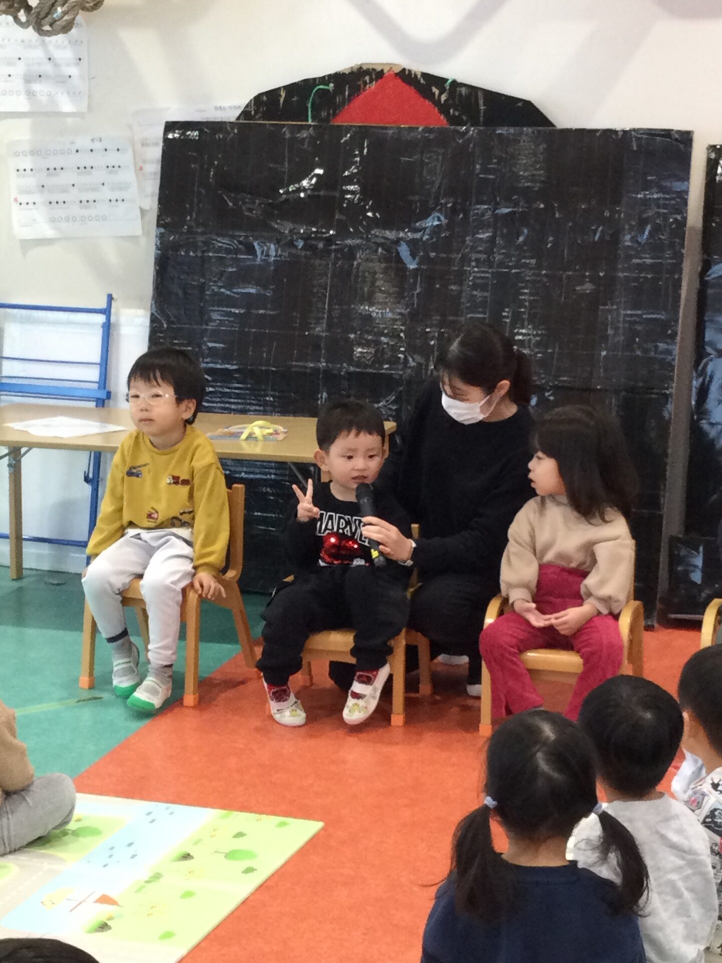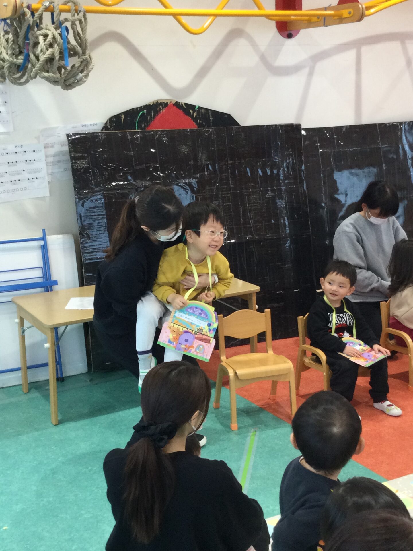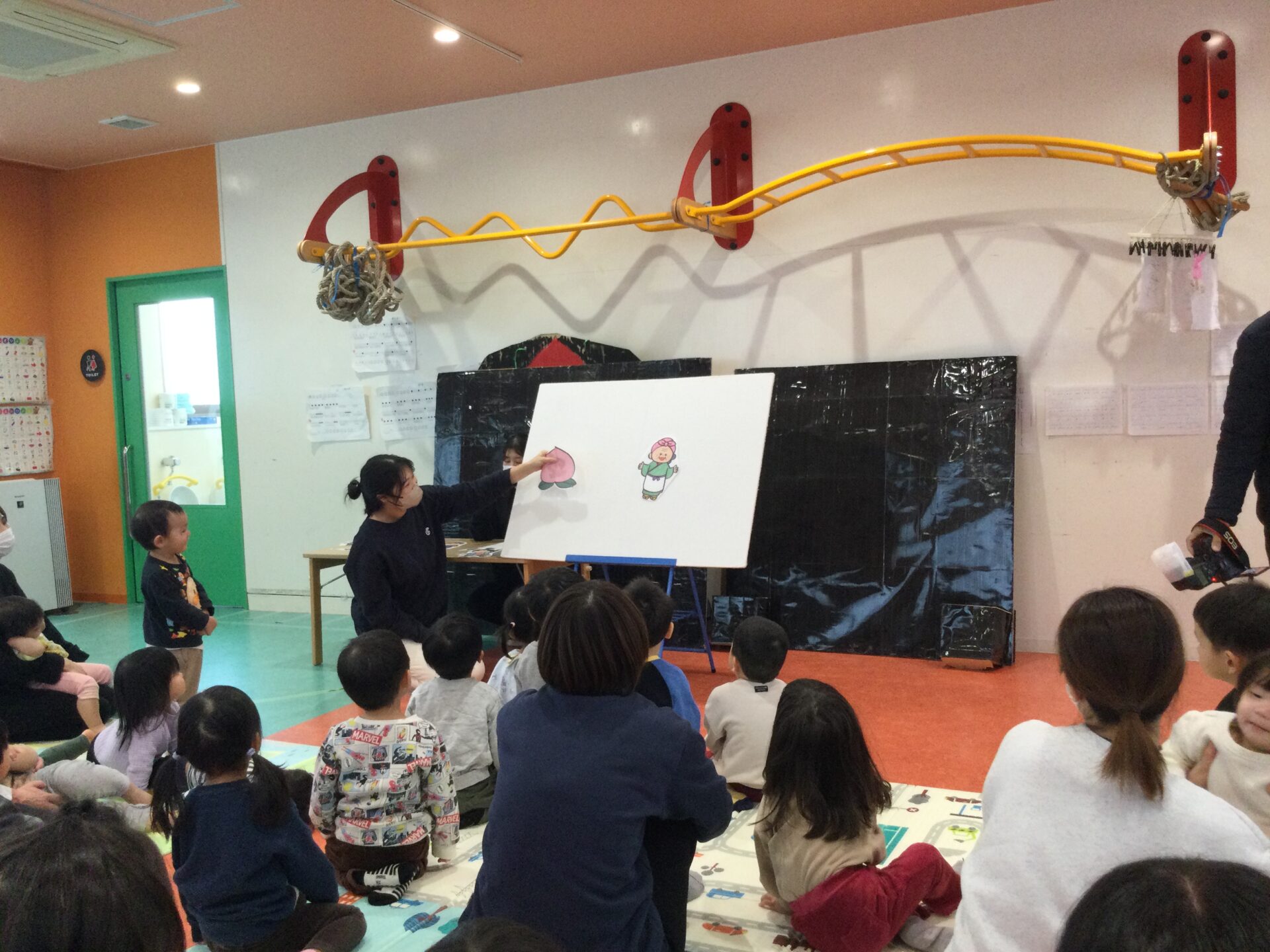 知っているお話しなので、「ももたろうさん、ももたろうさん~♫」とみんなで元気よく歌って大盛り上がりでした🤗