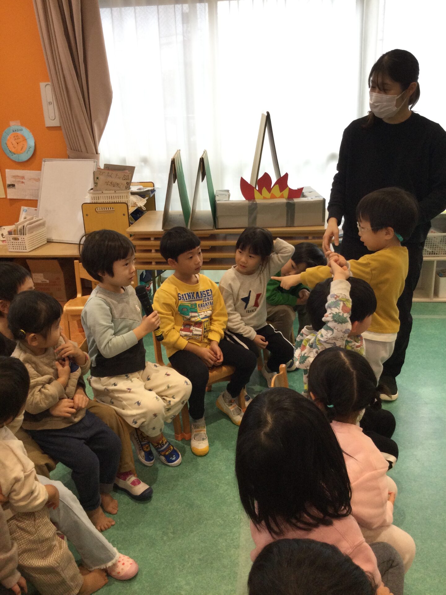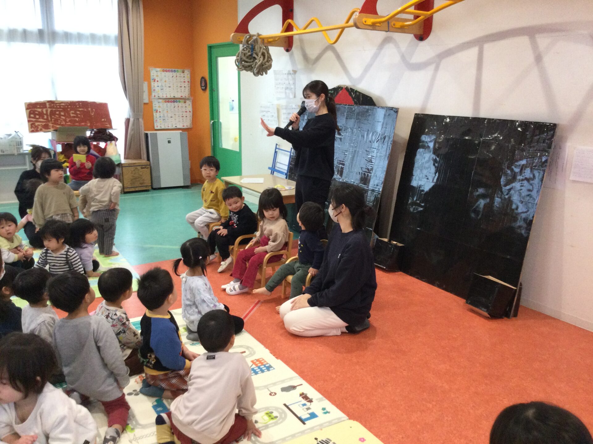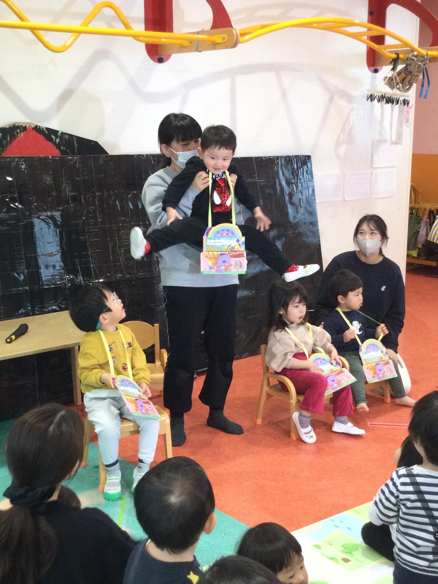 知っているお話しなので、「ももたろうさん、ももたろうさん~♫」とみんなで元気よく歌って大盛り上がりでした🤗