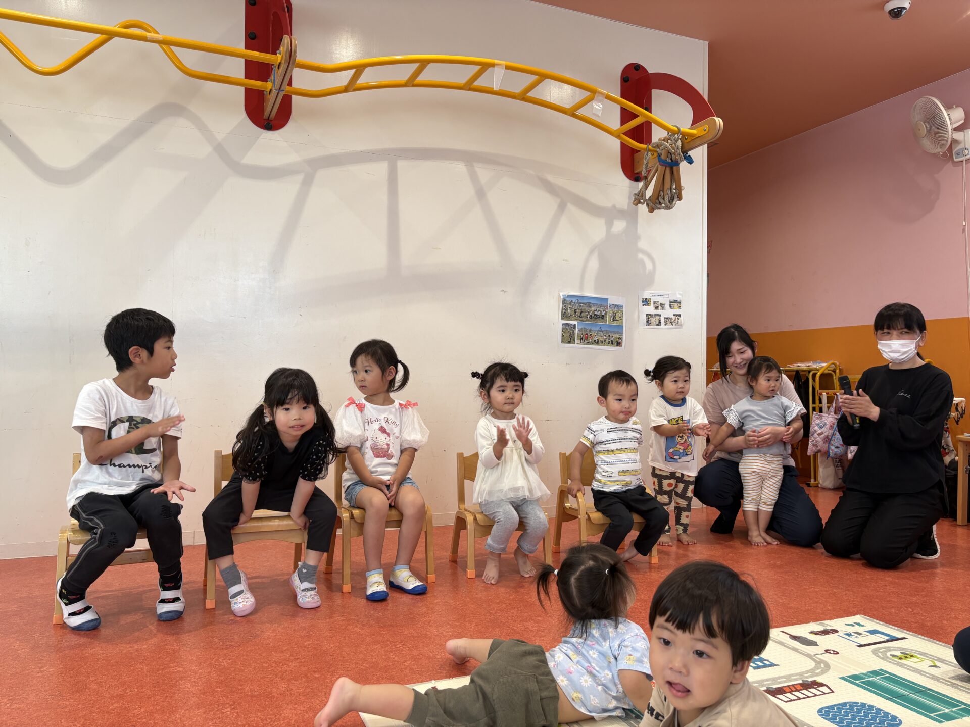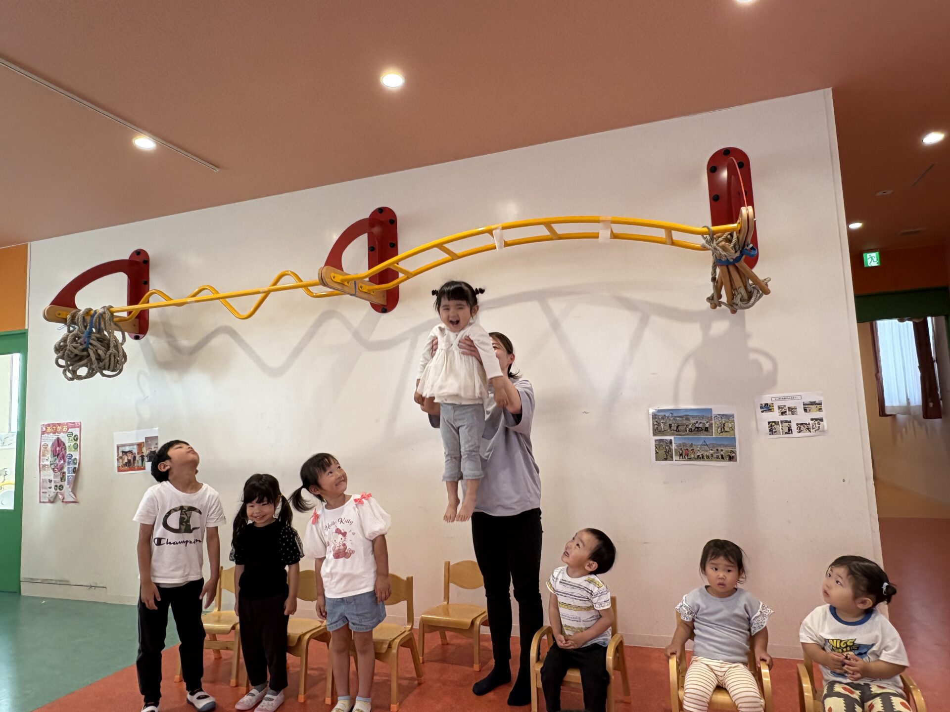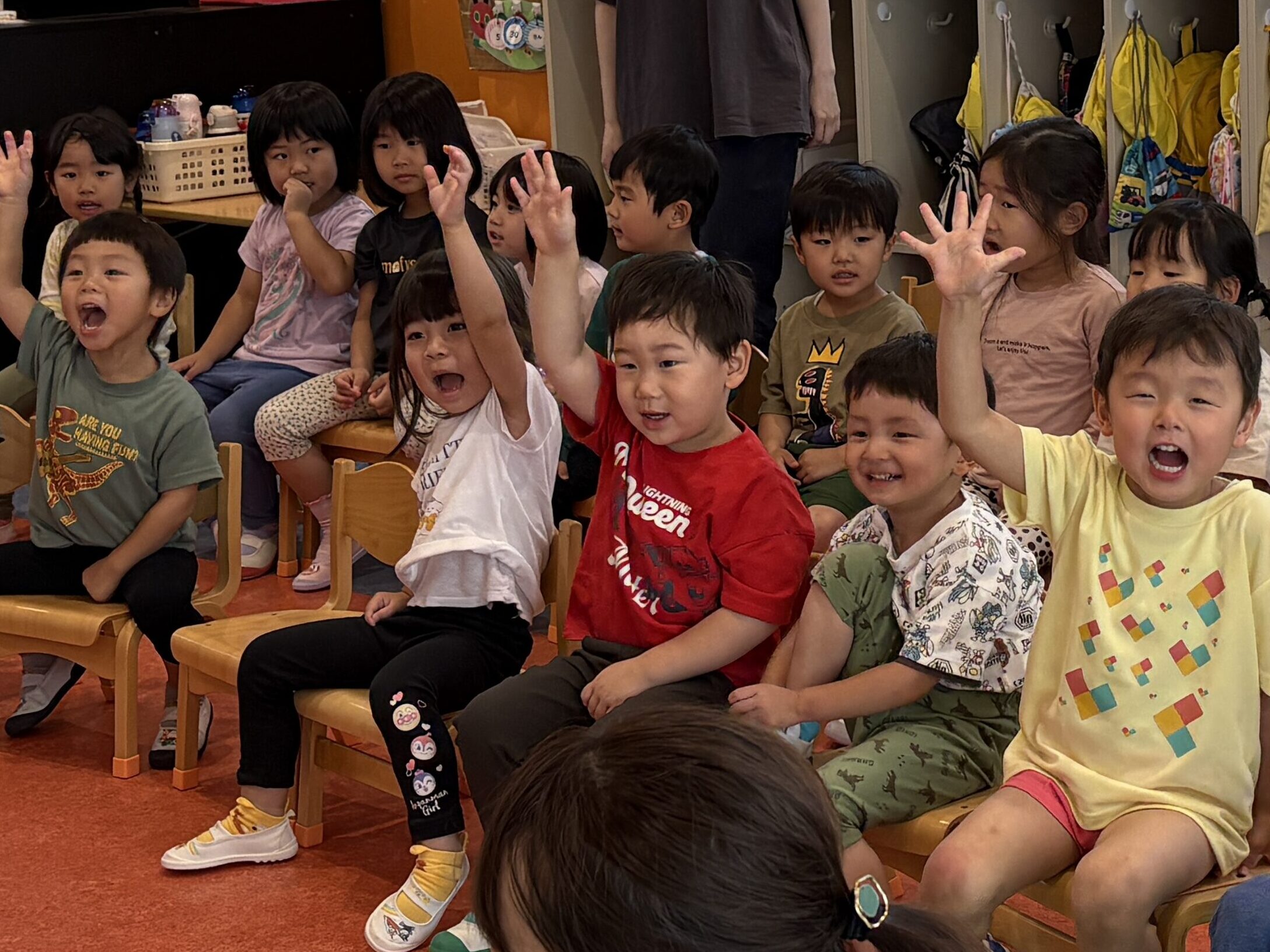 初めに保育者が「〇〇チームさーん!」と呼びかけると、元気いっぱい「はーい!!」とお返事してくれました。