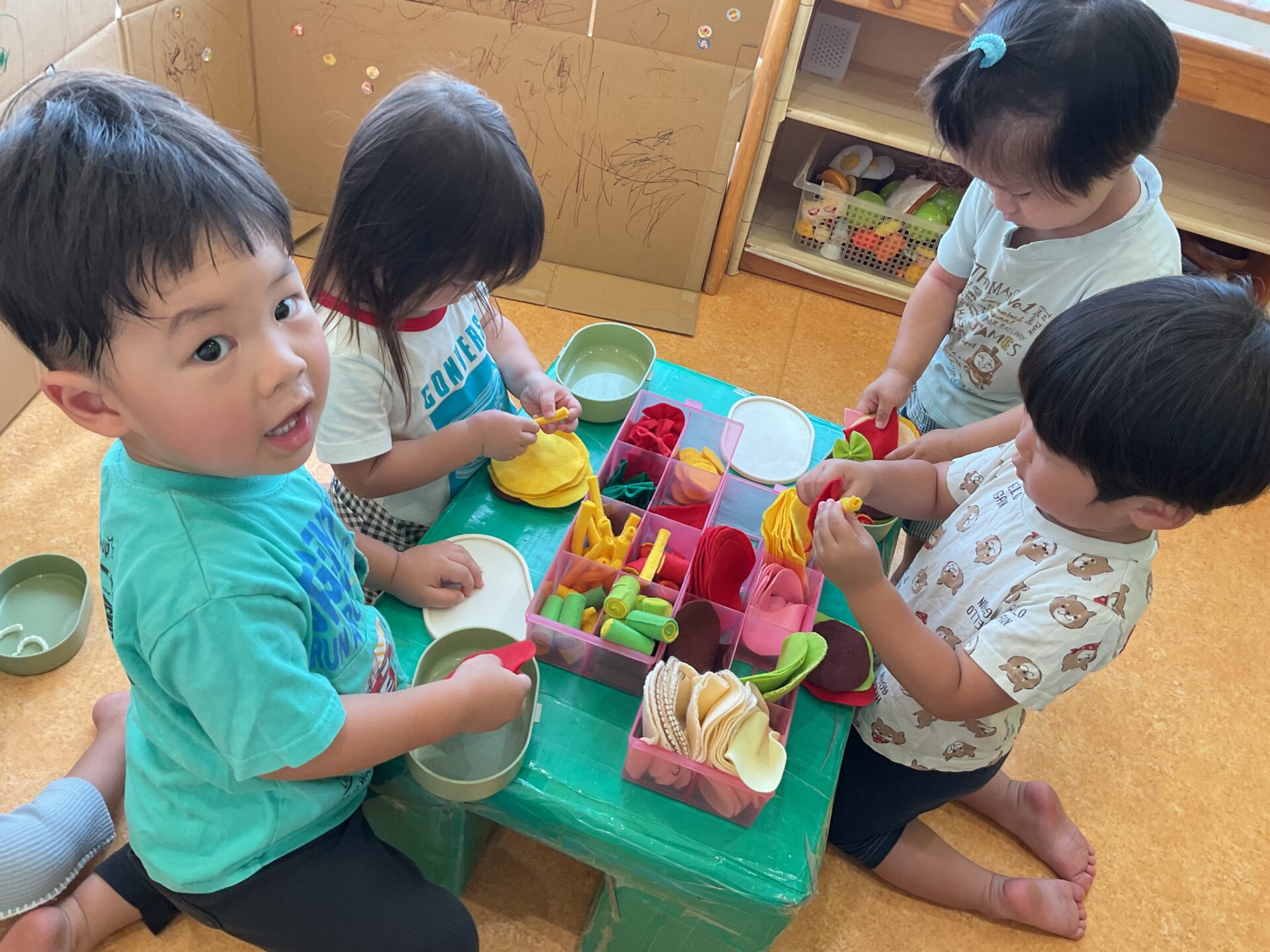 見立て遊びやごっこ遊びが上手になってきたあめチーム(2歳児)の子どもたち(^-^)