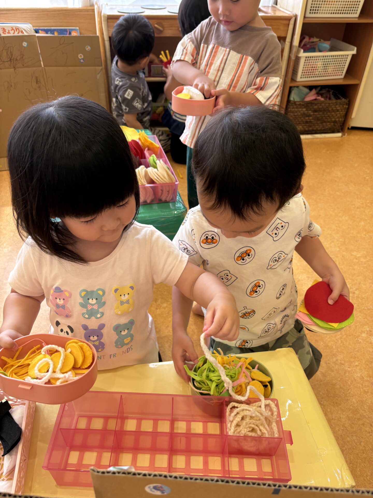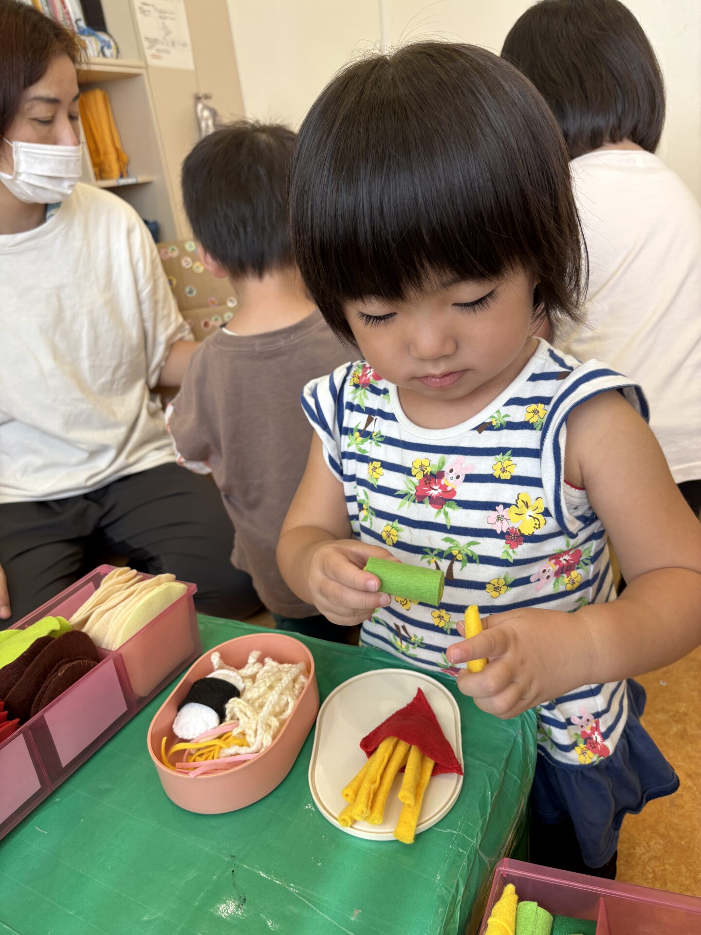 この日は、フェルトで作った丸や四角など様々な形を使って、お弁当作りをしました!!