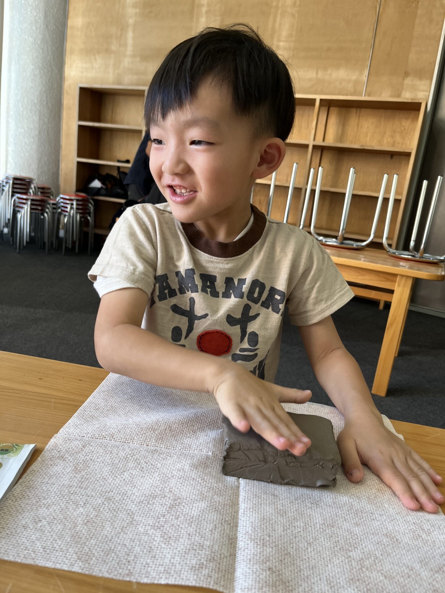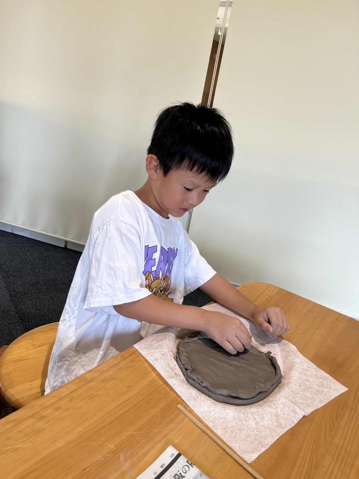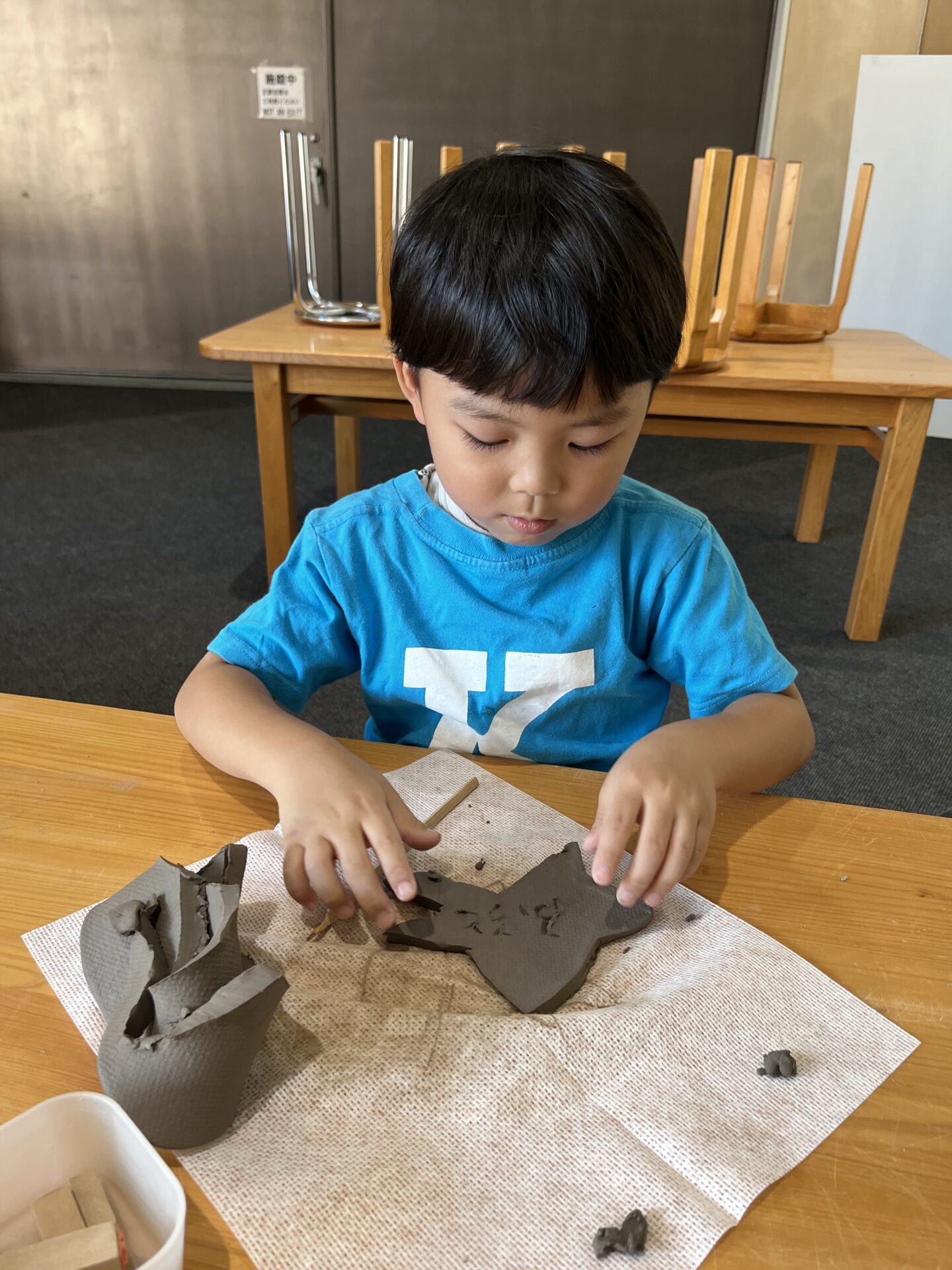 土粘土を平に広げ、好きな形に切って形を作ります。