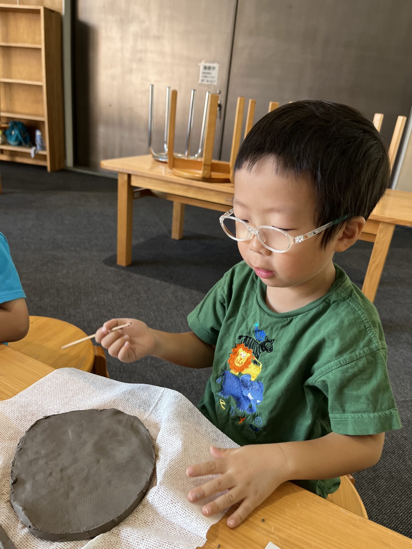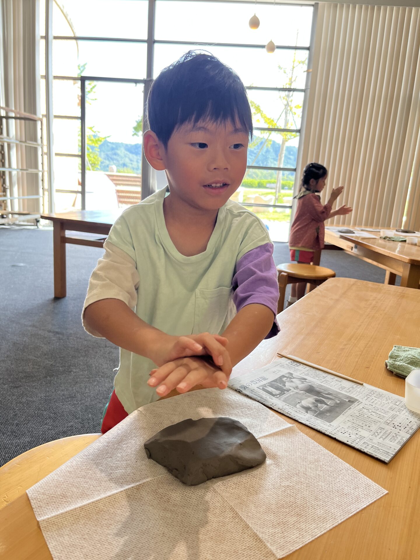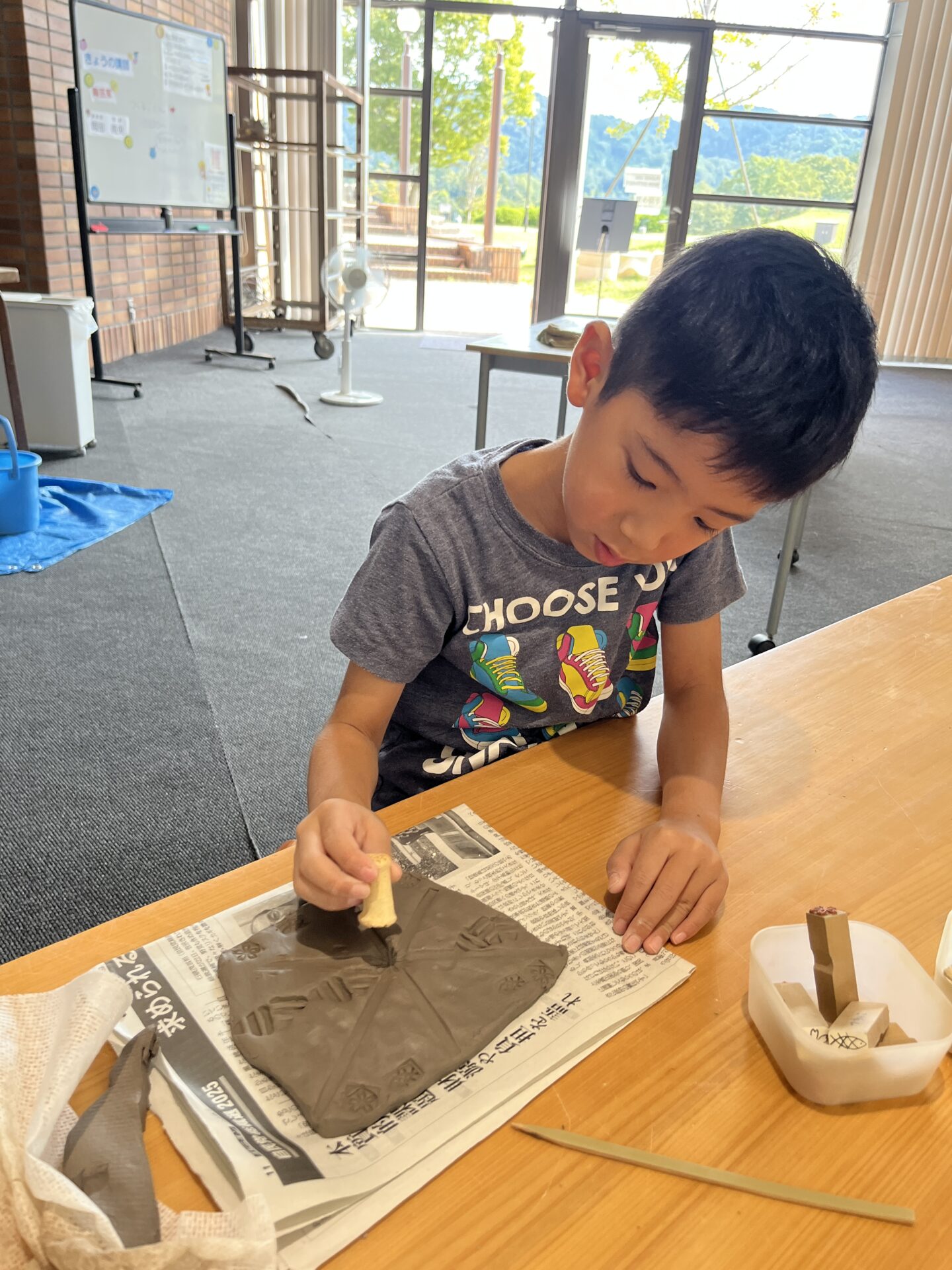 土粘土を平に広げ、好きな形に切って形を作ります。