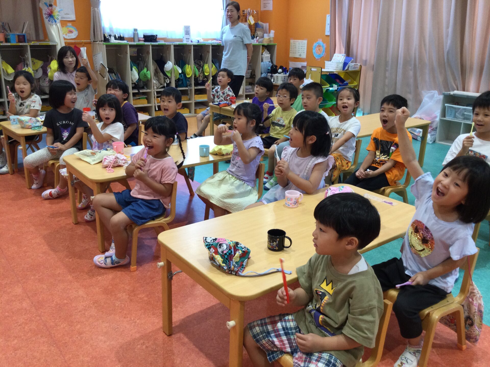 映像を見ながら、曲に合わせて、みんなで歯を磨きます🤗
