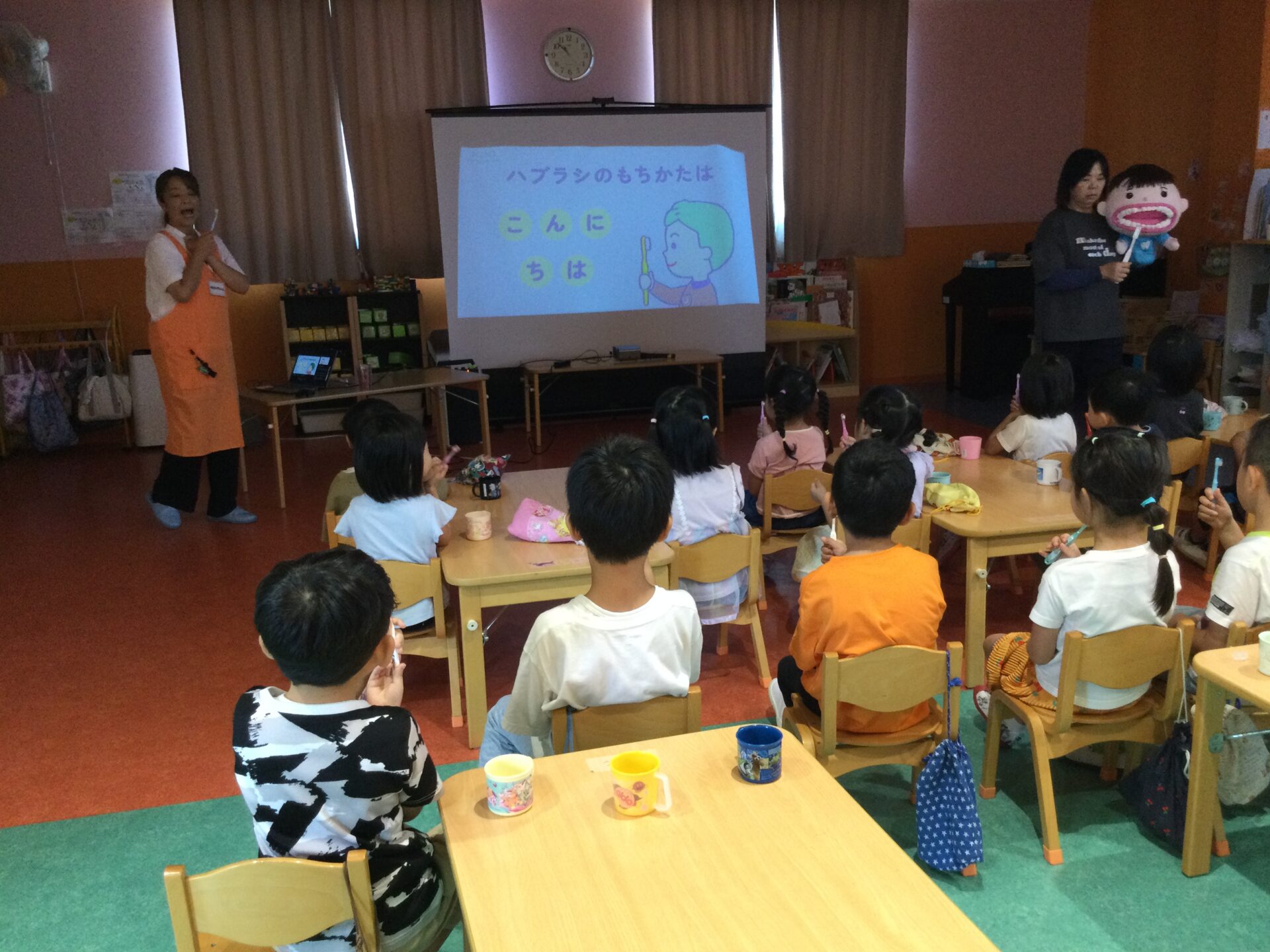10月17日(金)に(株)花王のゆかりちゃんが来てくださり、3歳児から5歳児の子ども達が