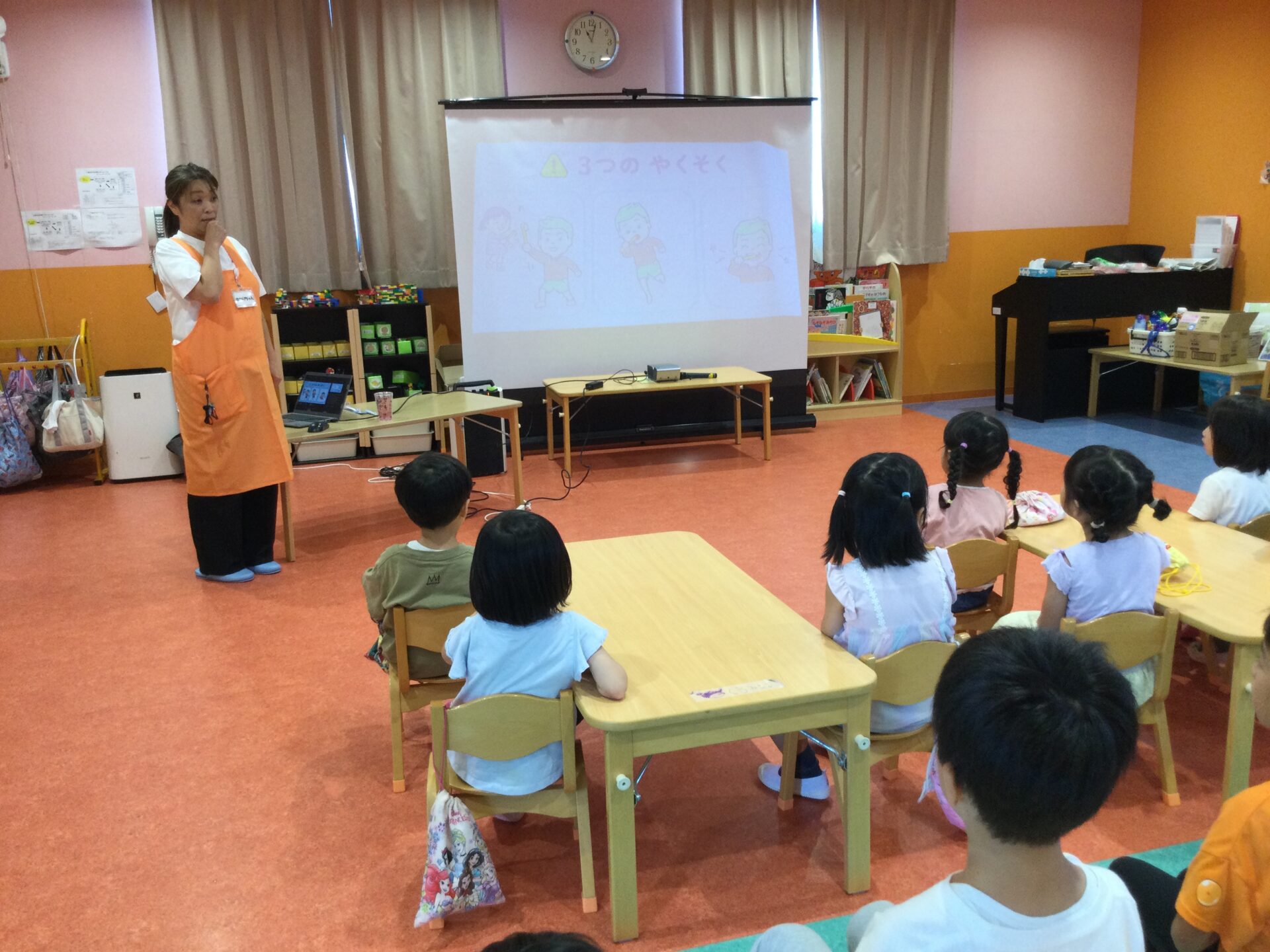 前回、手洗い指導で来てくださってから、子ども達はきちんと手洗いの約束を守って、しっかりと手洗いの習慣がつきました。ゆかりちゃんにも見てもらって、褒めていただきました。