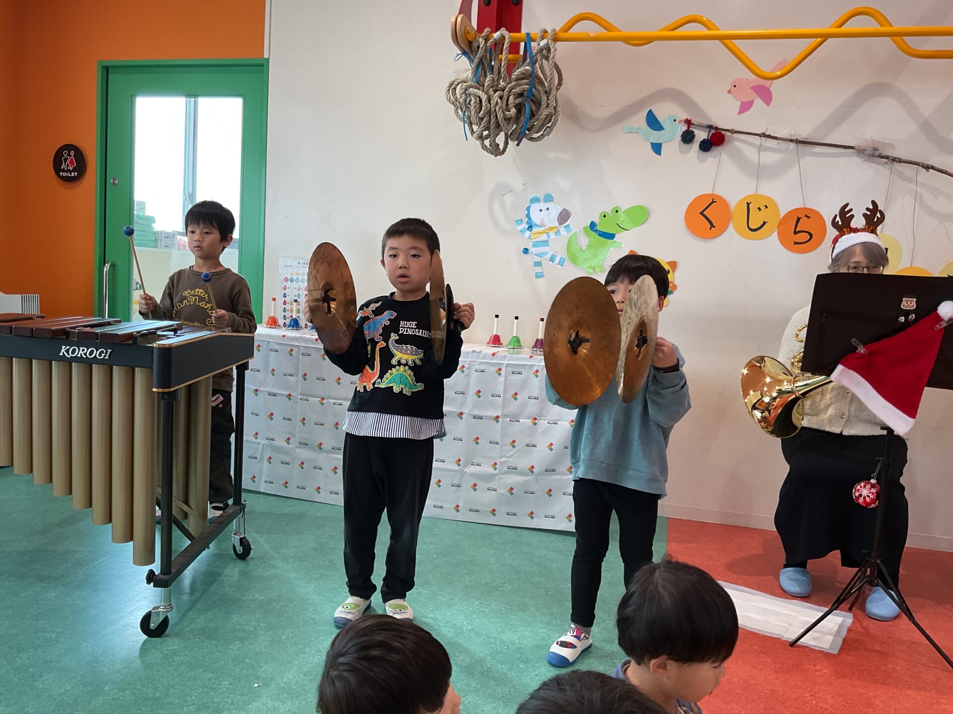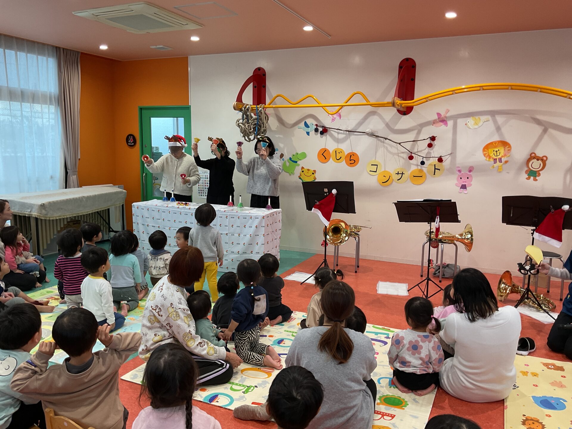 最後は『あわてんぼうのサンタクロース』や『にじ』の曲に合わせて、みんなで合奏しました😄