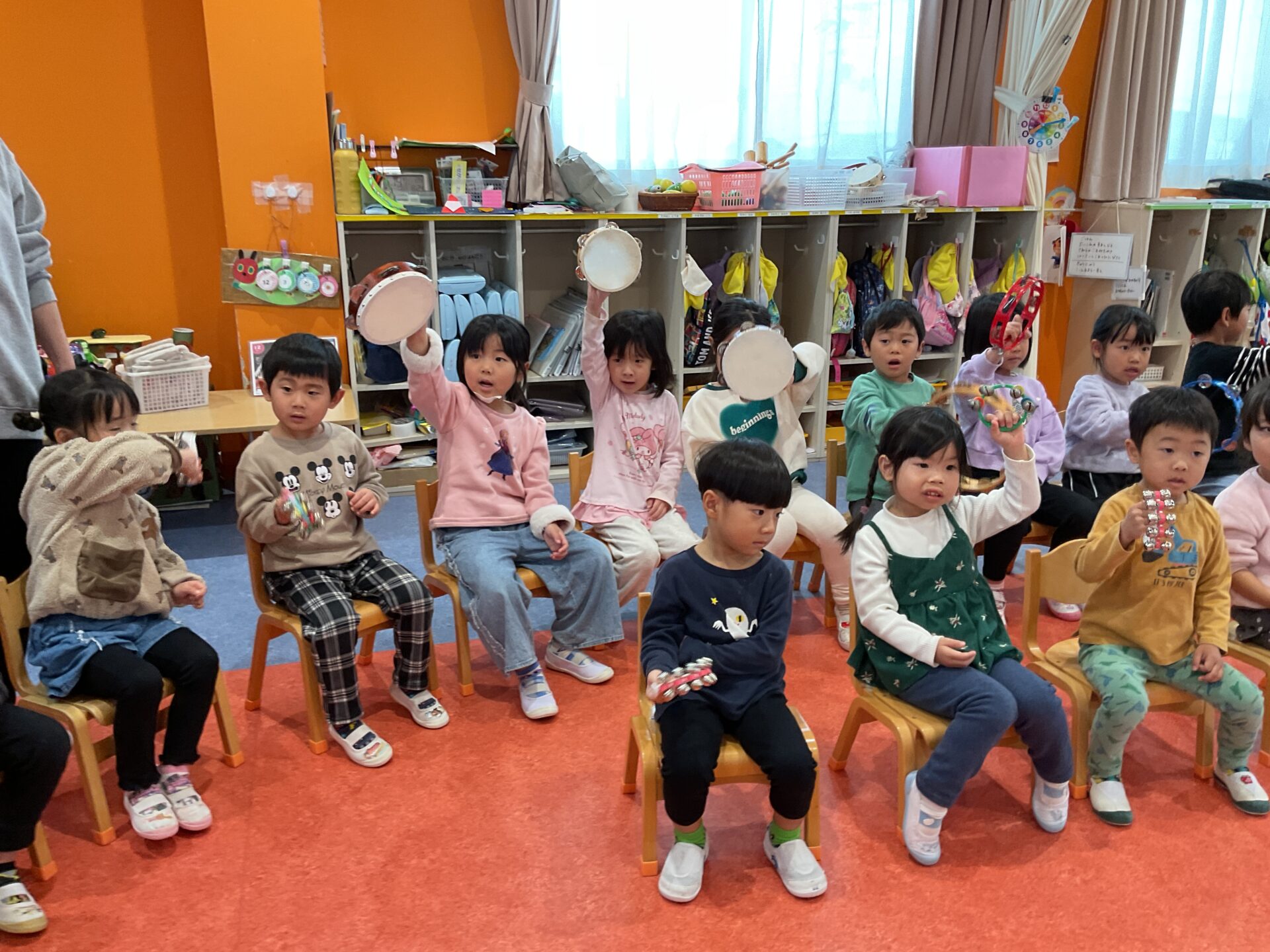 すずやタンバリン、マラカスも持って振ってみると、シャカシャカ♪と音が出て、みんなニコニコしながら振っていました😄