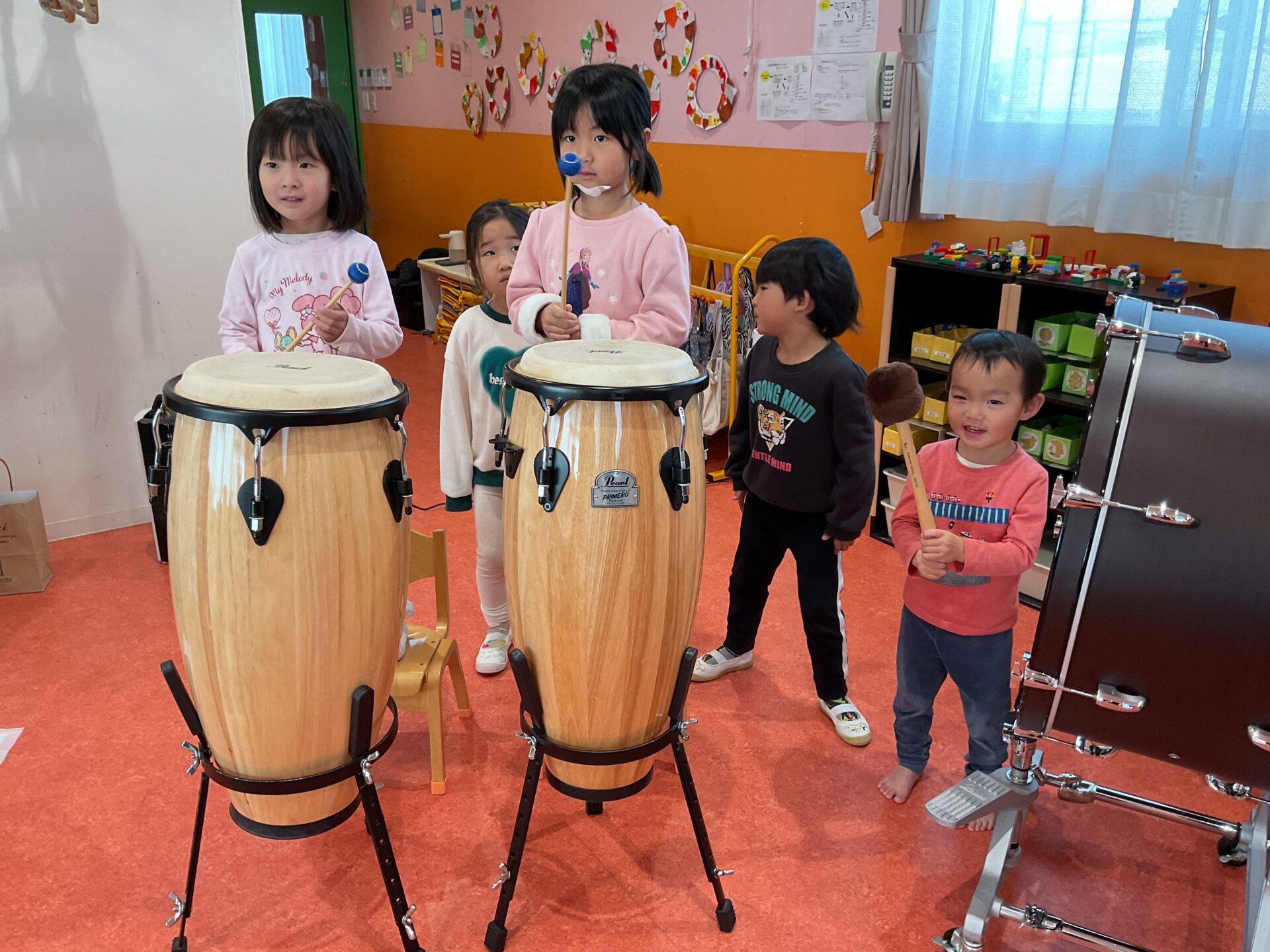 大太鼓やボンゴなど、大きな楽器にもチャレンジ!!