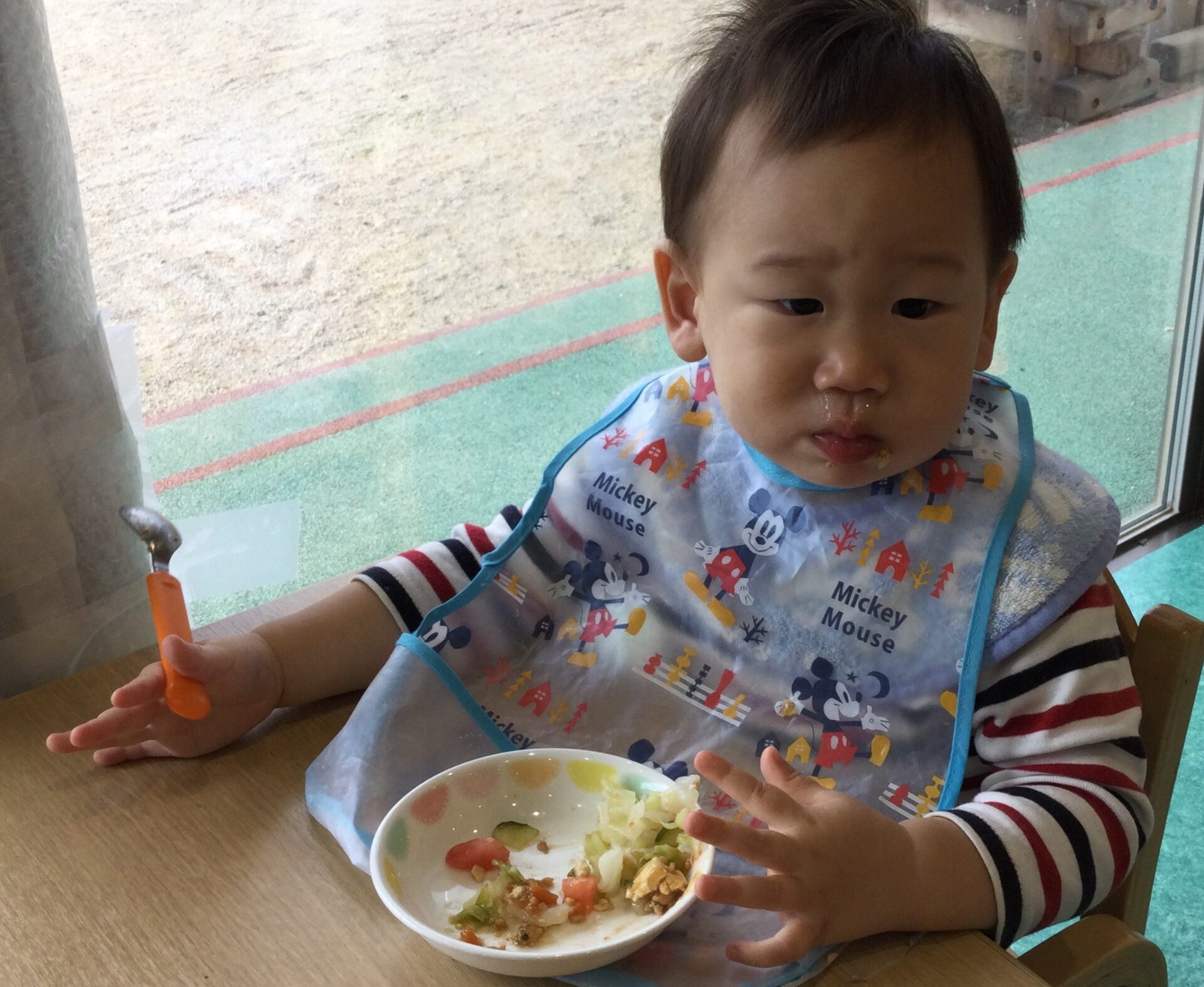 お野菜が進まない時も保育者と一緒に頑張って食べる姿はとても素敵ですね。