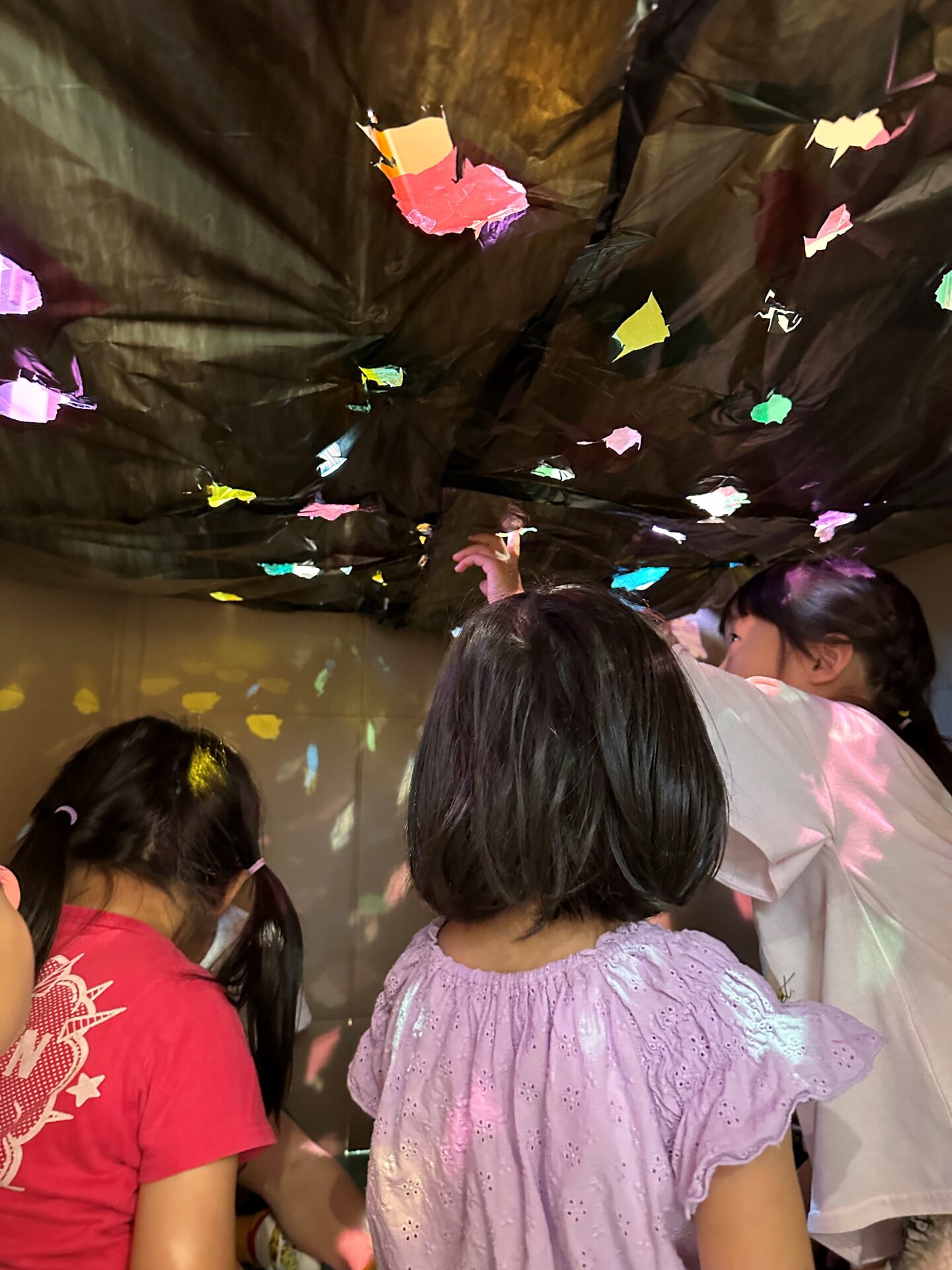 帰ってから「保育園でプラネタリウムを作りたい!」と話していたので、次の日にくじらチームのみんなでプラネタリウムを作りました!