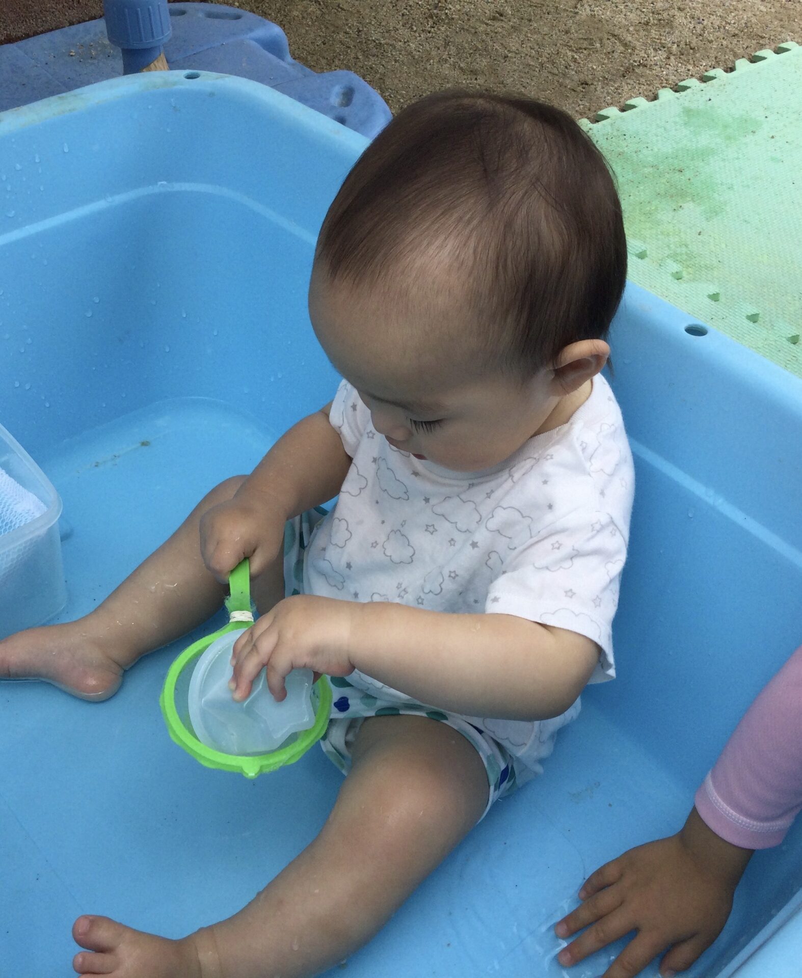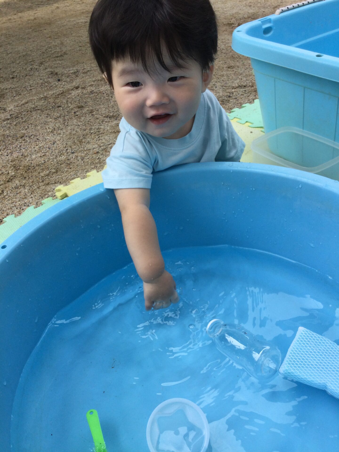 水の中で手を動かしてにぎにぎにぎ・・・水を叩いてみてバシャバシャ♪