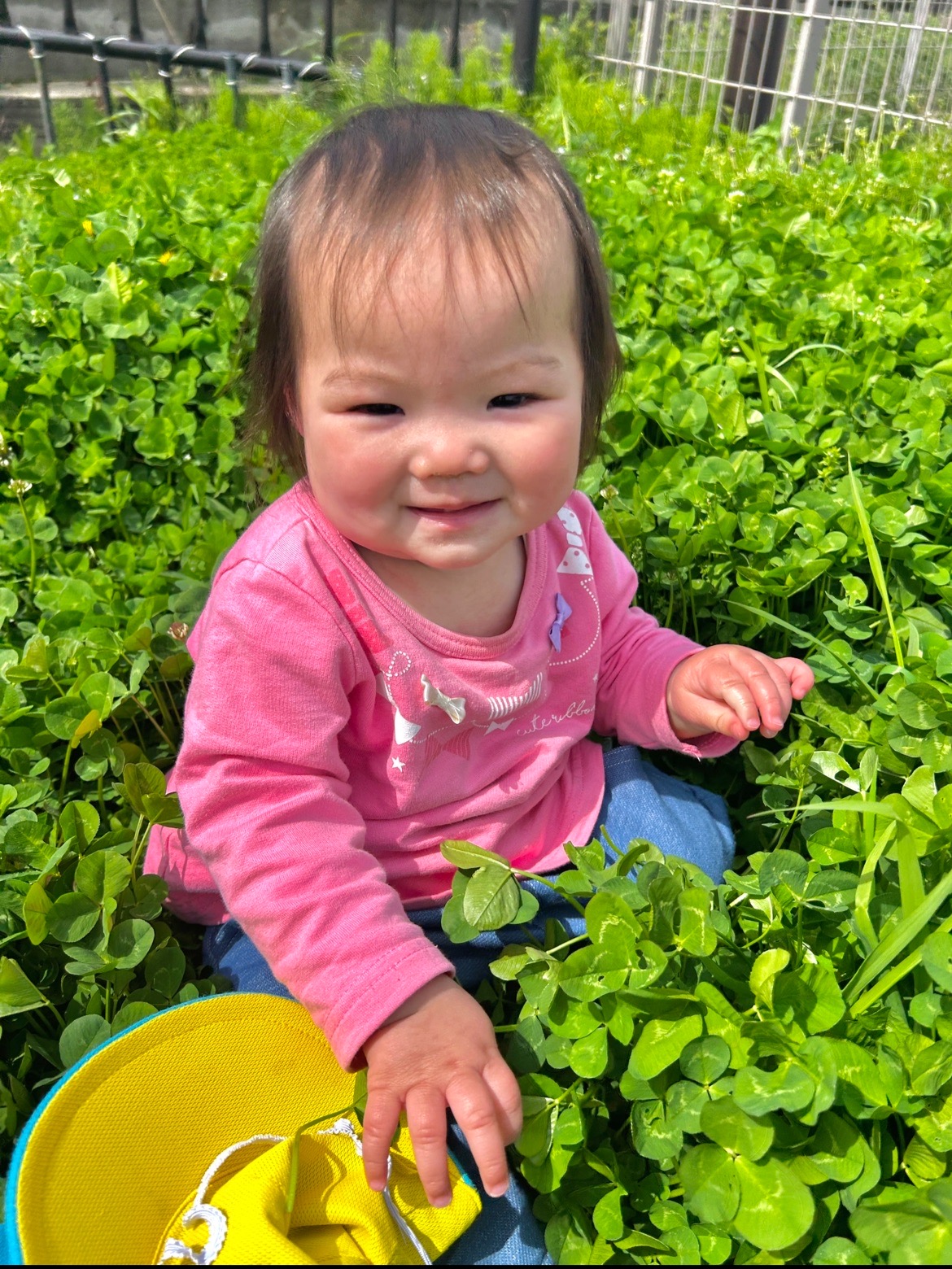 タンポポやシロツメグサ、チューリップなどの春の草花見つけては、言葉や指差しで教えてくれます。